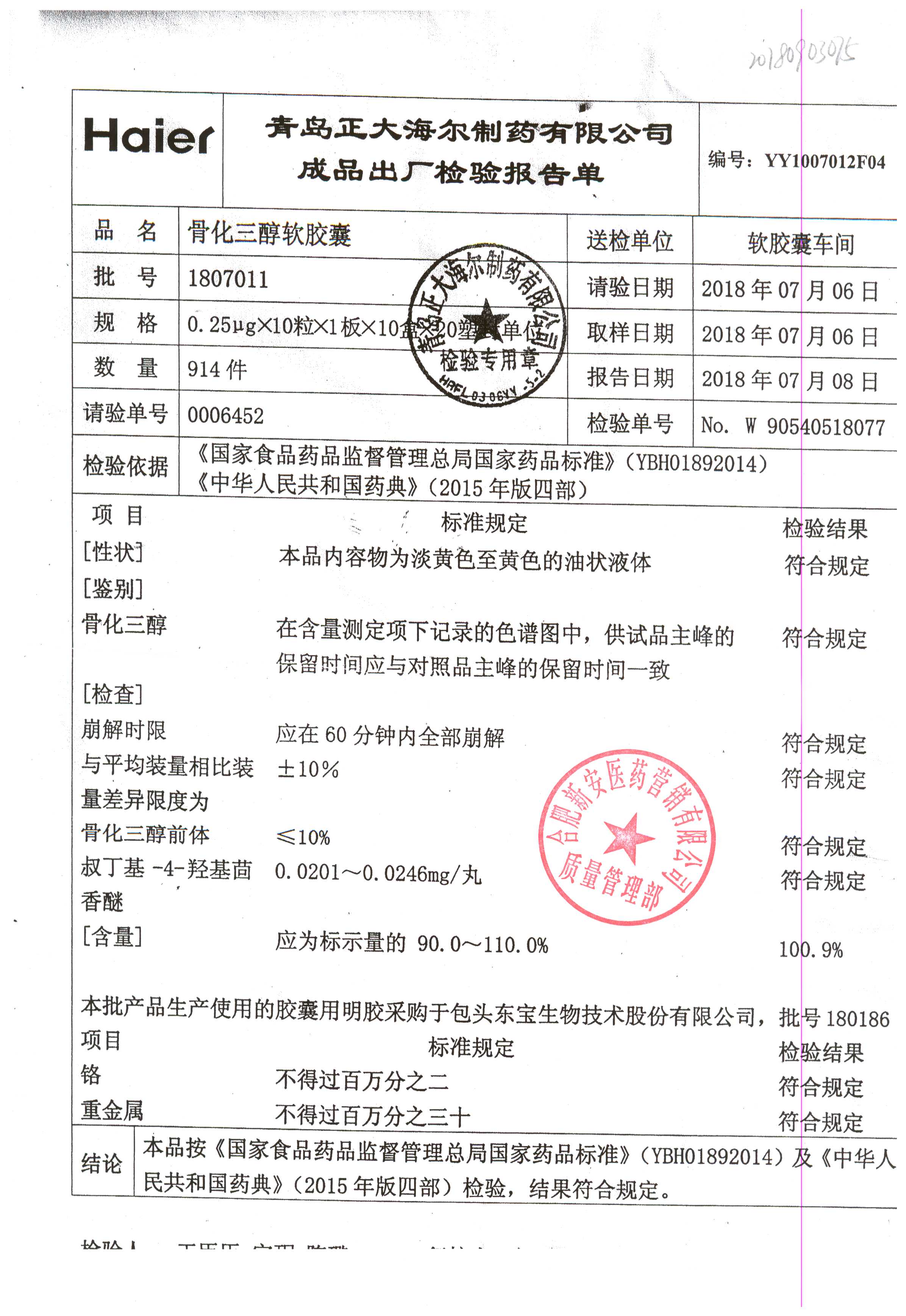 骨化三醇軟膠囊 | 0.25ug*10粒 | 1807011 | 查看詳情 |