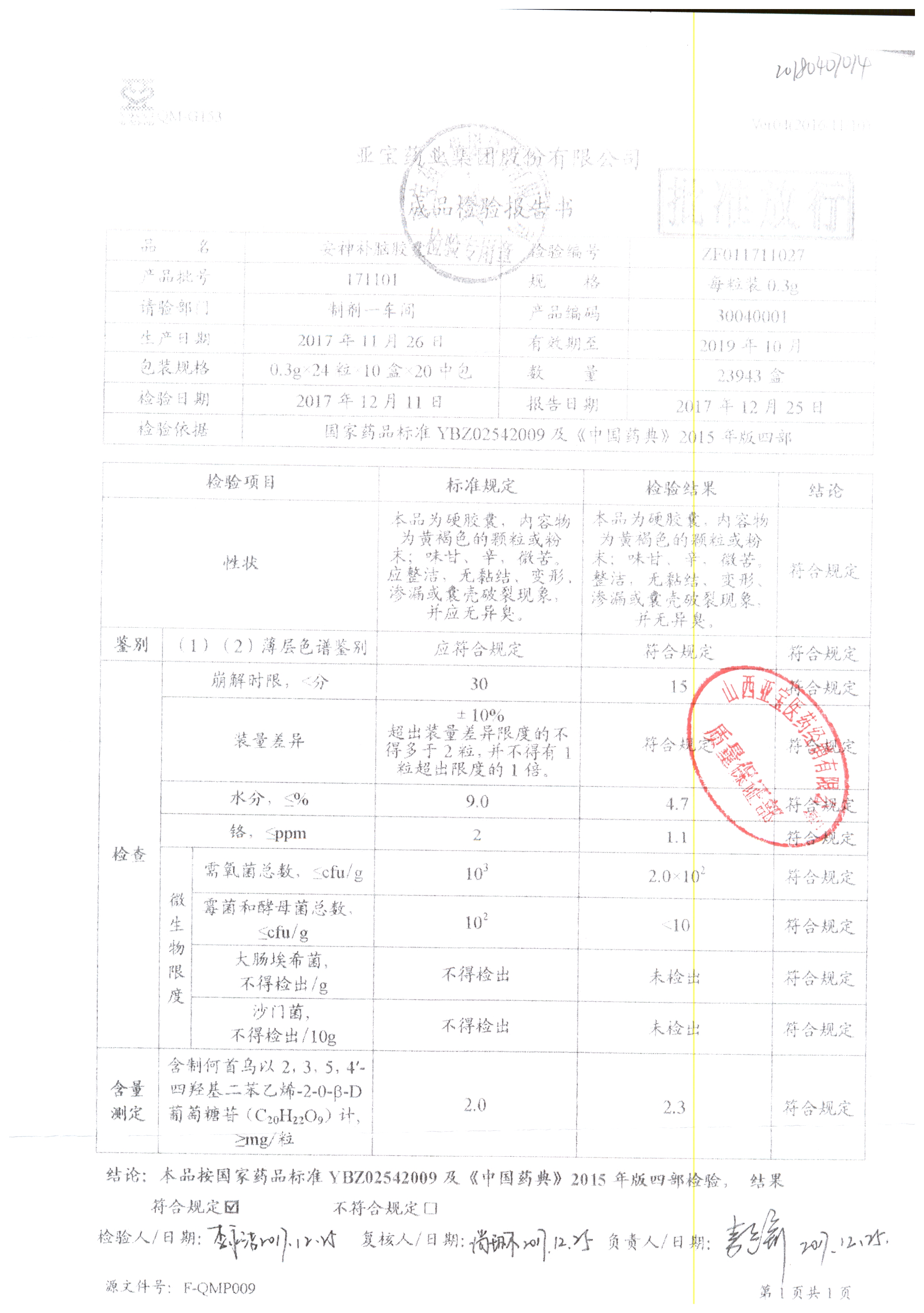 名稱 | 規(guī)格 | 批號 | 藥檢報告 |
