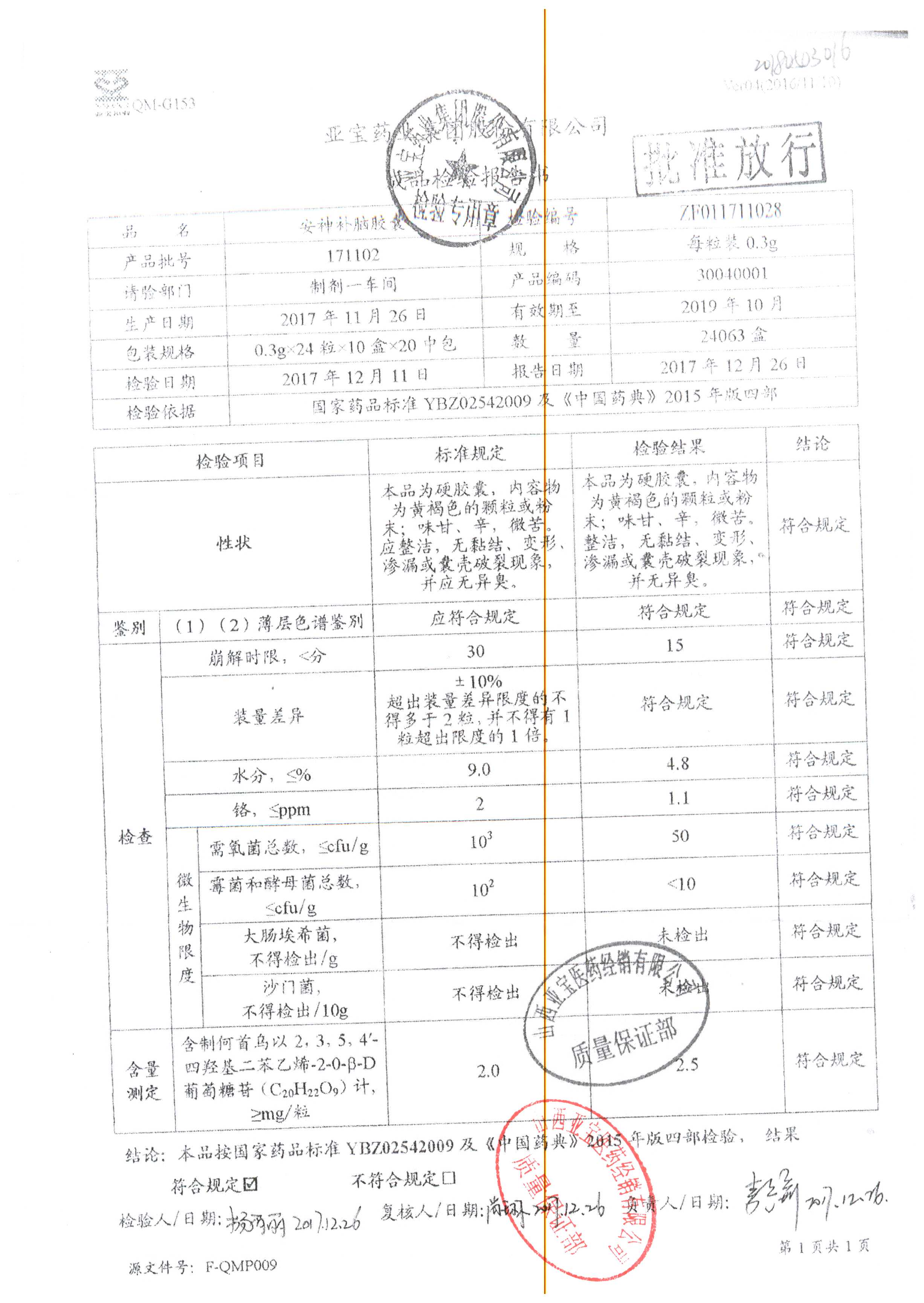 安神補腦膠囊 | 0.3g*24s | 181201(1/2) | 查看詳情 |
