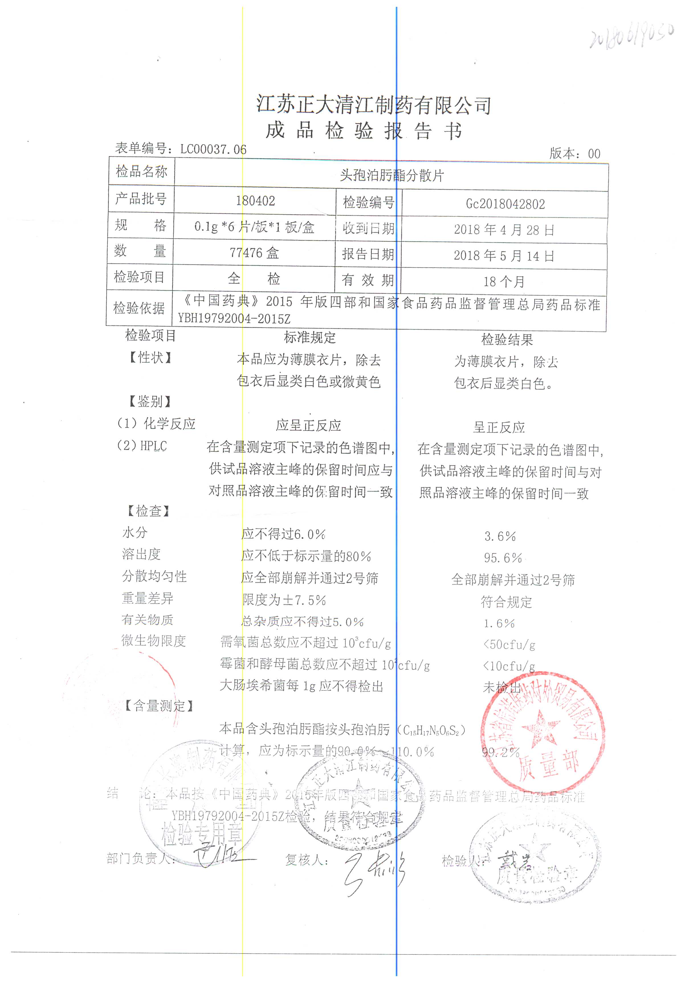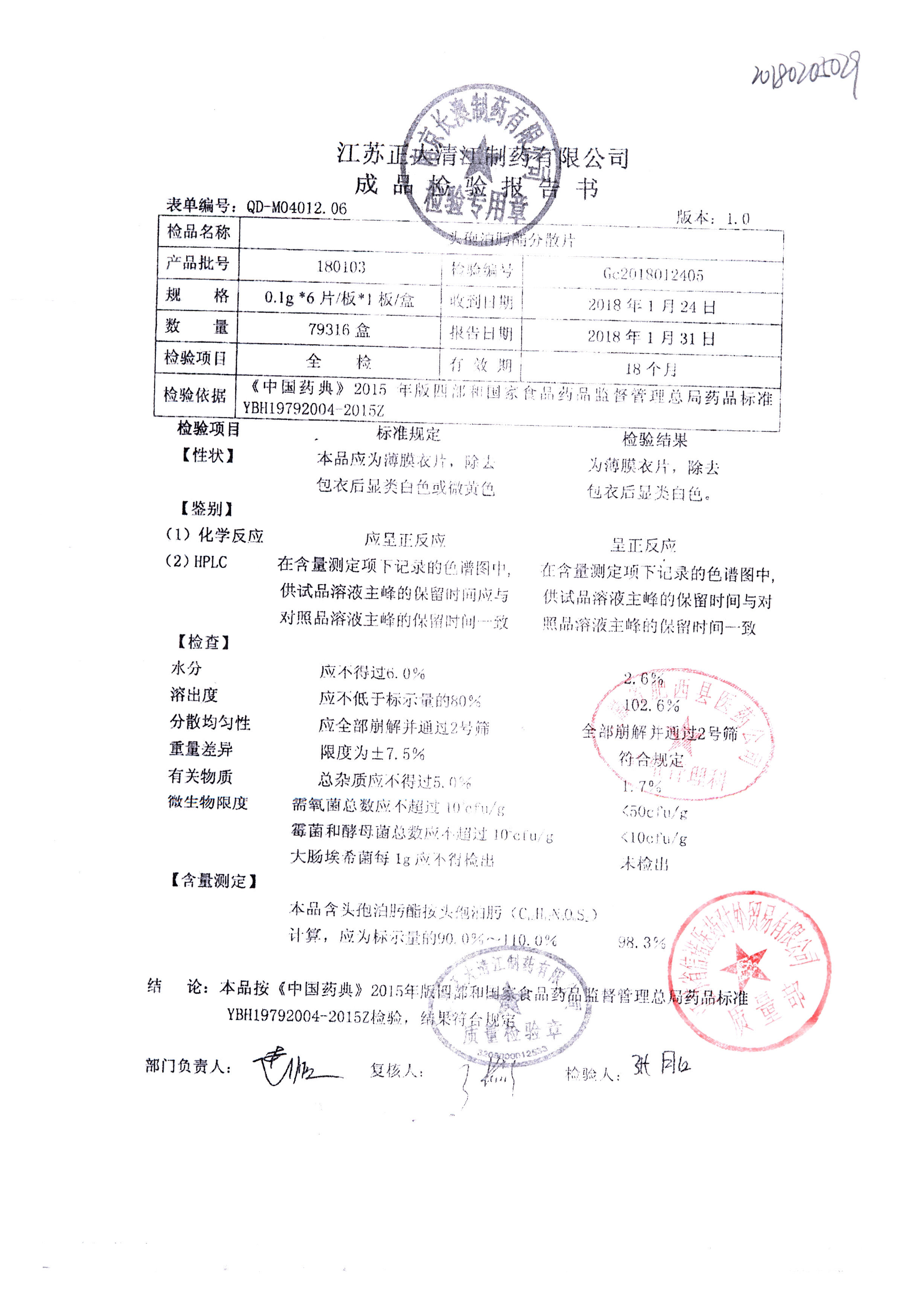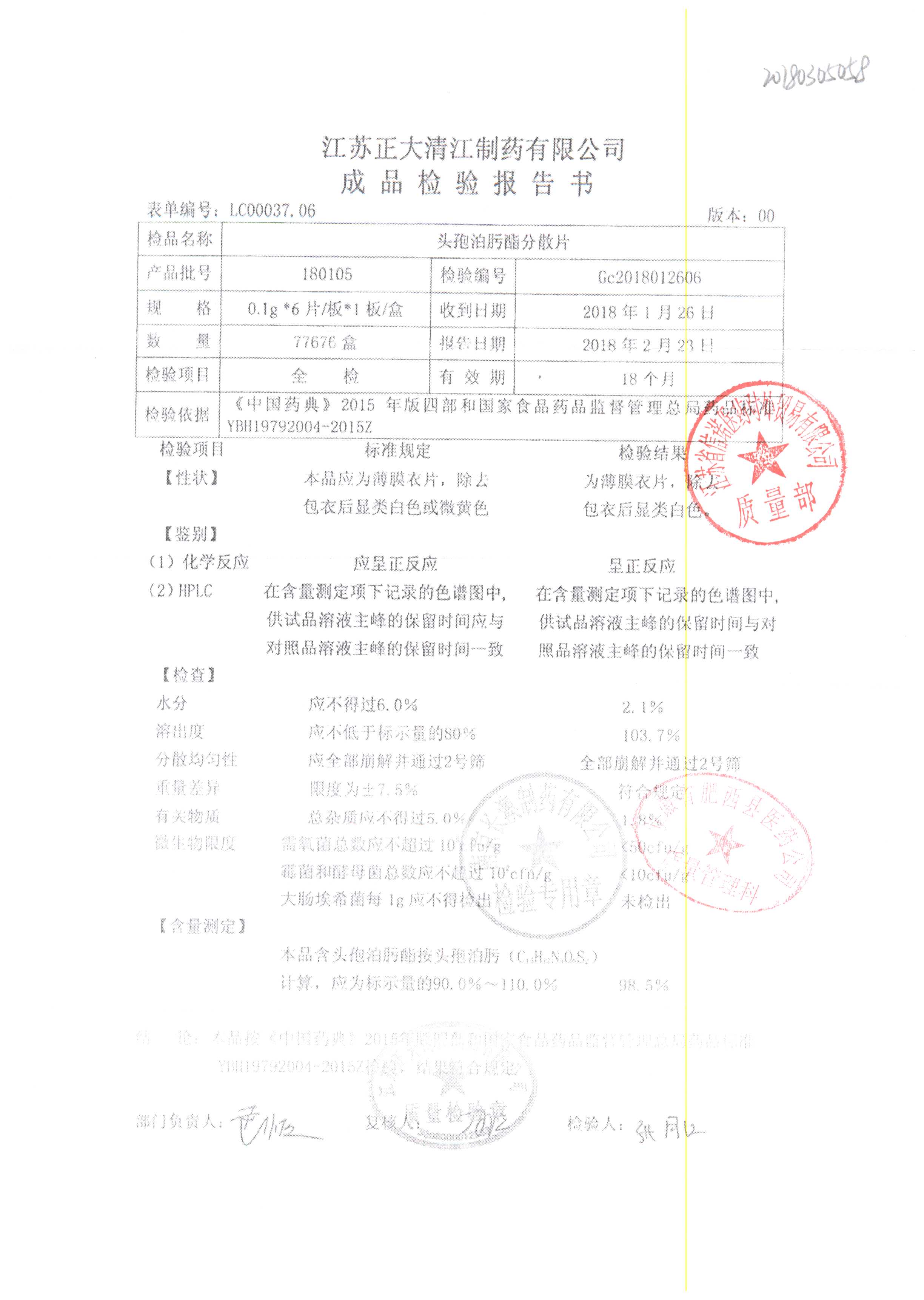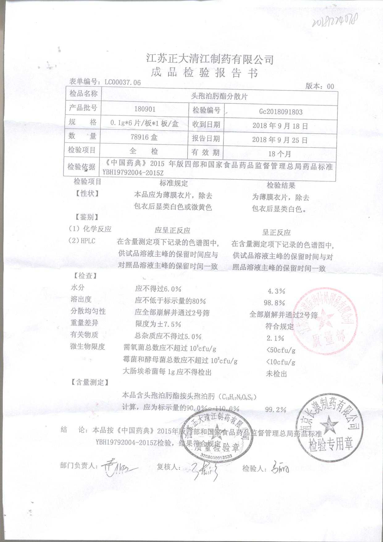 頭孢泊肟酯分散片 | 0.1g*6s | 180304 | 查看詳情 |