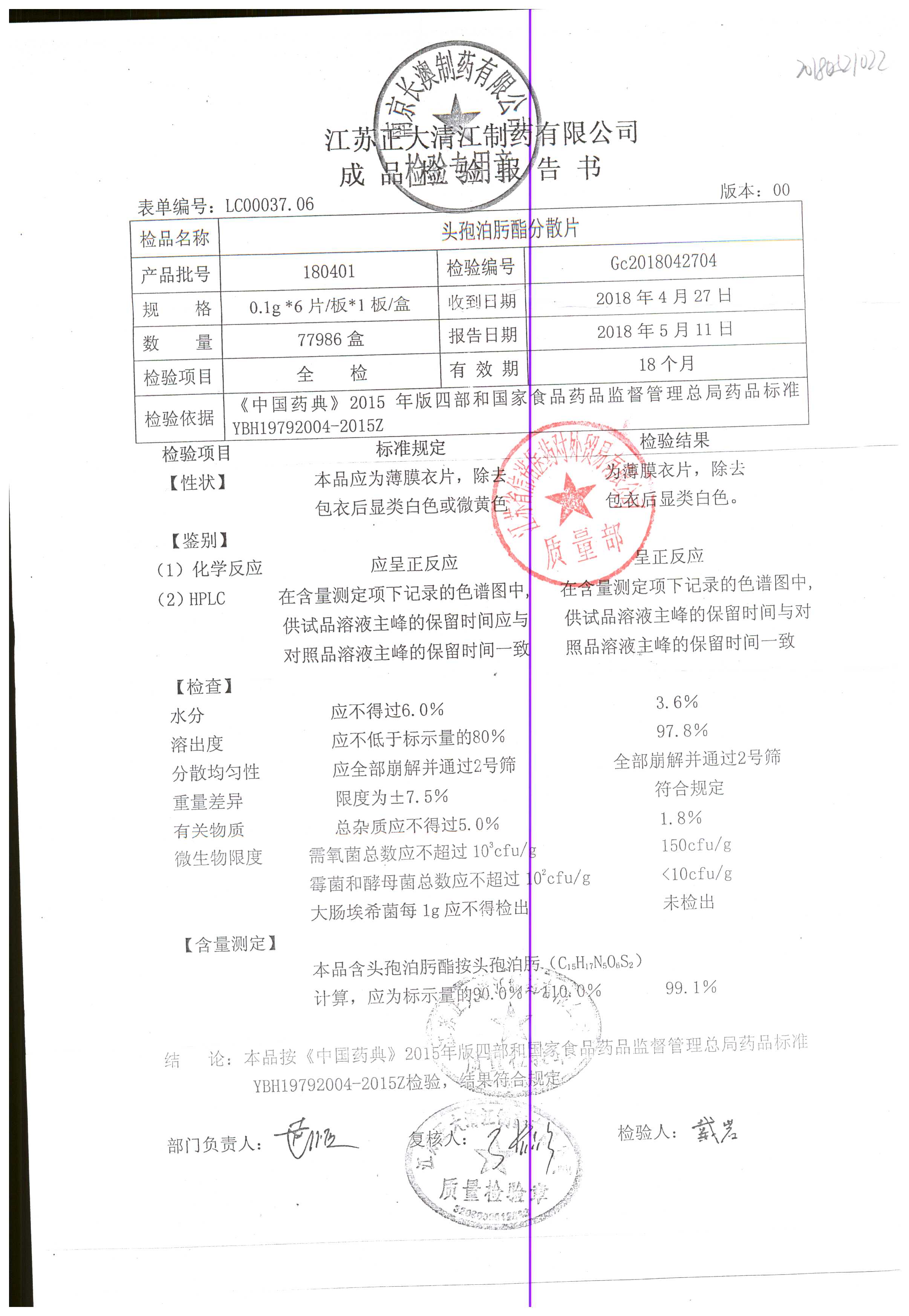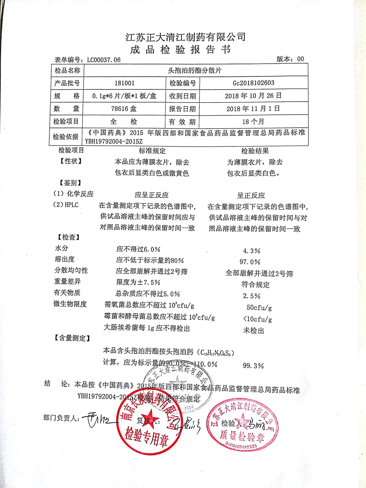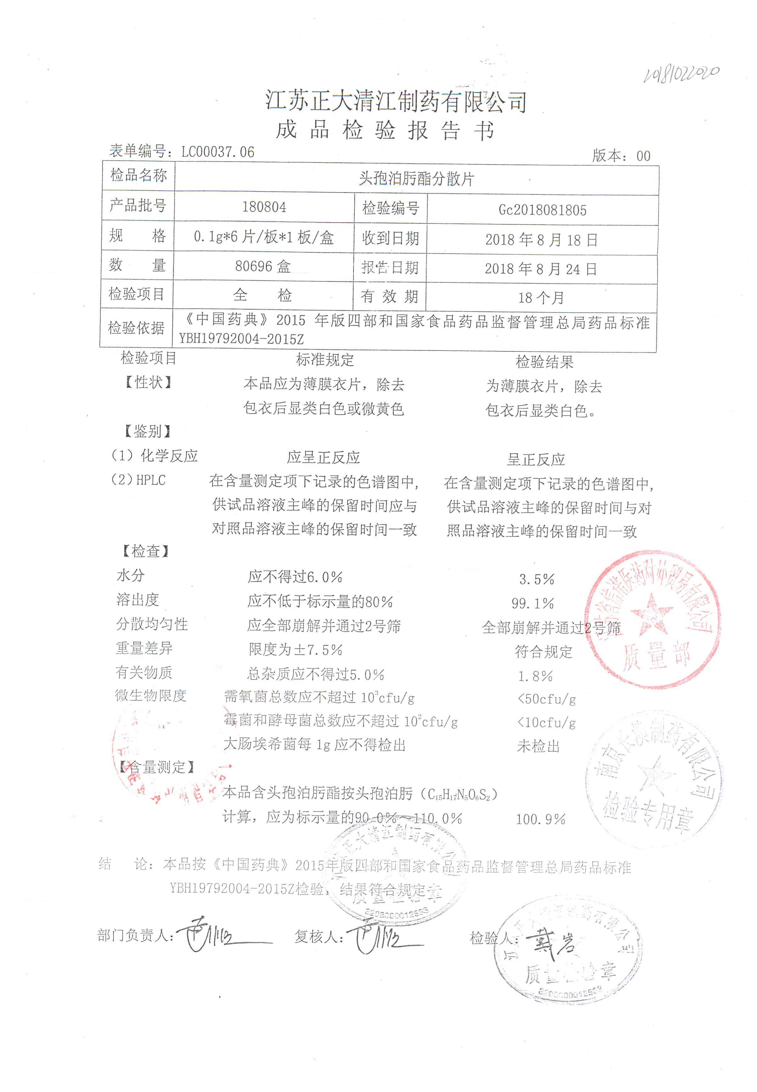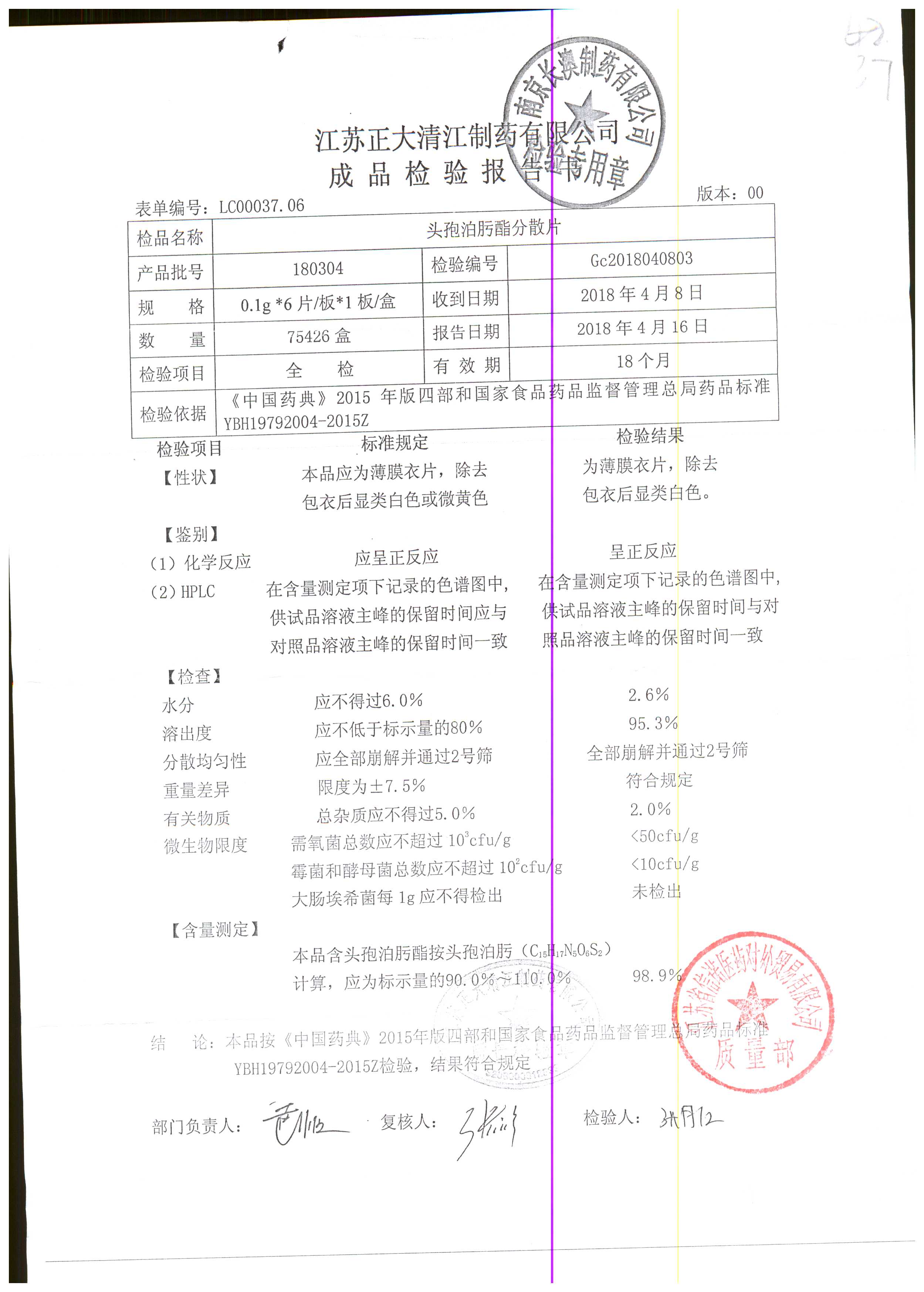 頭孢泊肟酯分散片 | 0.1g*6s | 180304 | 查看詳情 |