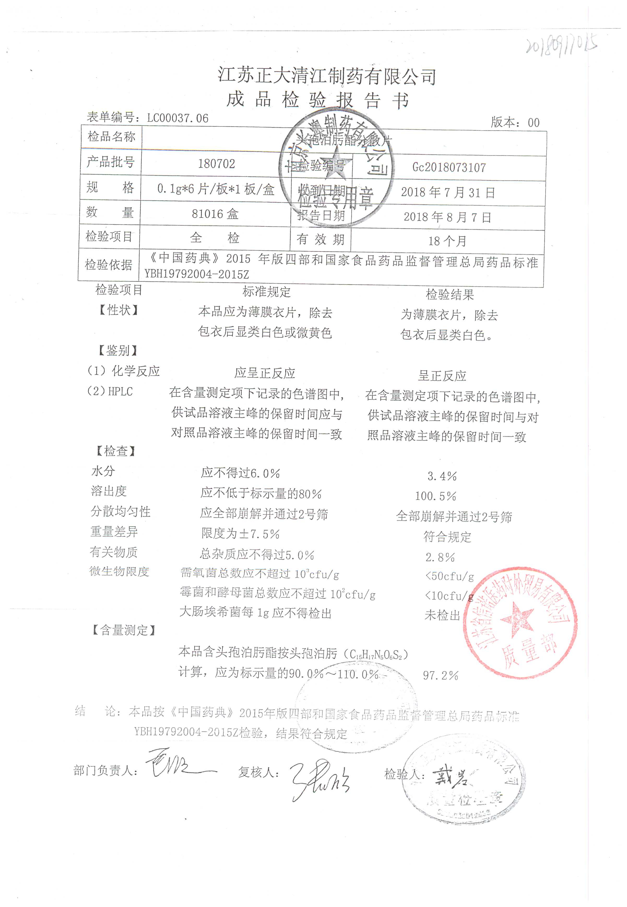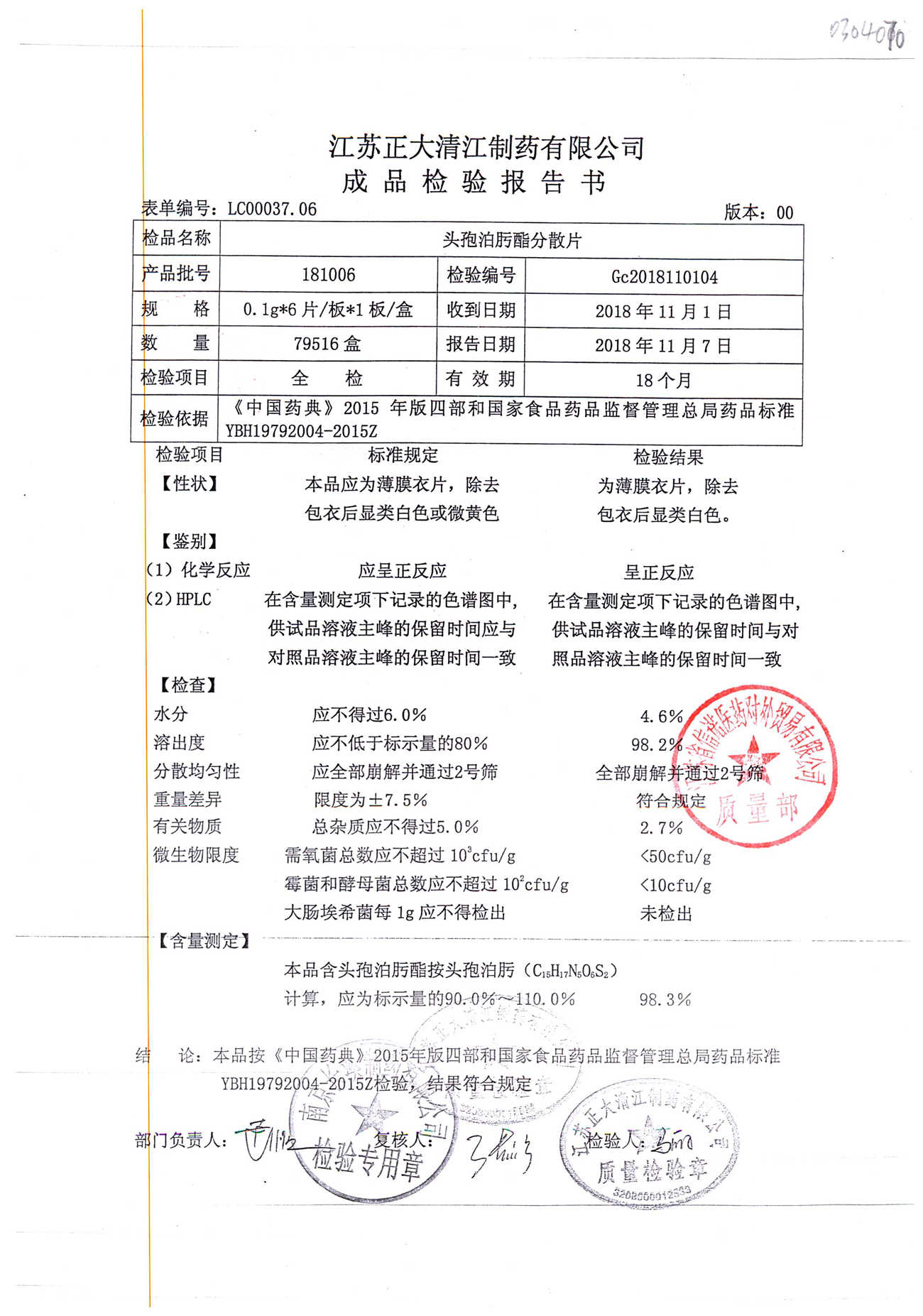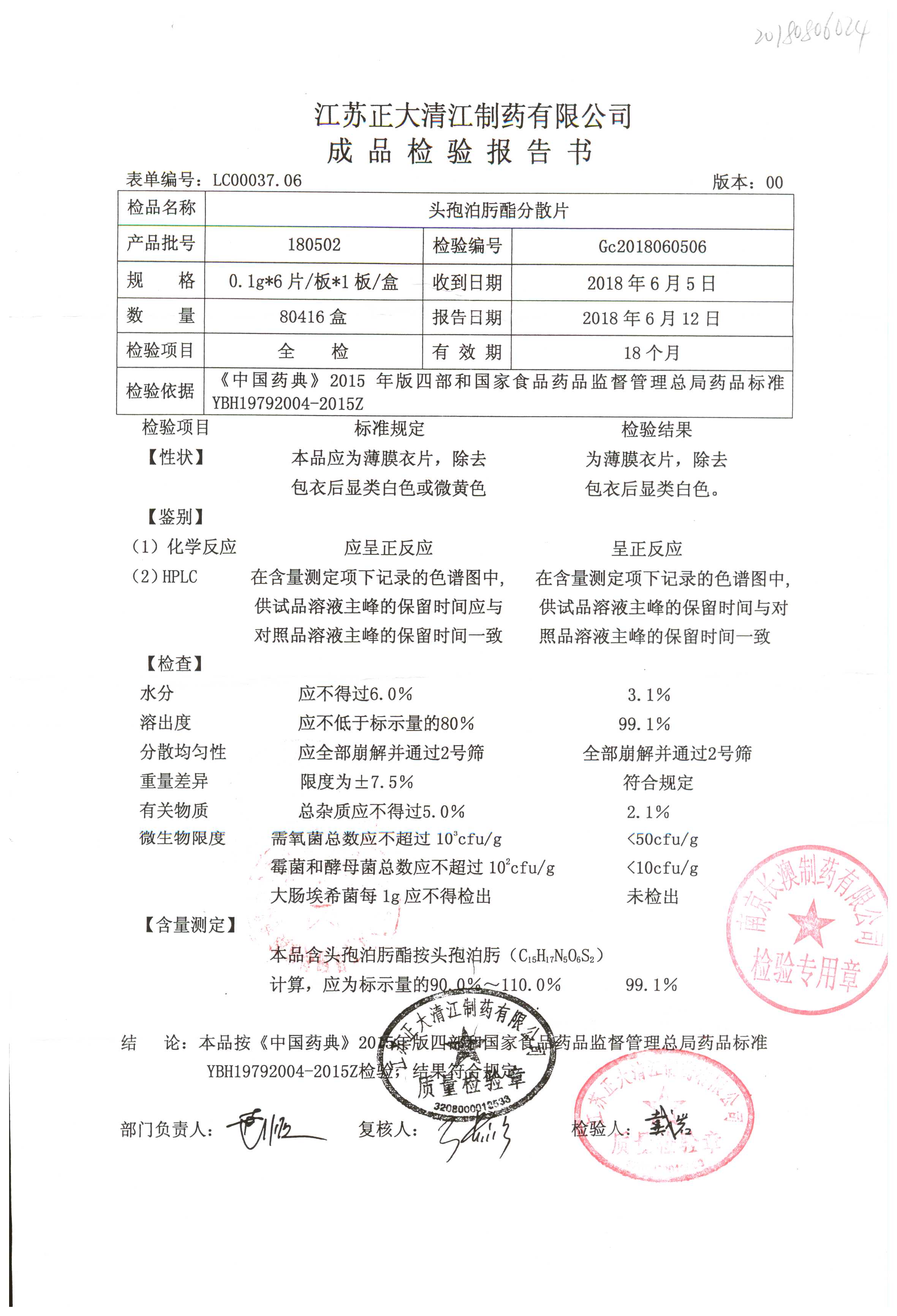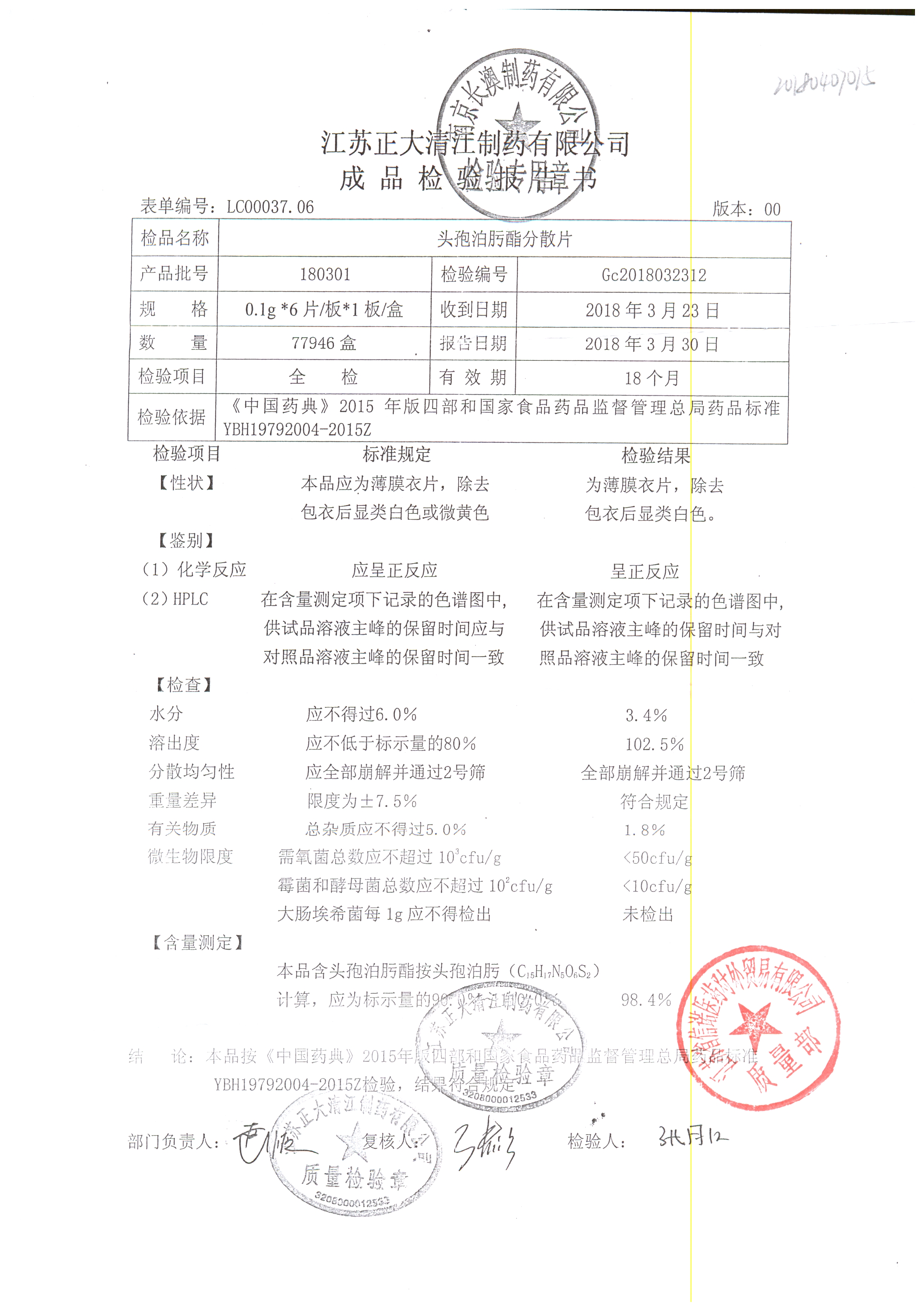 頭孢泊肟酯分散片 | 0.1g*6s | 180304 | 查看詳情 |