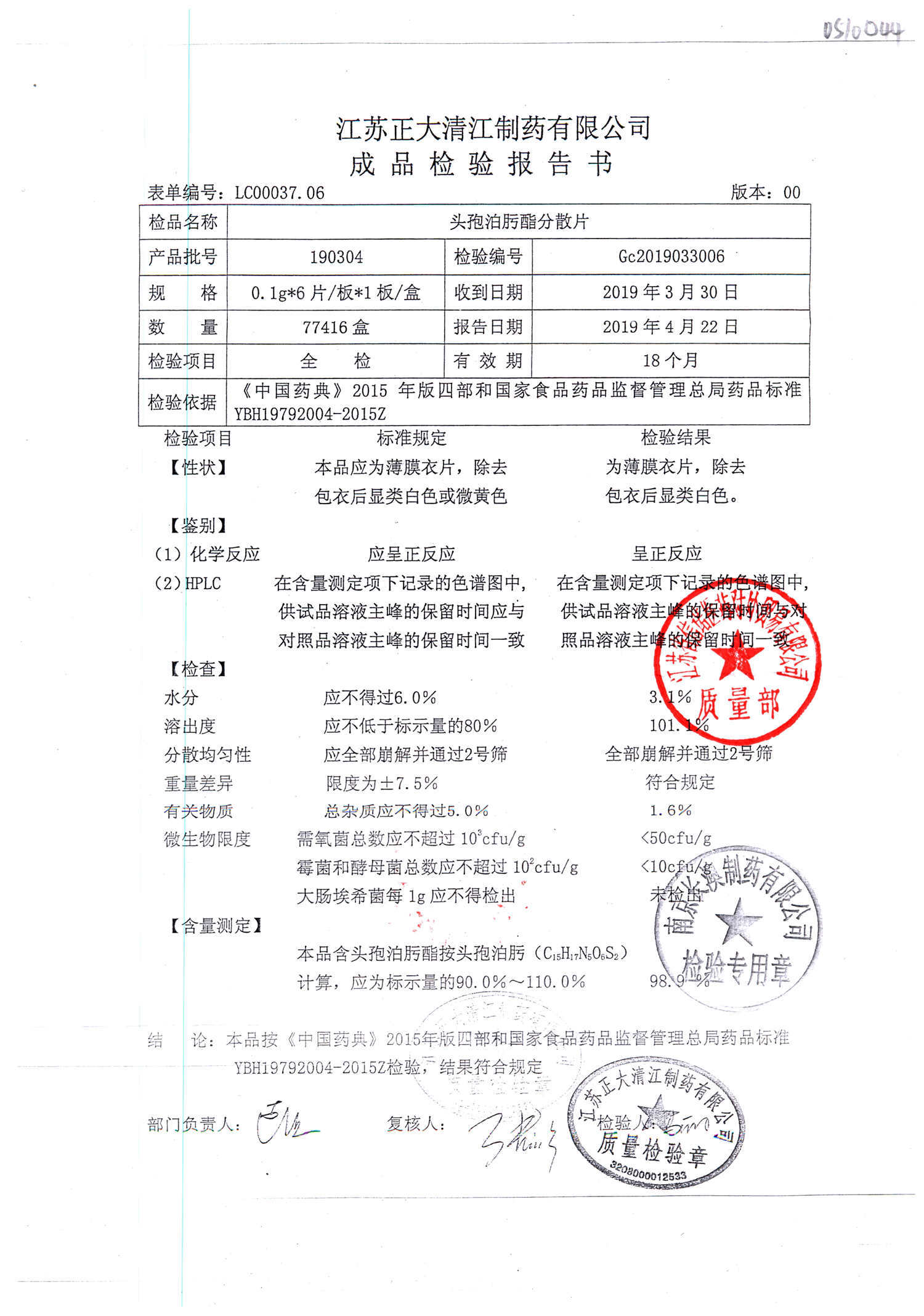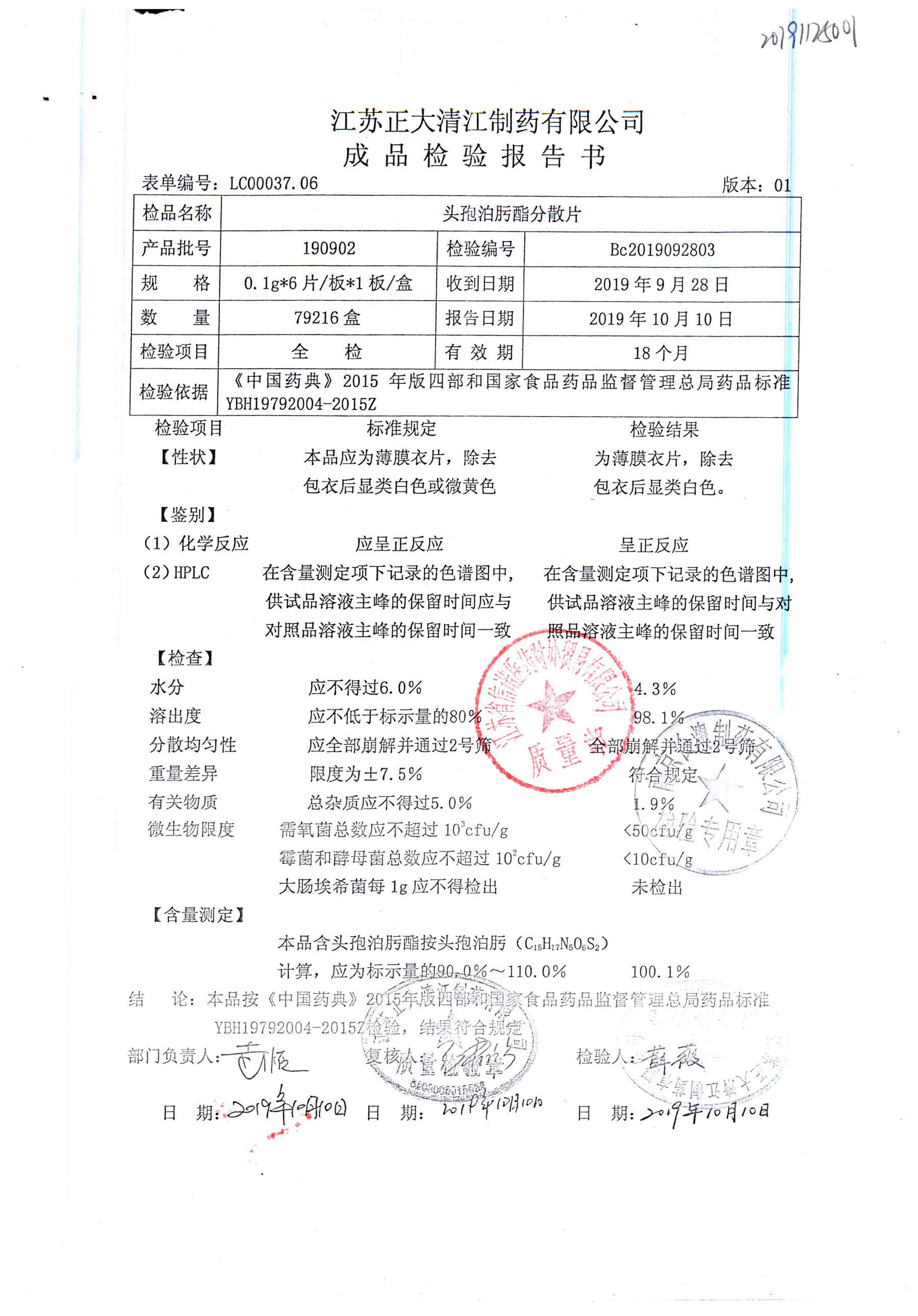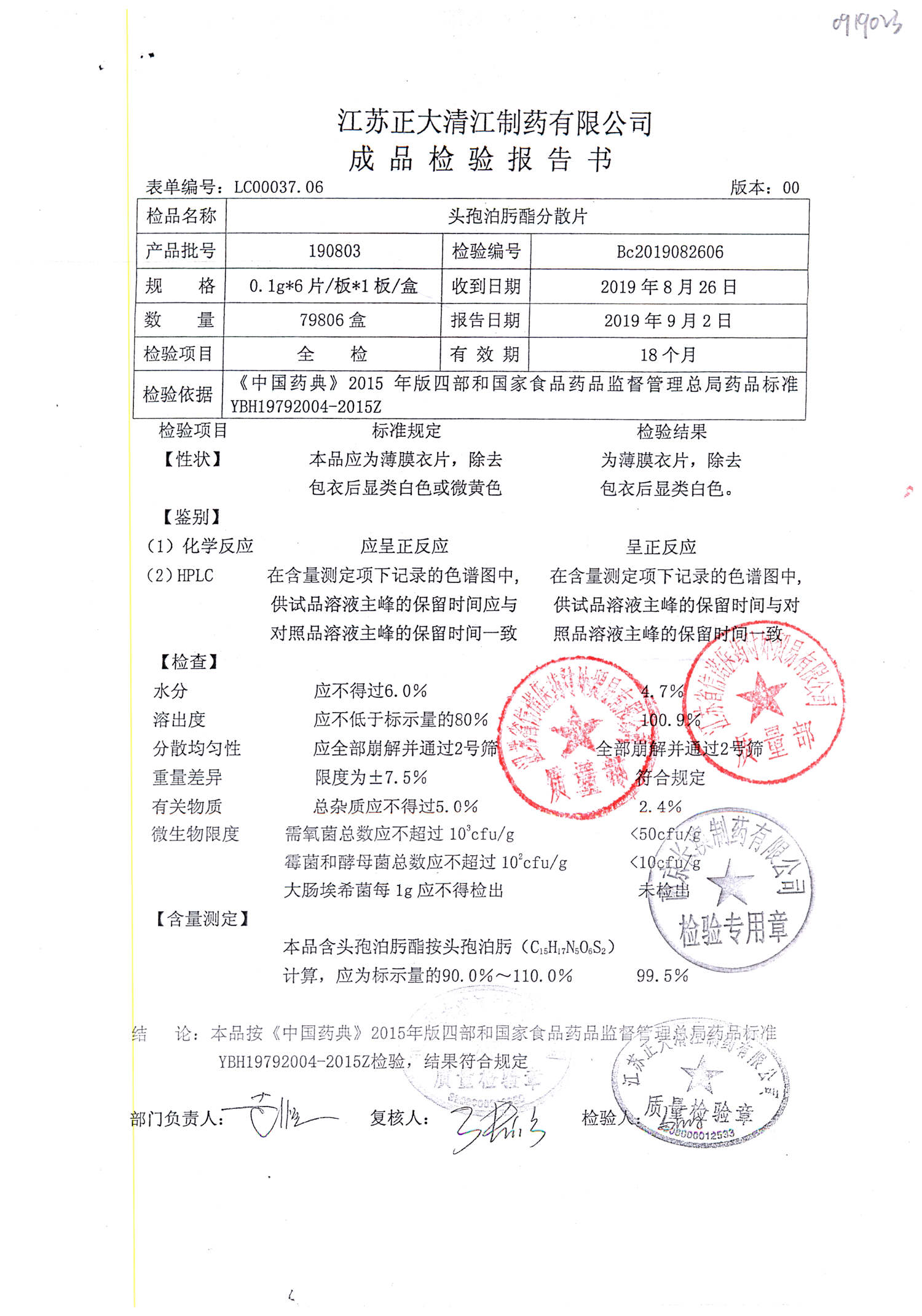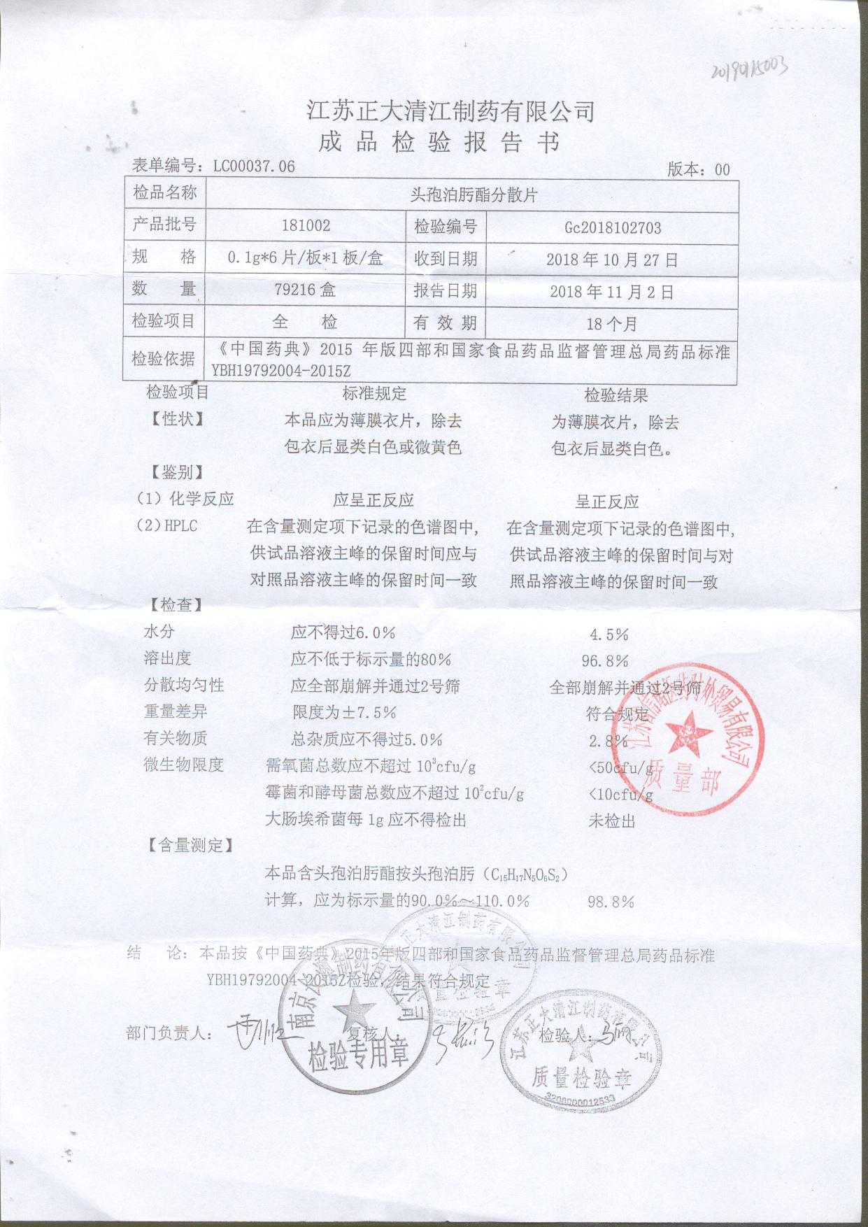 頭孢泊肟酯分散片 | 0.1g*6s | 190804 | 查看詳情 |