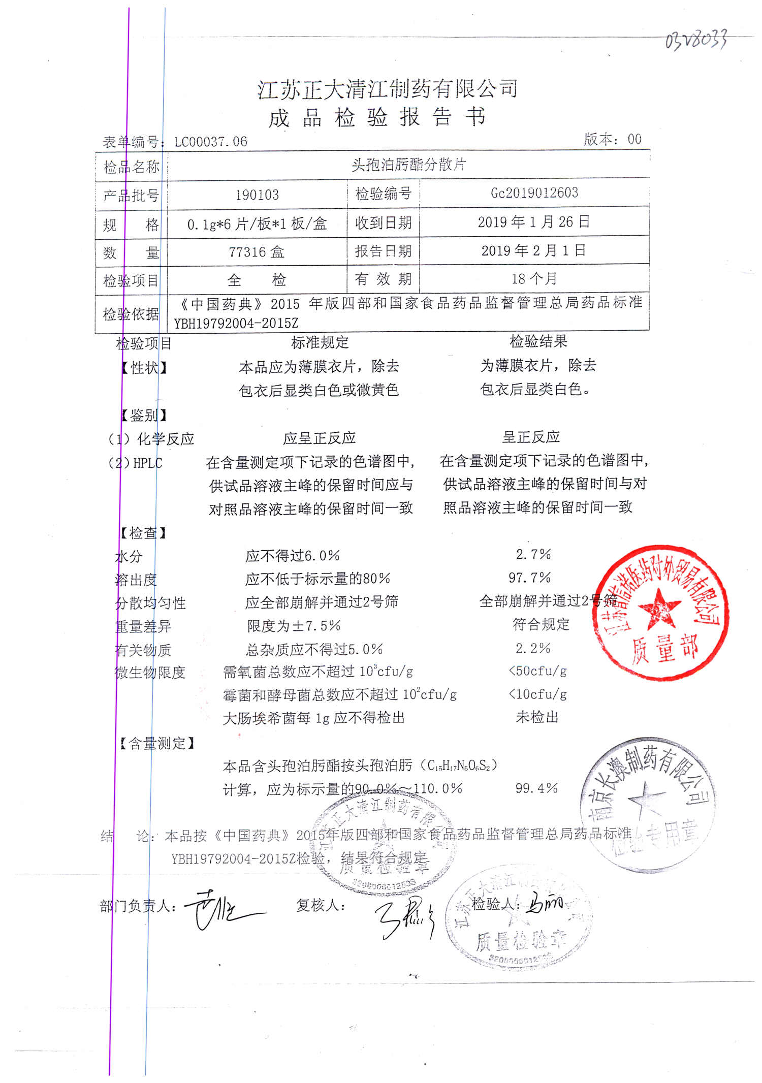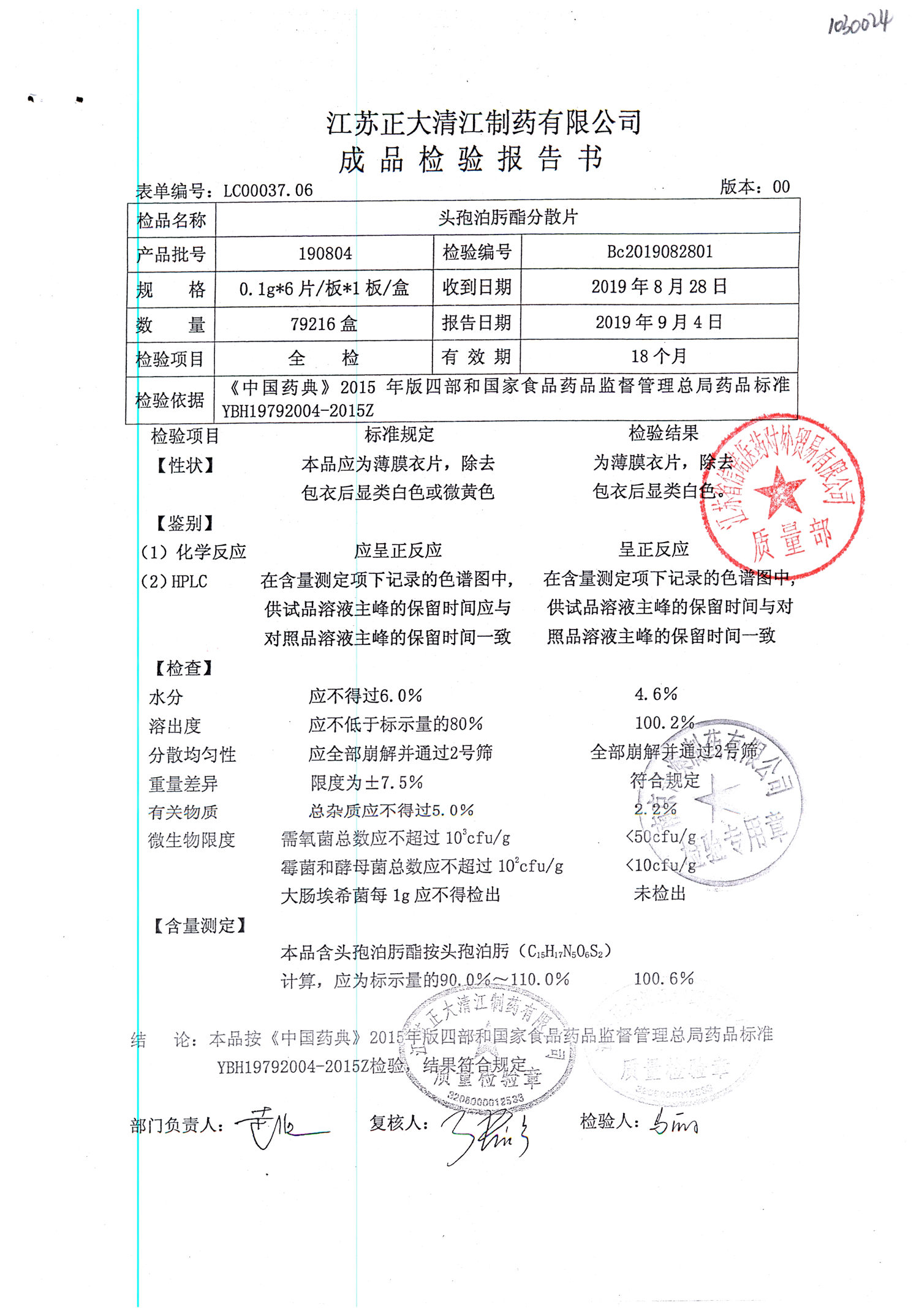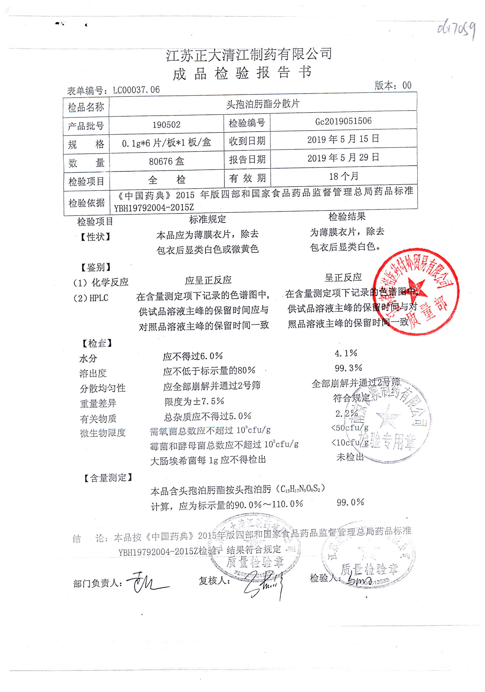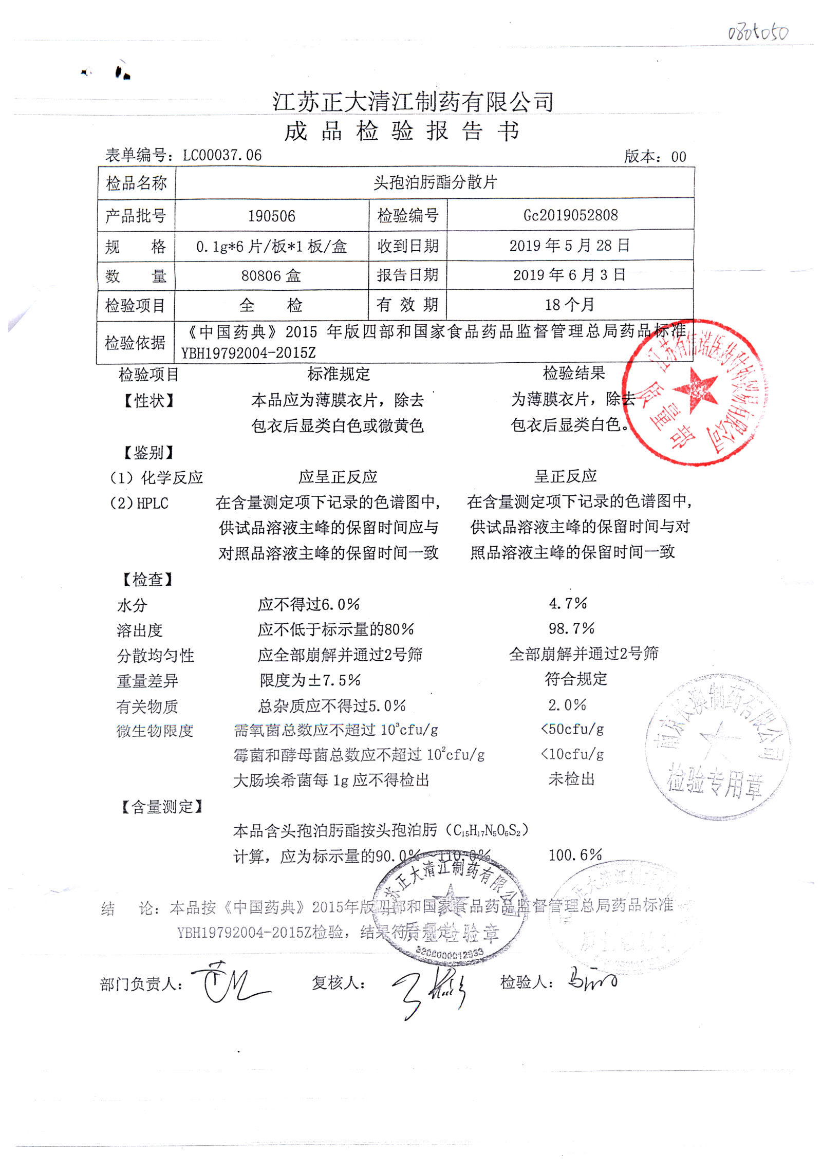 頭孢泊肟酯分散片 | 0.1g*6s | 190804 | 查看詳情 |