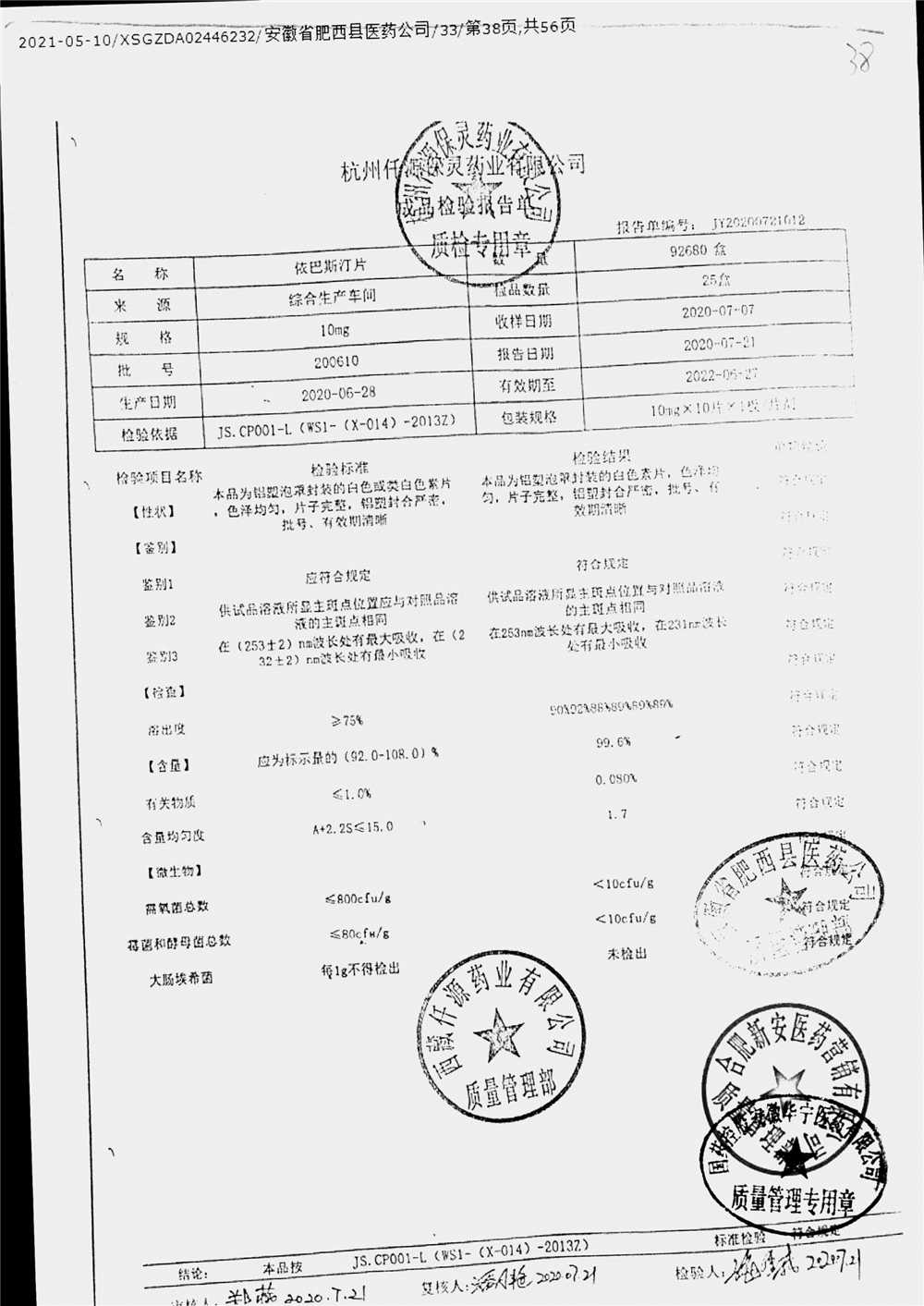 依巴斯汀片 | 10mg*10s | 210911 | 查看詳情 |