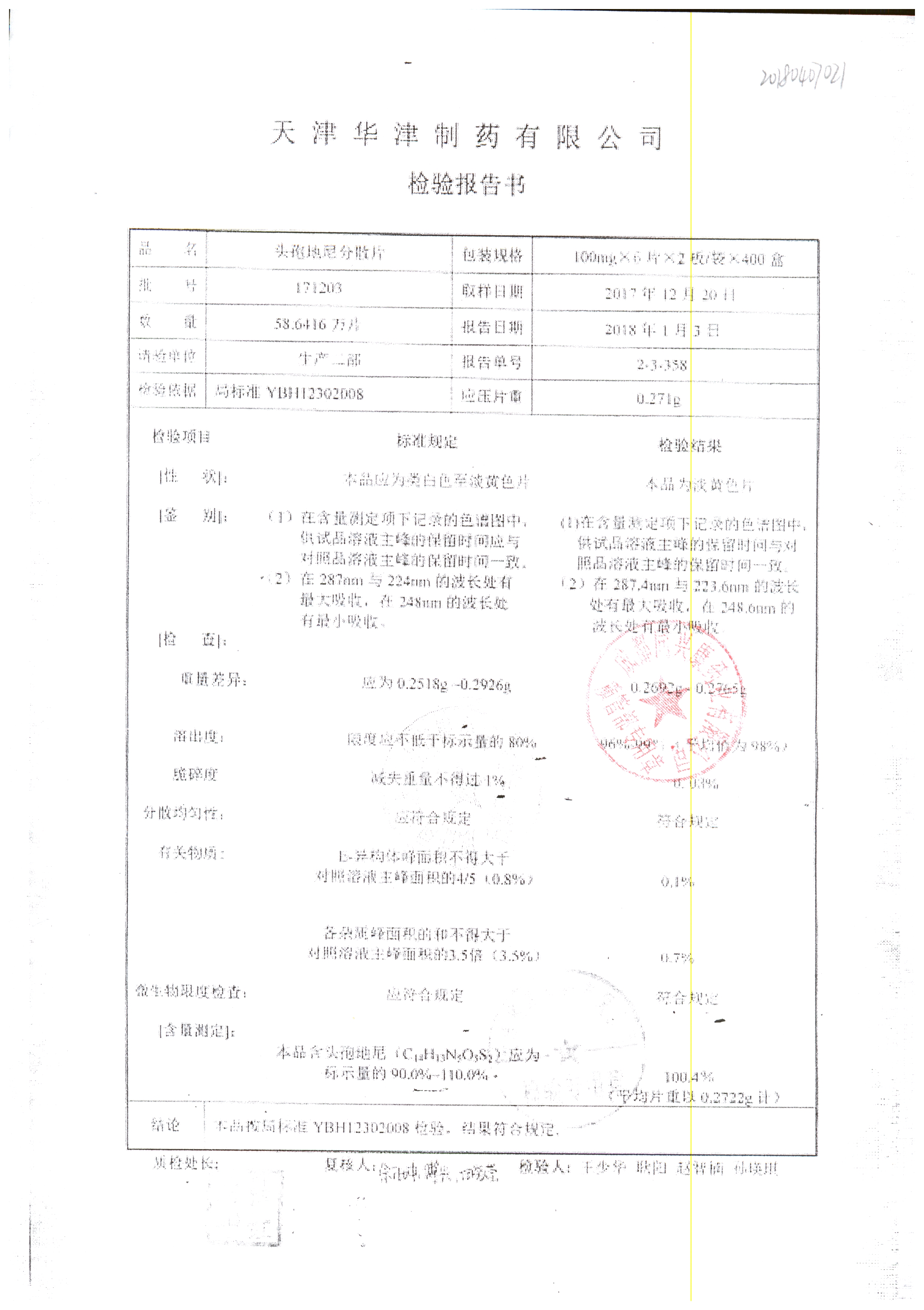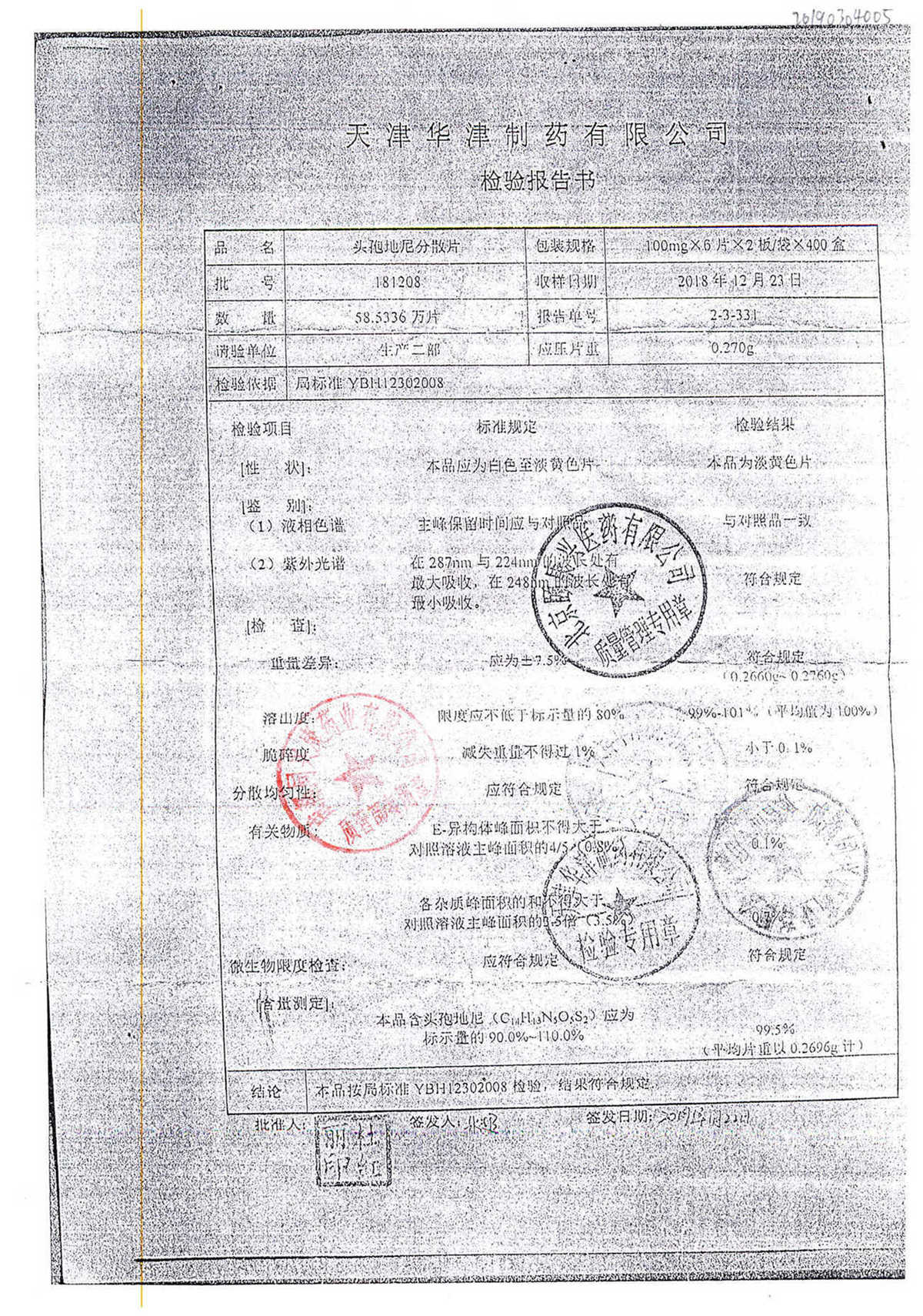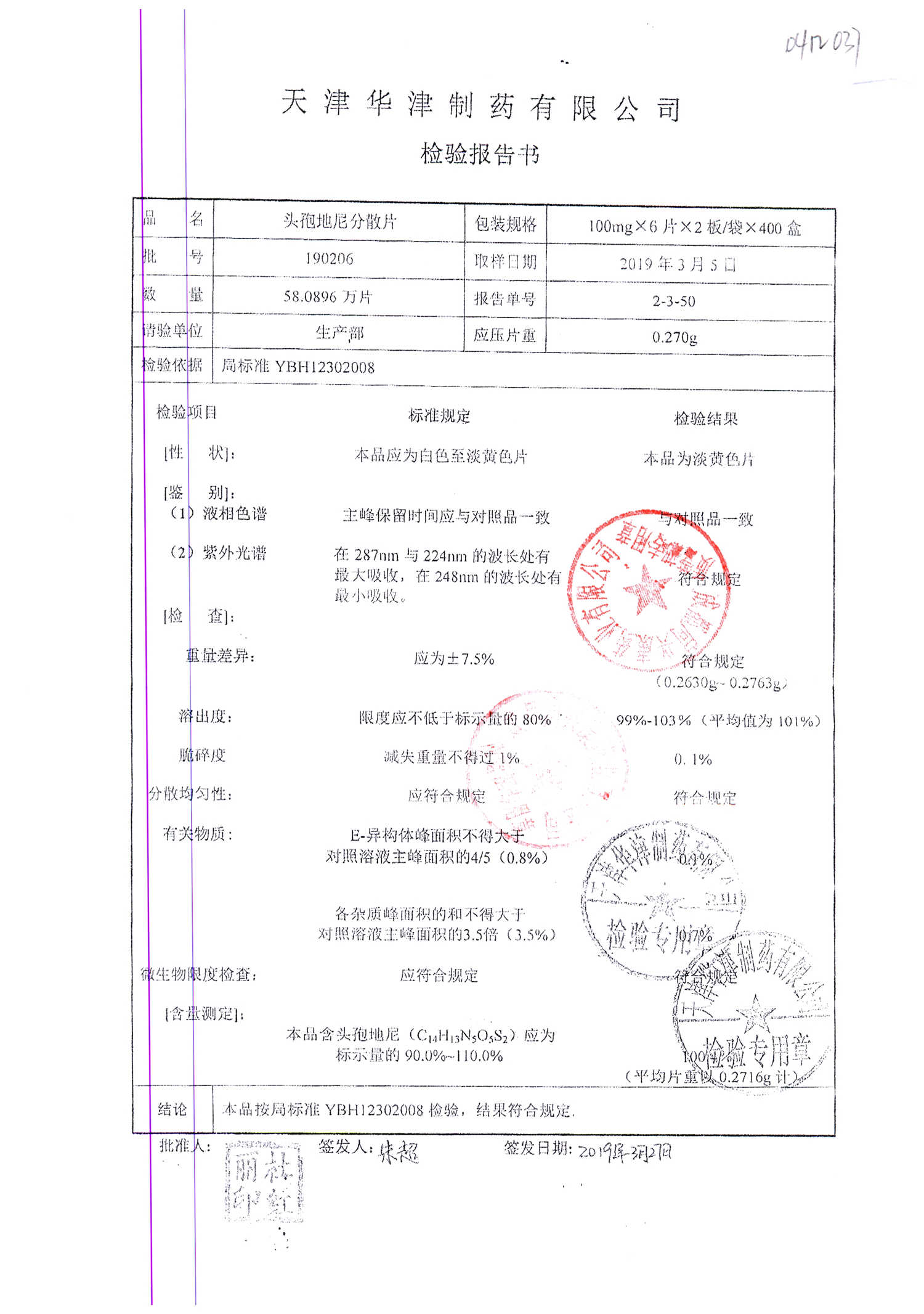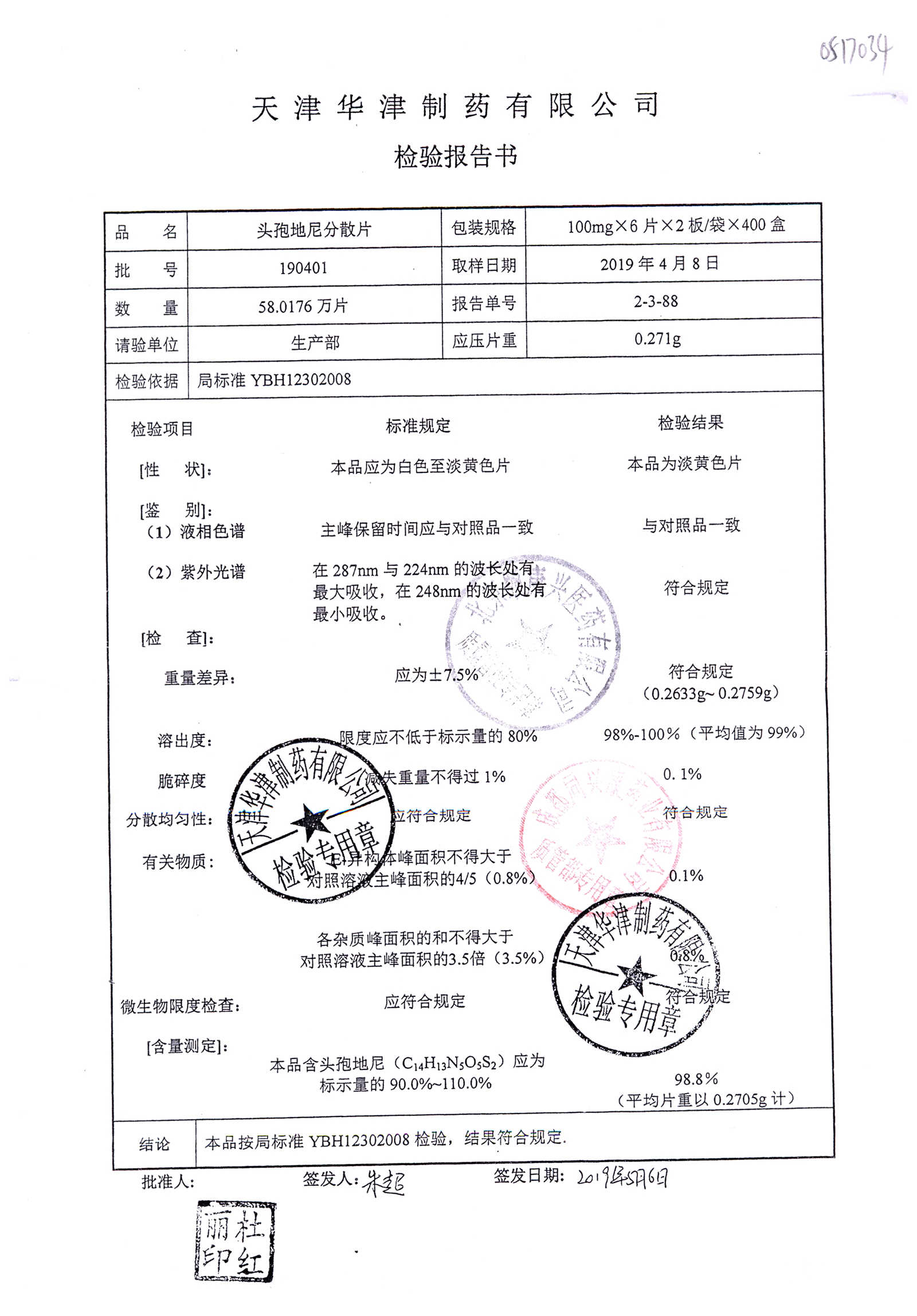 頭孢地尼分散片 | 100mg*12片 | 190401 | 查看詳情 |