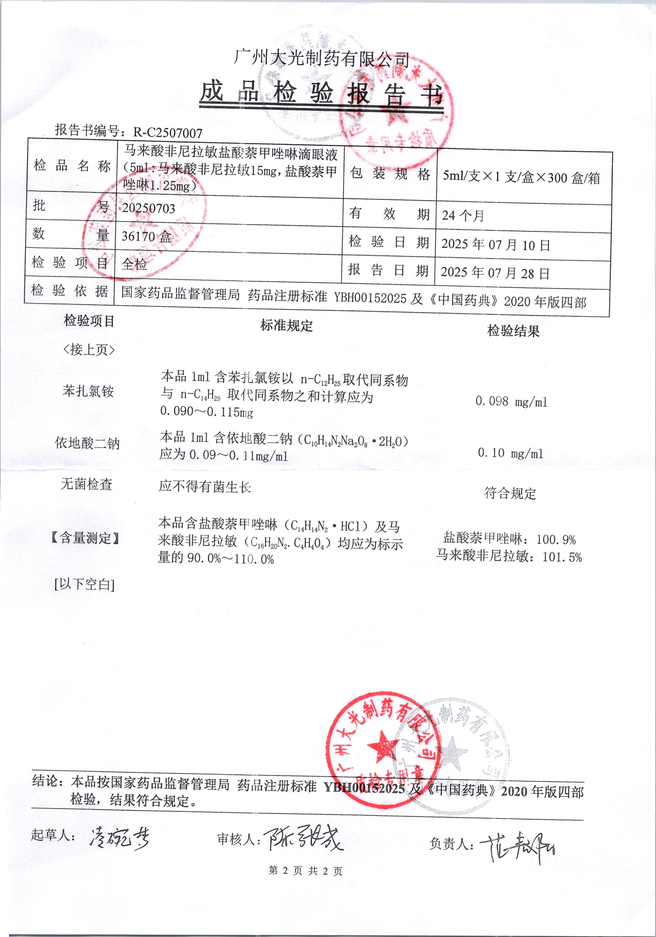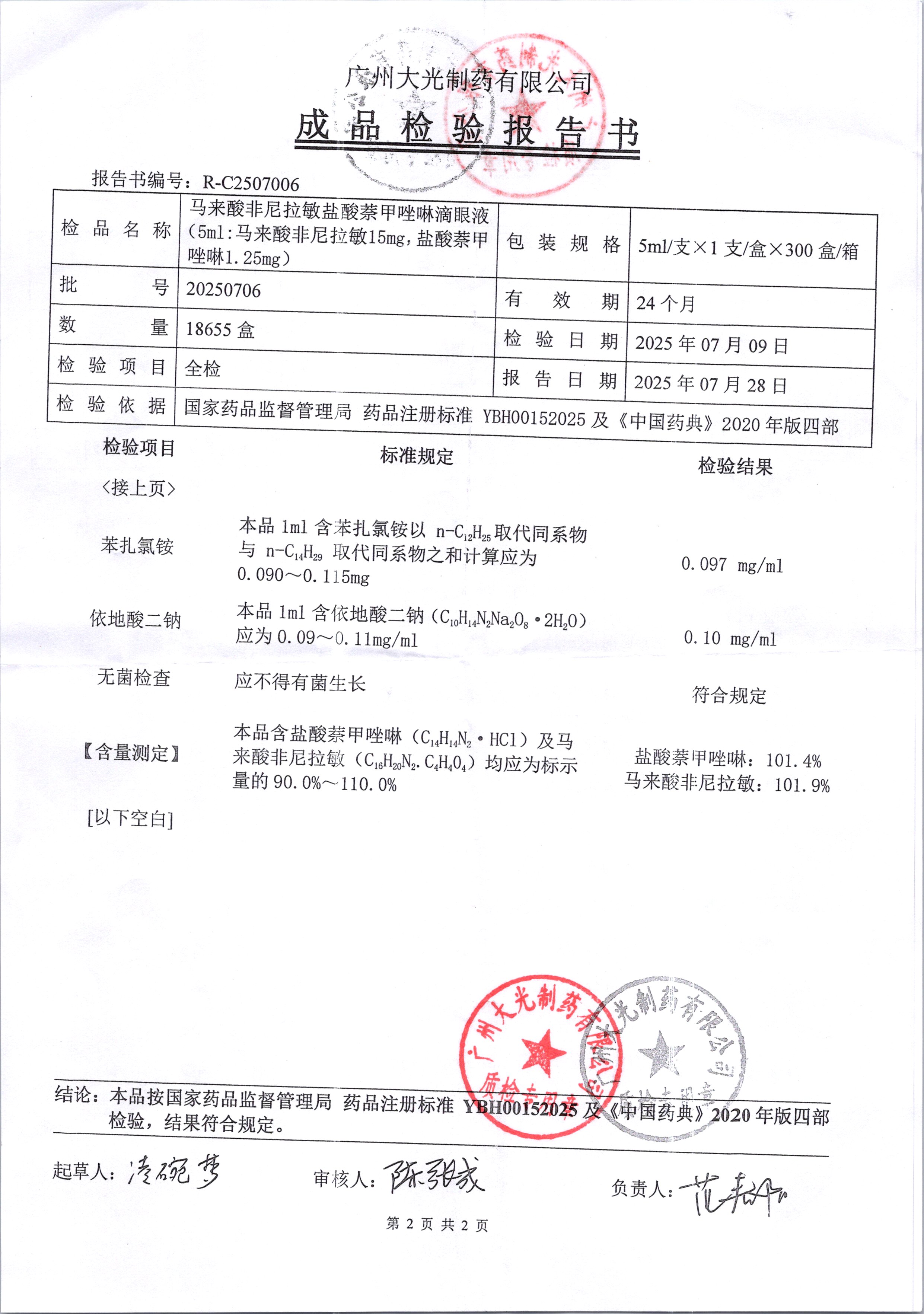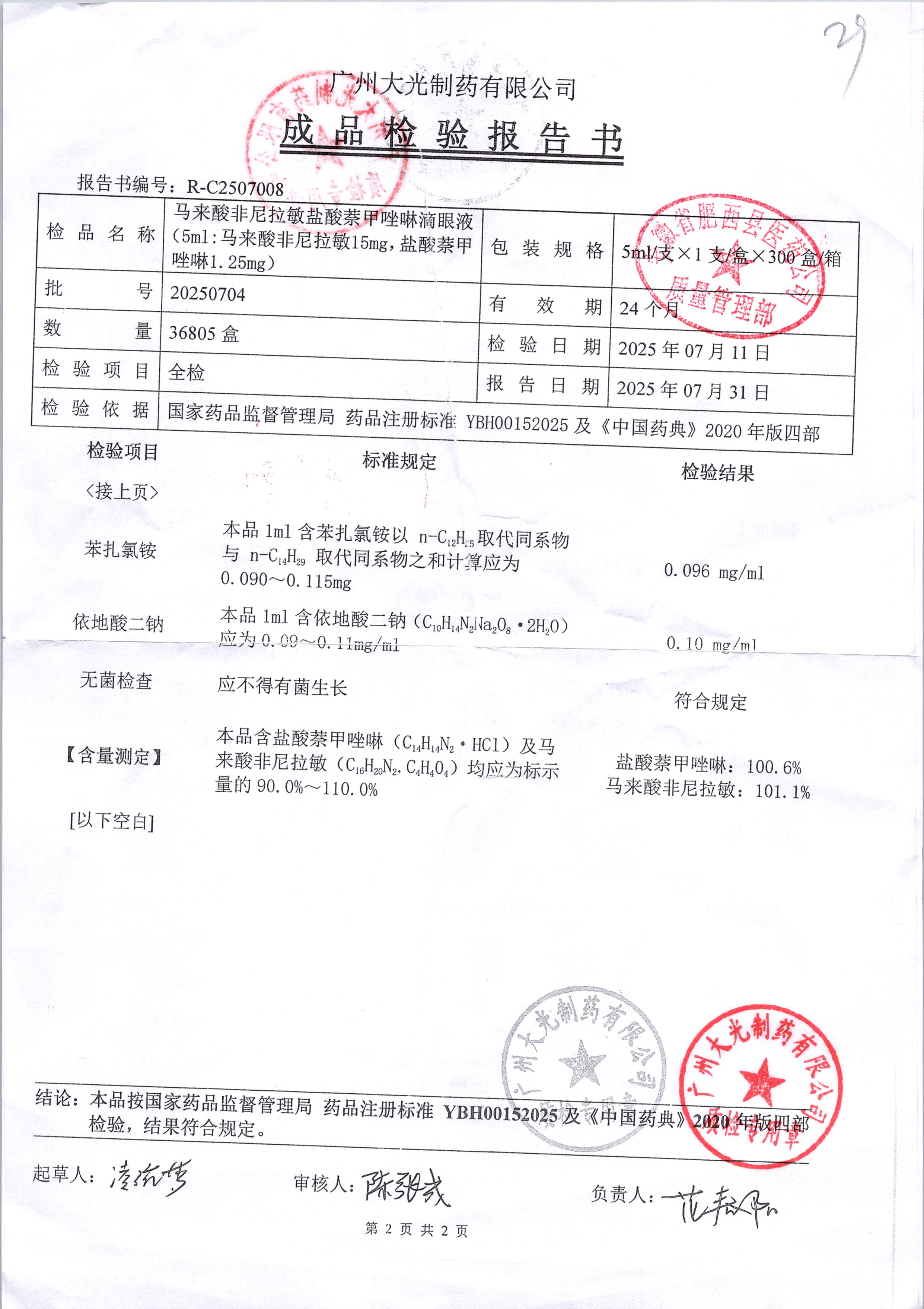 馬來酸非尼拉敏鹽酸萘甲唑啉滴眼液 | 5ml | 20250704/1 | 查看詳情 |