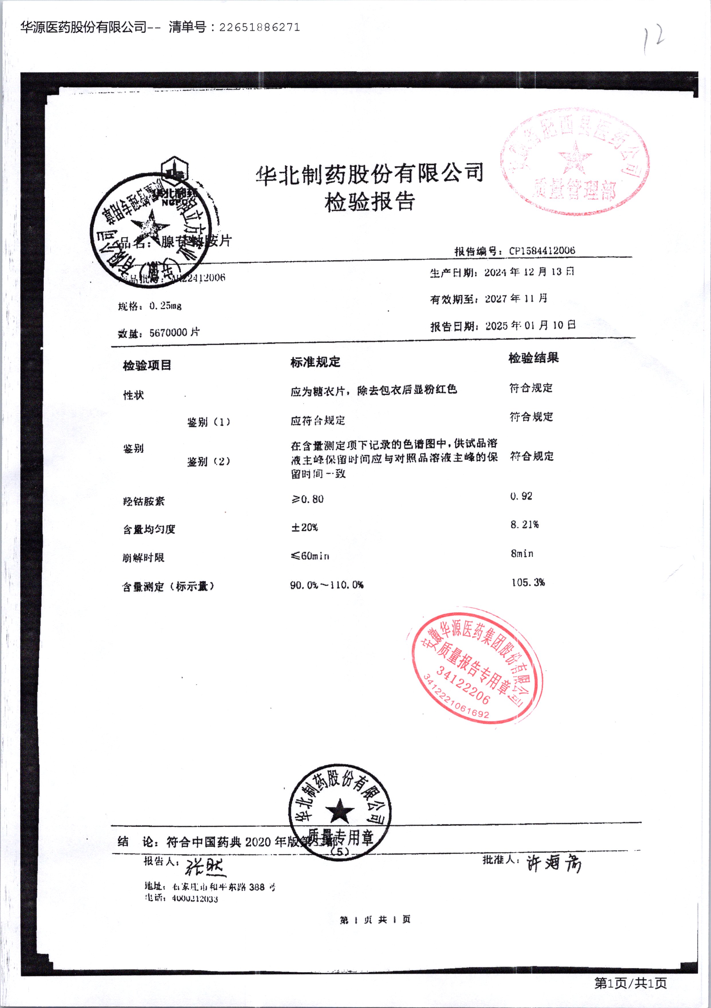 名稱(chēng) | 規(guī)格 | 批號(hào) | 藥檢報(bào)告 |