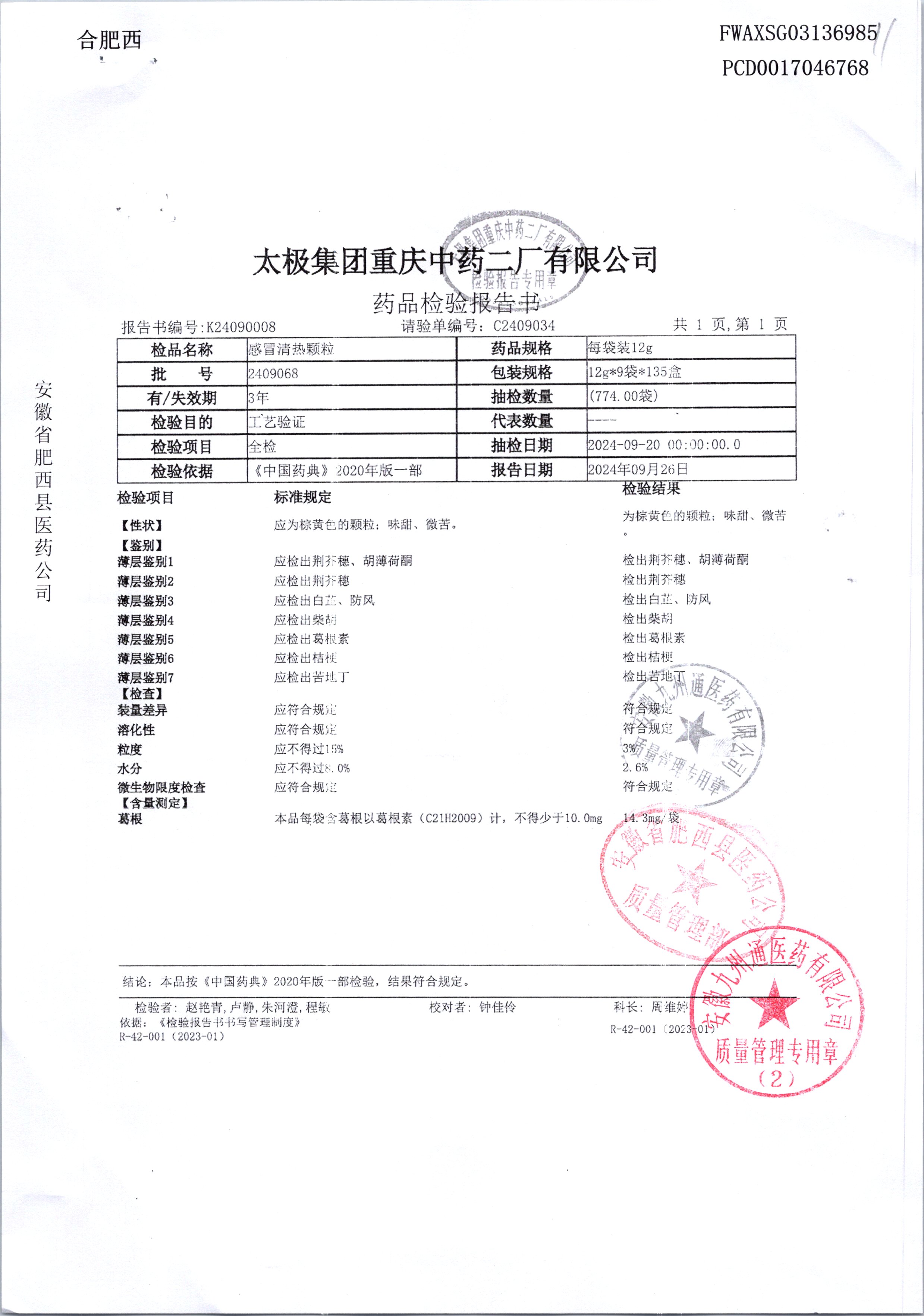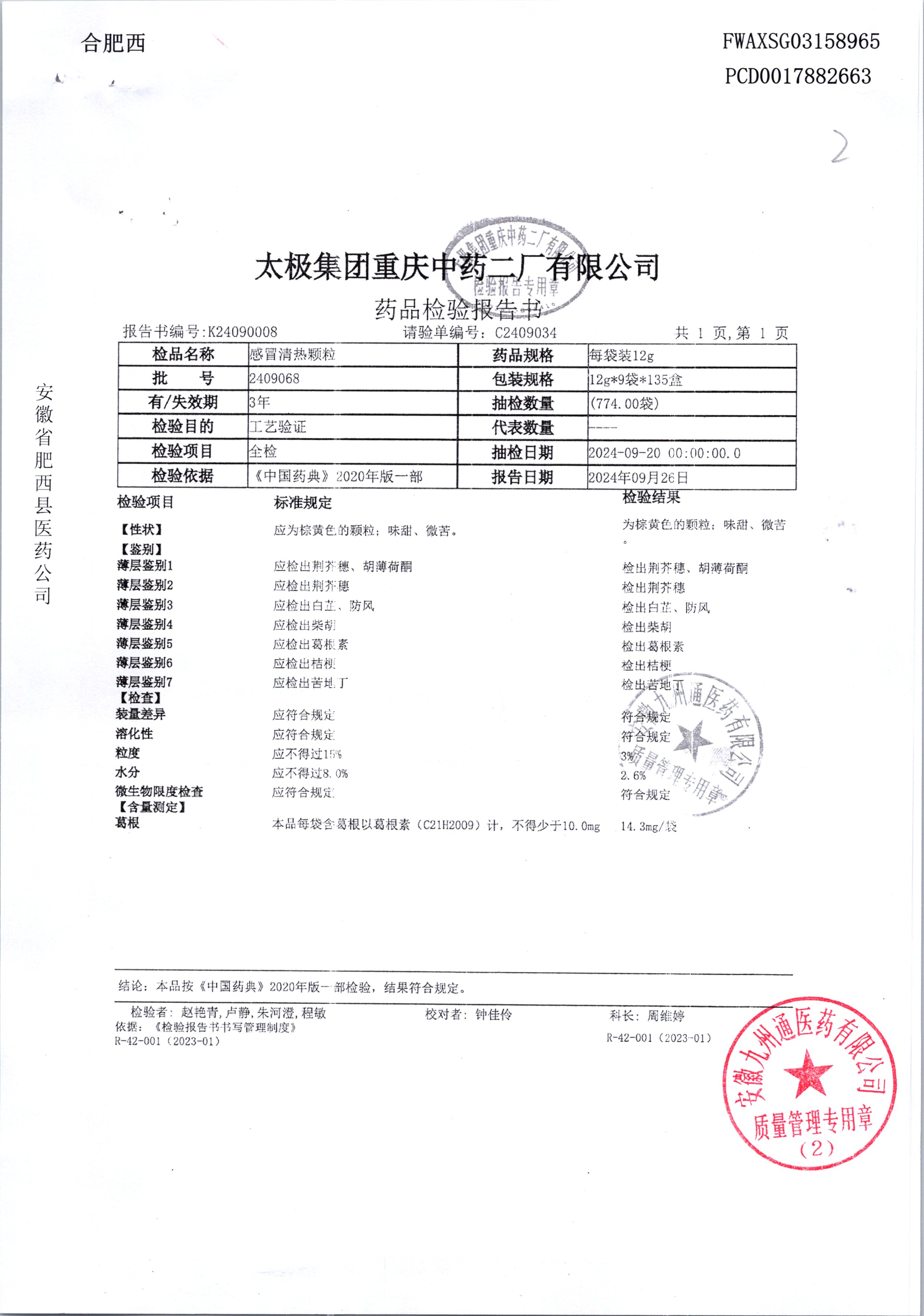 感冒清熱顆粒 | 12g*12*9 | 2409068 | 查看詳情 |