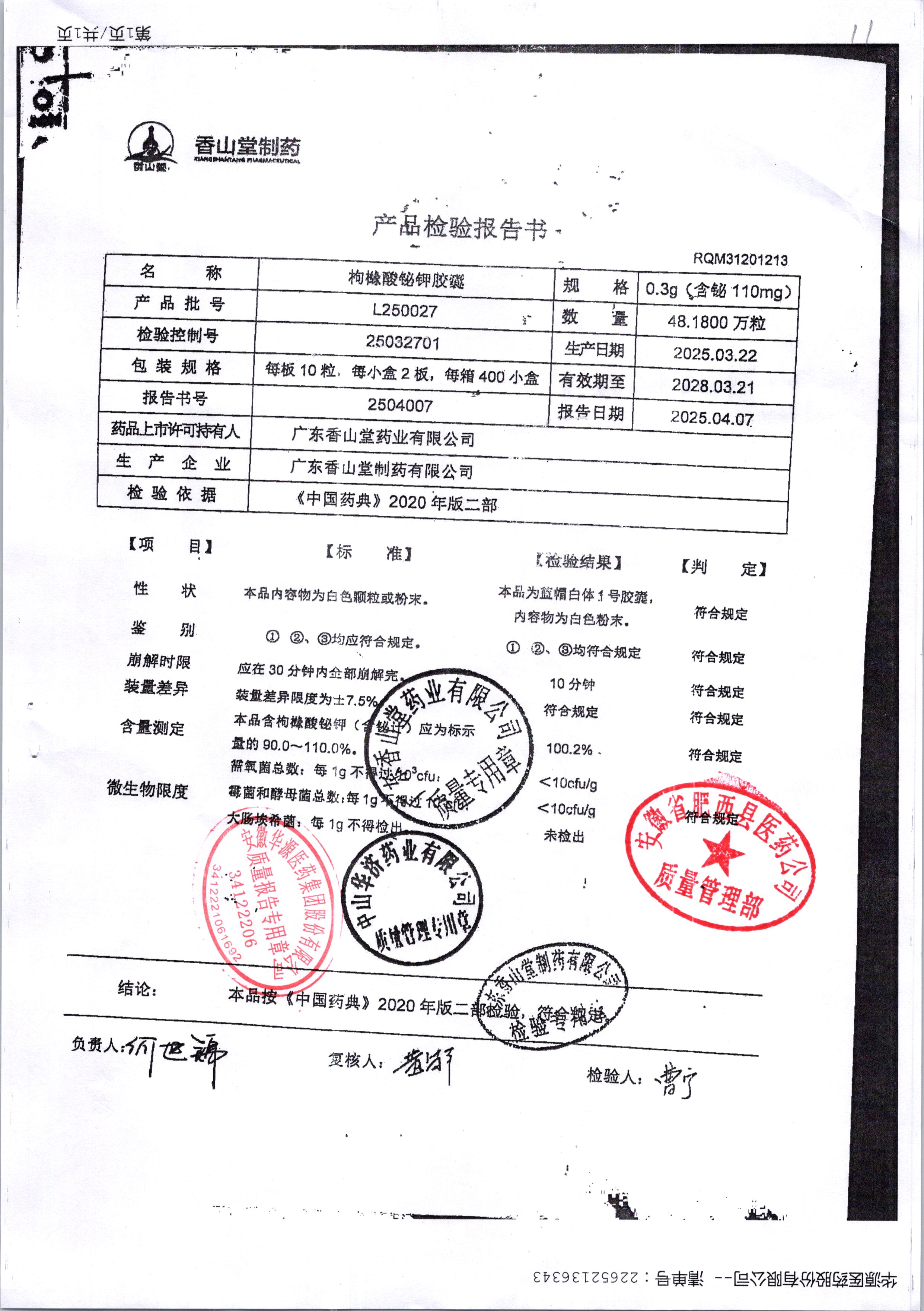 枸櫞酸鉍鉀膠囊 | 0.3g*20片 | L250027 | 查看詳情 |