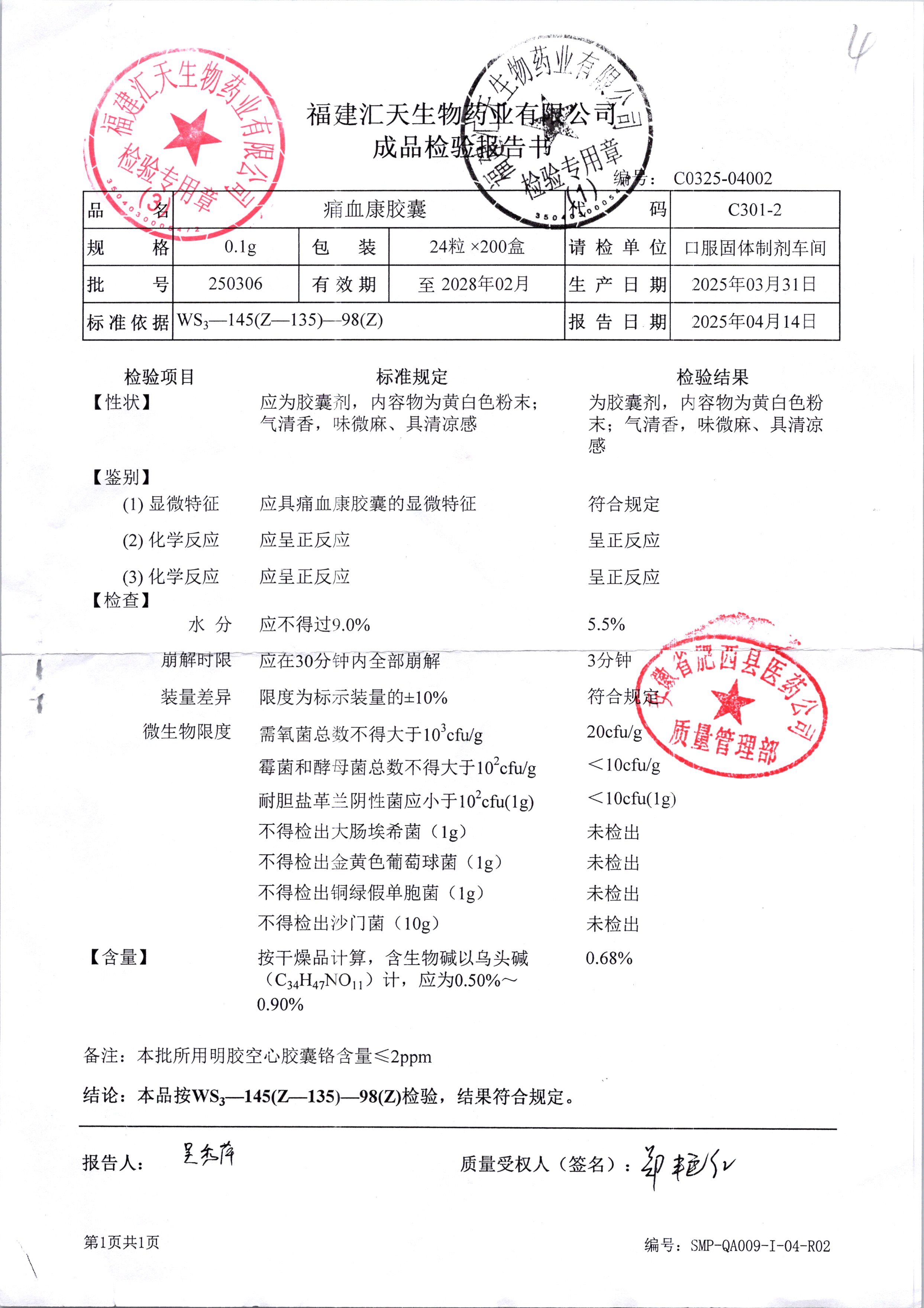 痛血康膠囊 | 0.1g*24 粒 | 250306 | 查看詳情 |