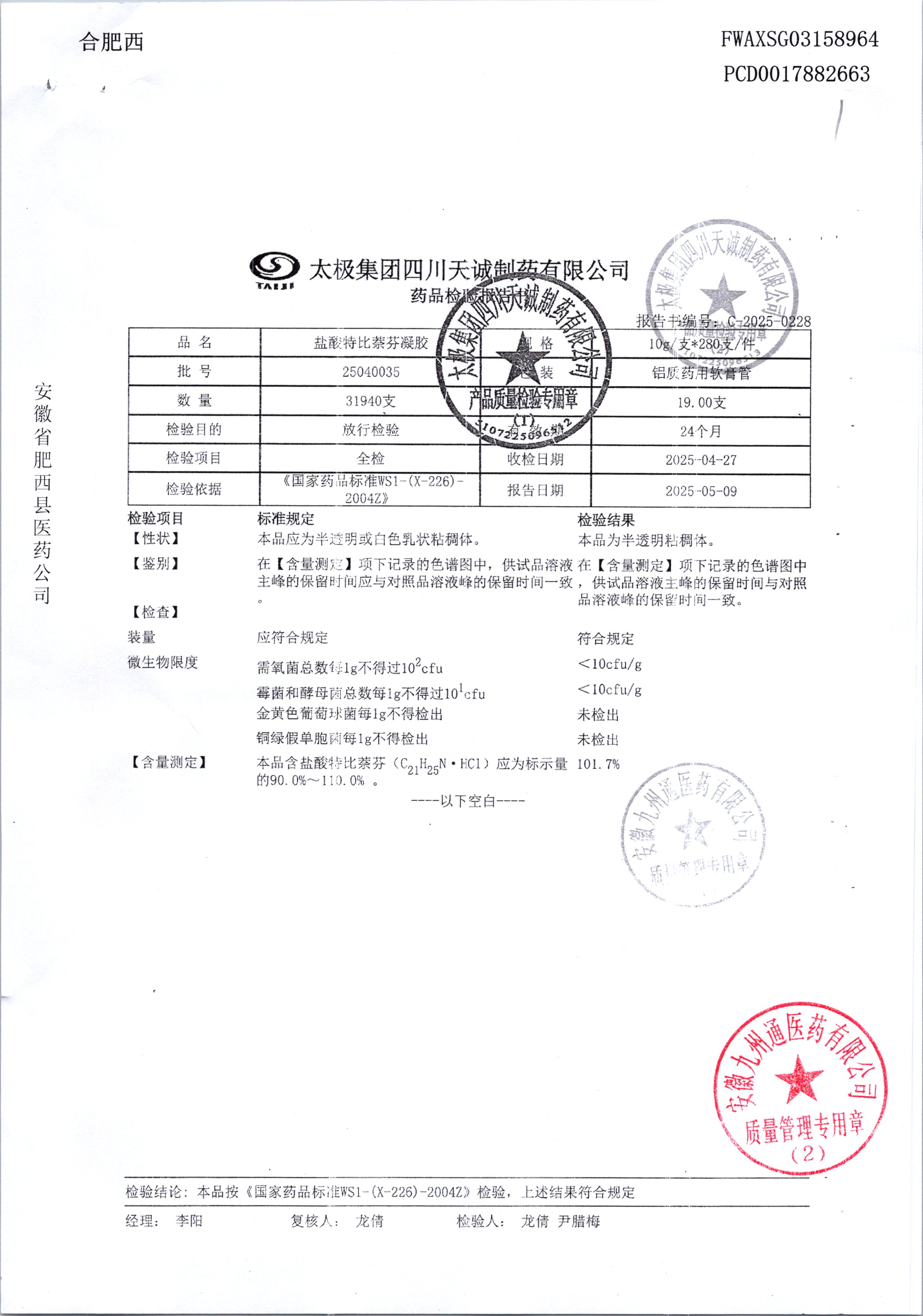 名稱 | 規(guī)格 | 批號(hào) | 藥檢報(bào)告 |