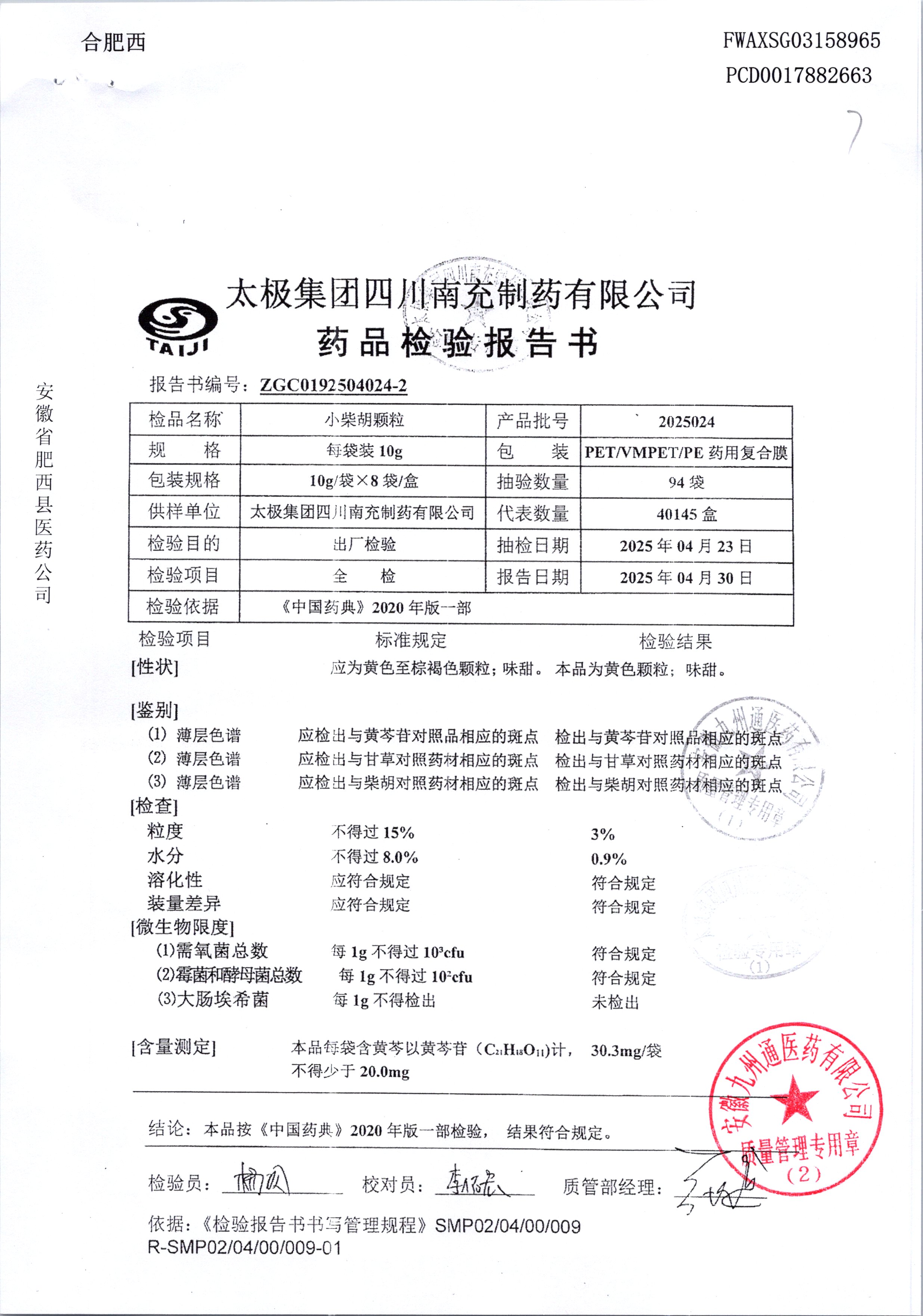 小柴胡顆粒 | 10g*8袋 | 2025024 | 查看詳情 |