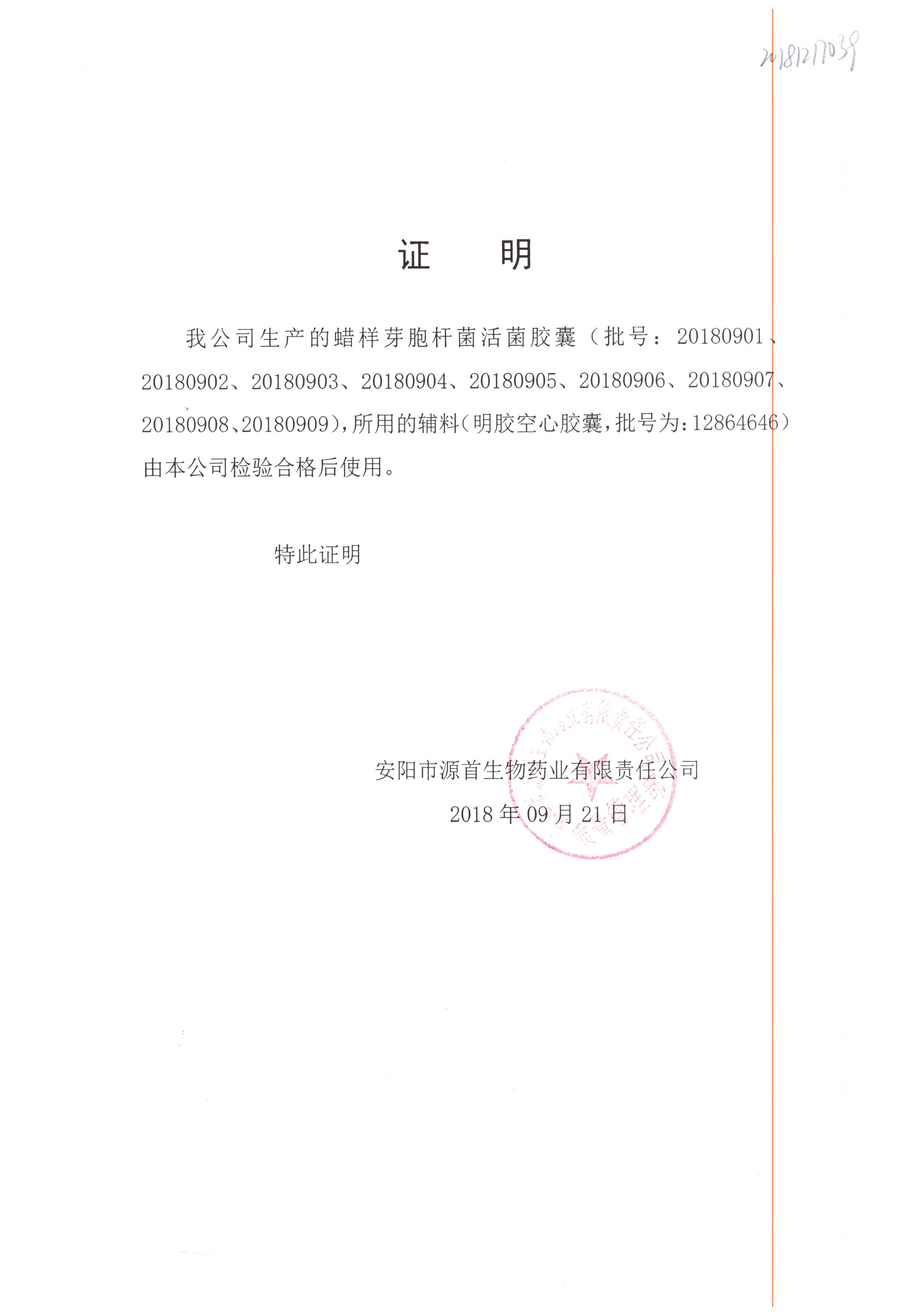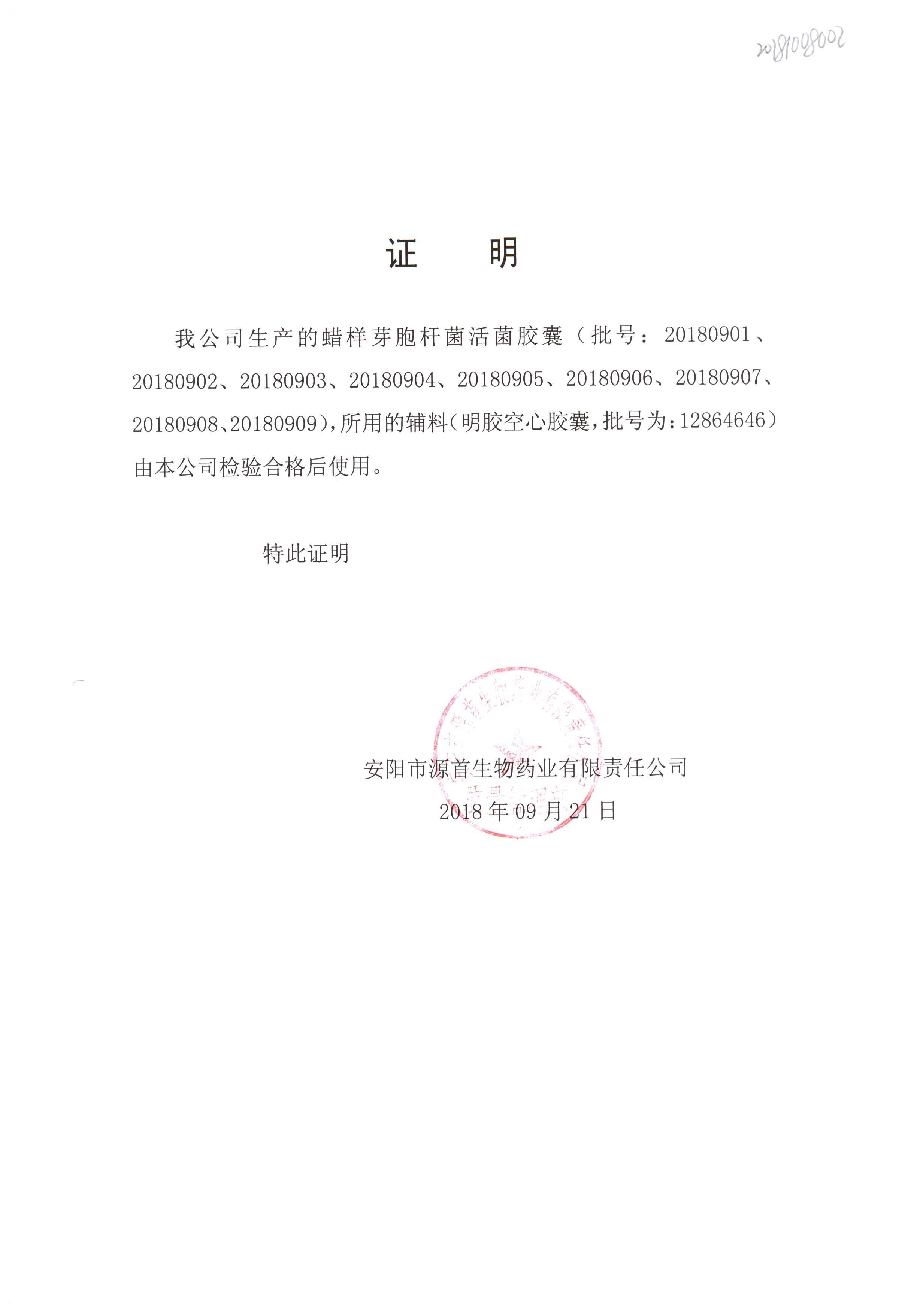 蠟樣芽孢桿菌活菌膠囊(源首) | 0.25g | 20180906(2/3) | 查看詳情 |