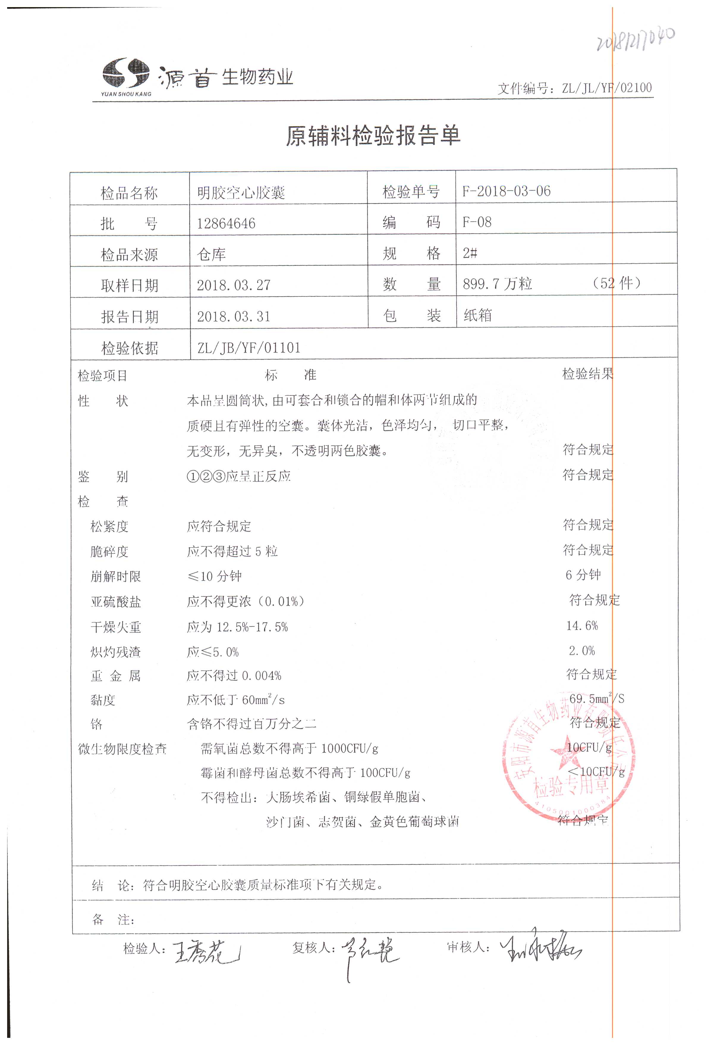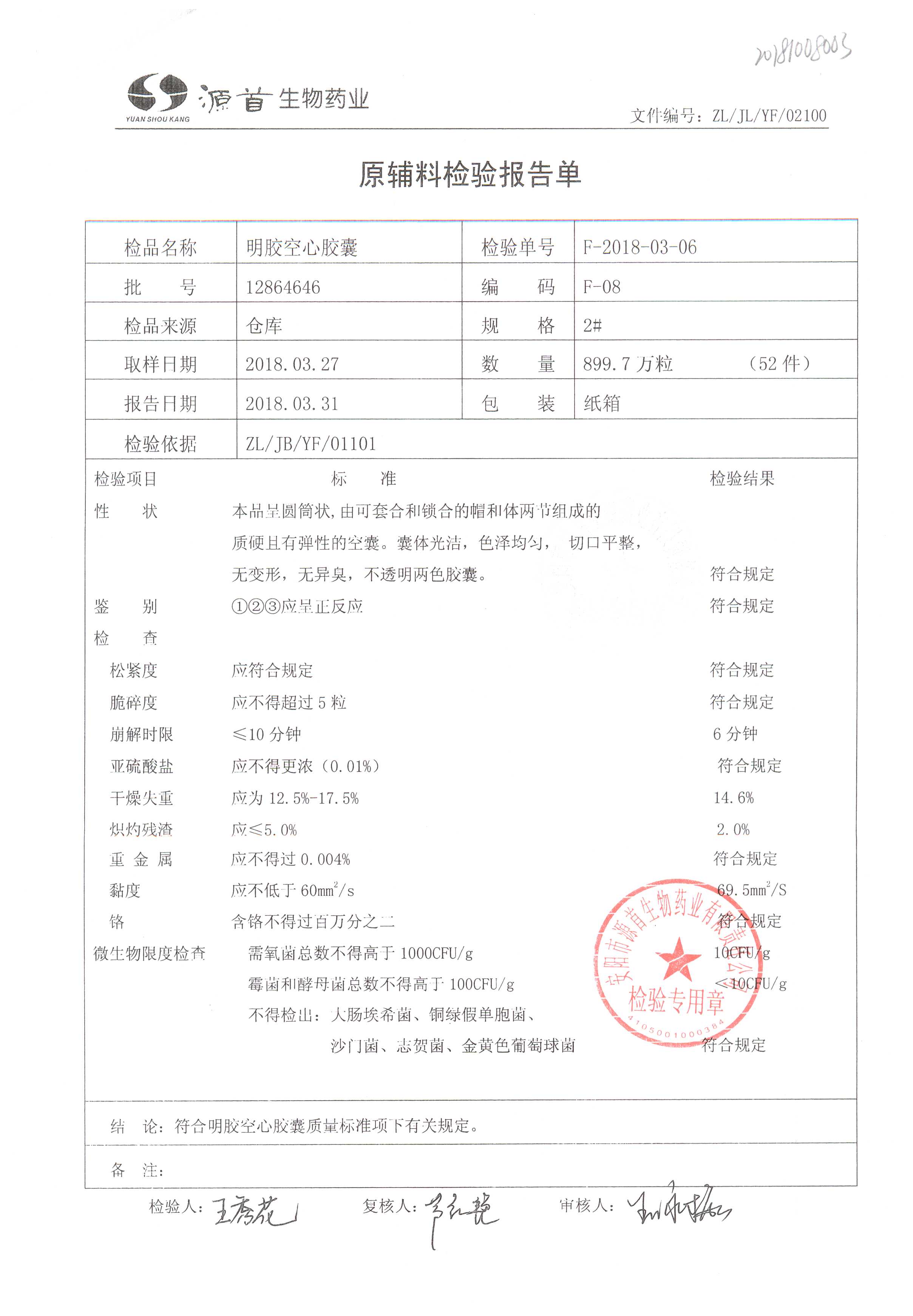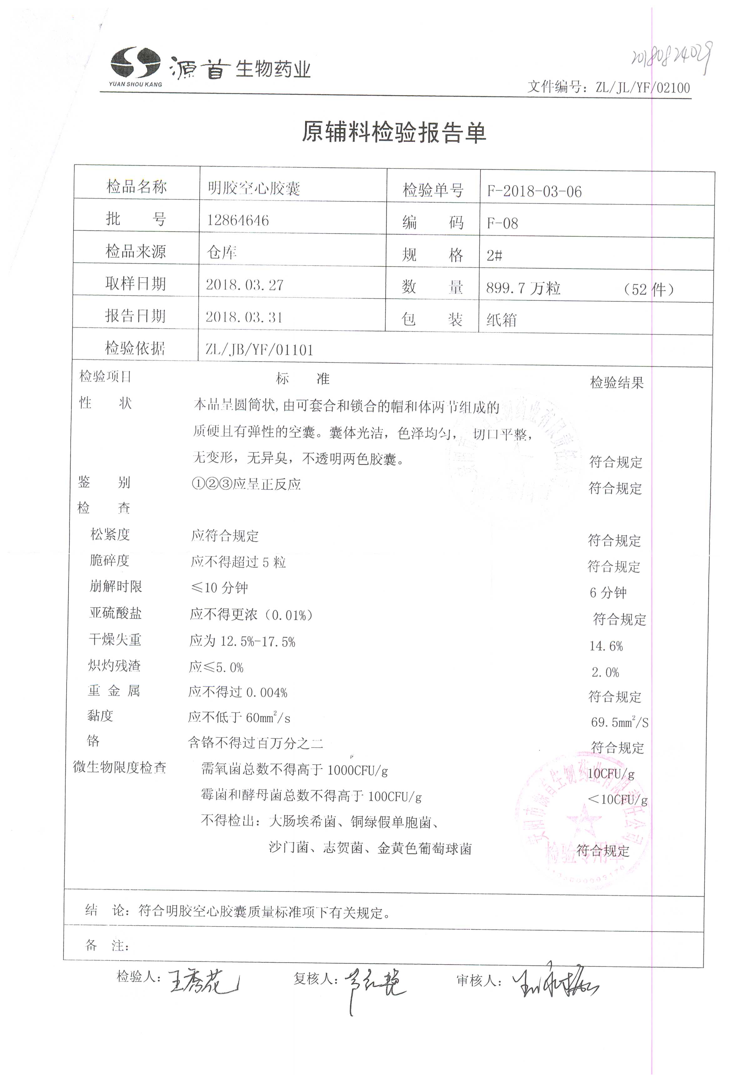 蠟樣芽孢桿菌活菌膠囊(源首) | 0.25g | 20180304(2/3) | 查看詳情 |