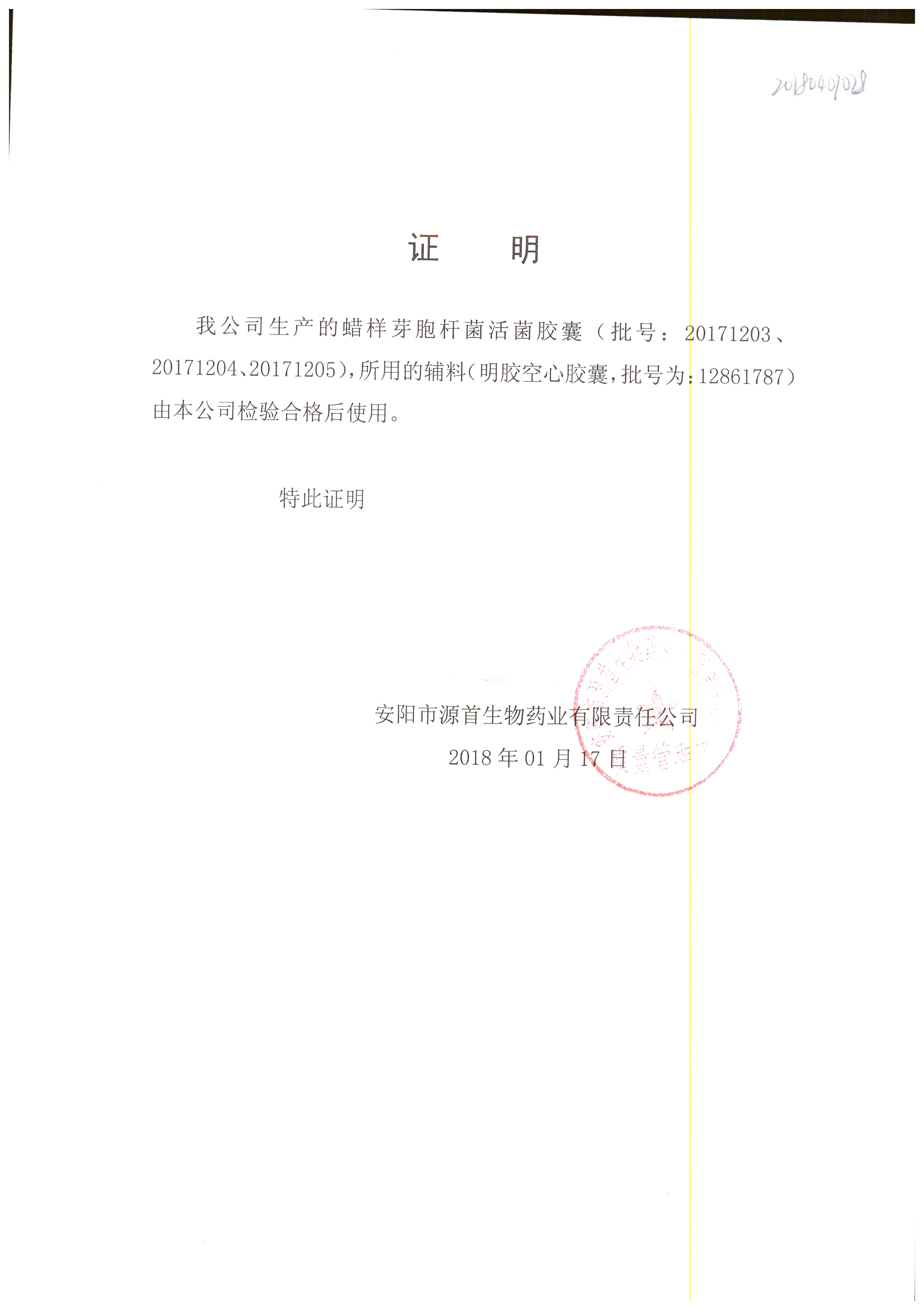 蠟樣芽孢桿菌活菌膠囊(源首) | 0.25g | 20171204 | 查看詳情 |