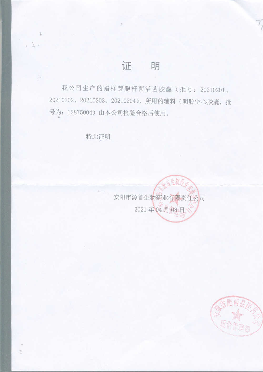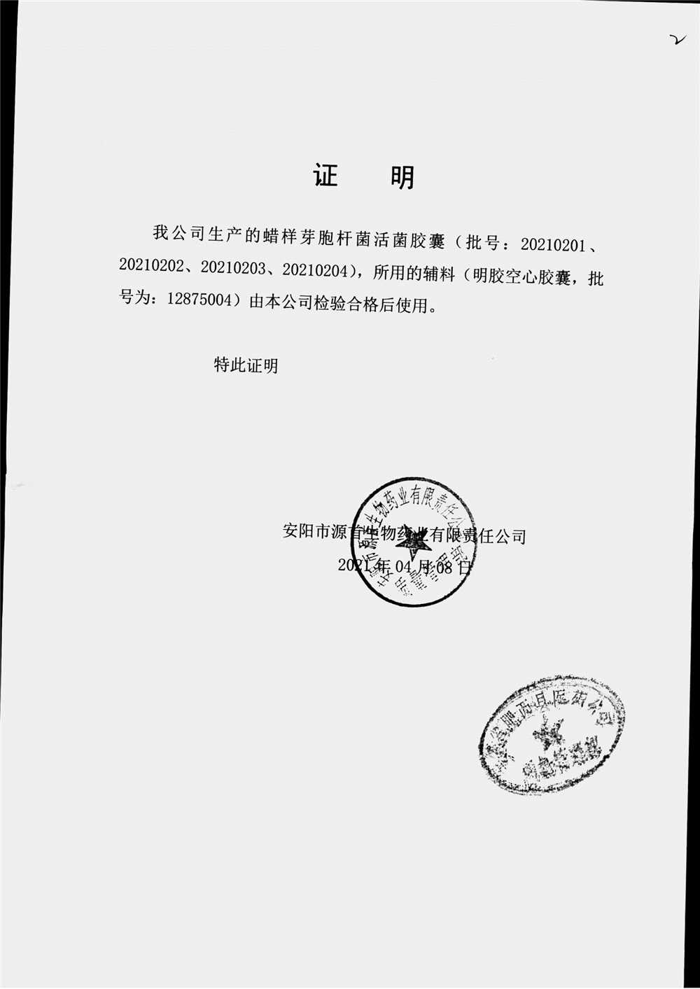蠟樣芽孢桿菌活菌膠囊(源首) | 0.25g | 20220103 | 查看詳情 |