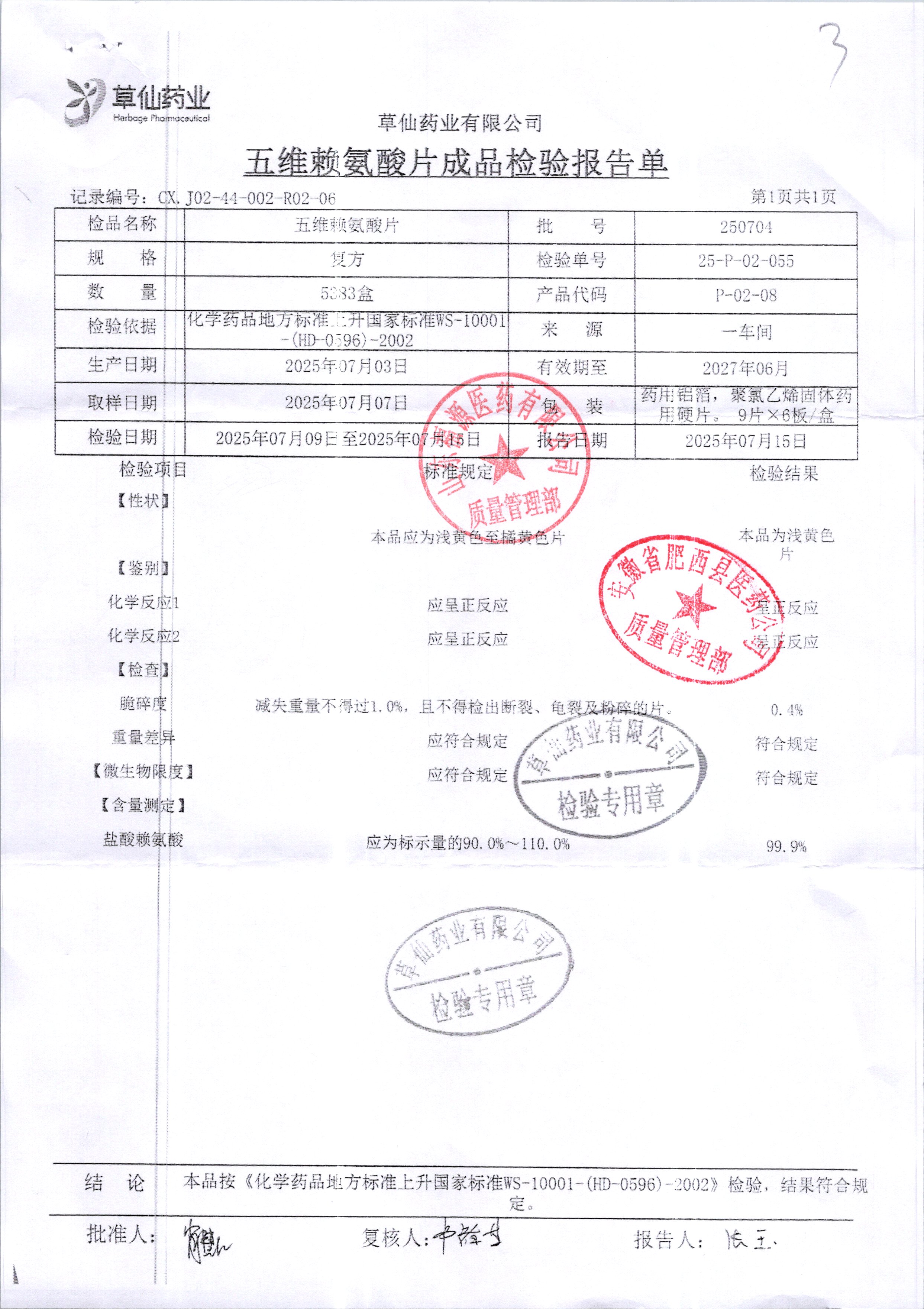 五維賴氨酸片 | 54s | 250704 | 查看詳情 |