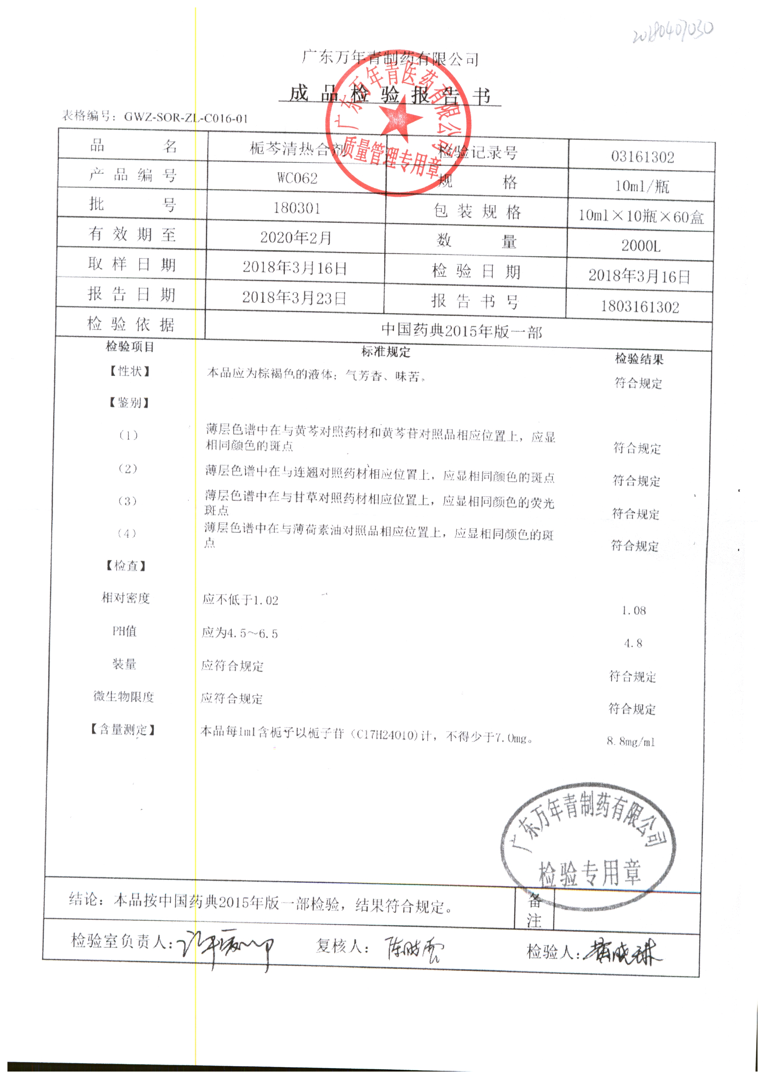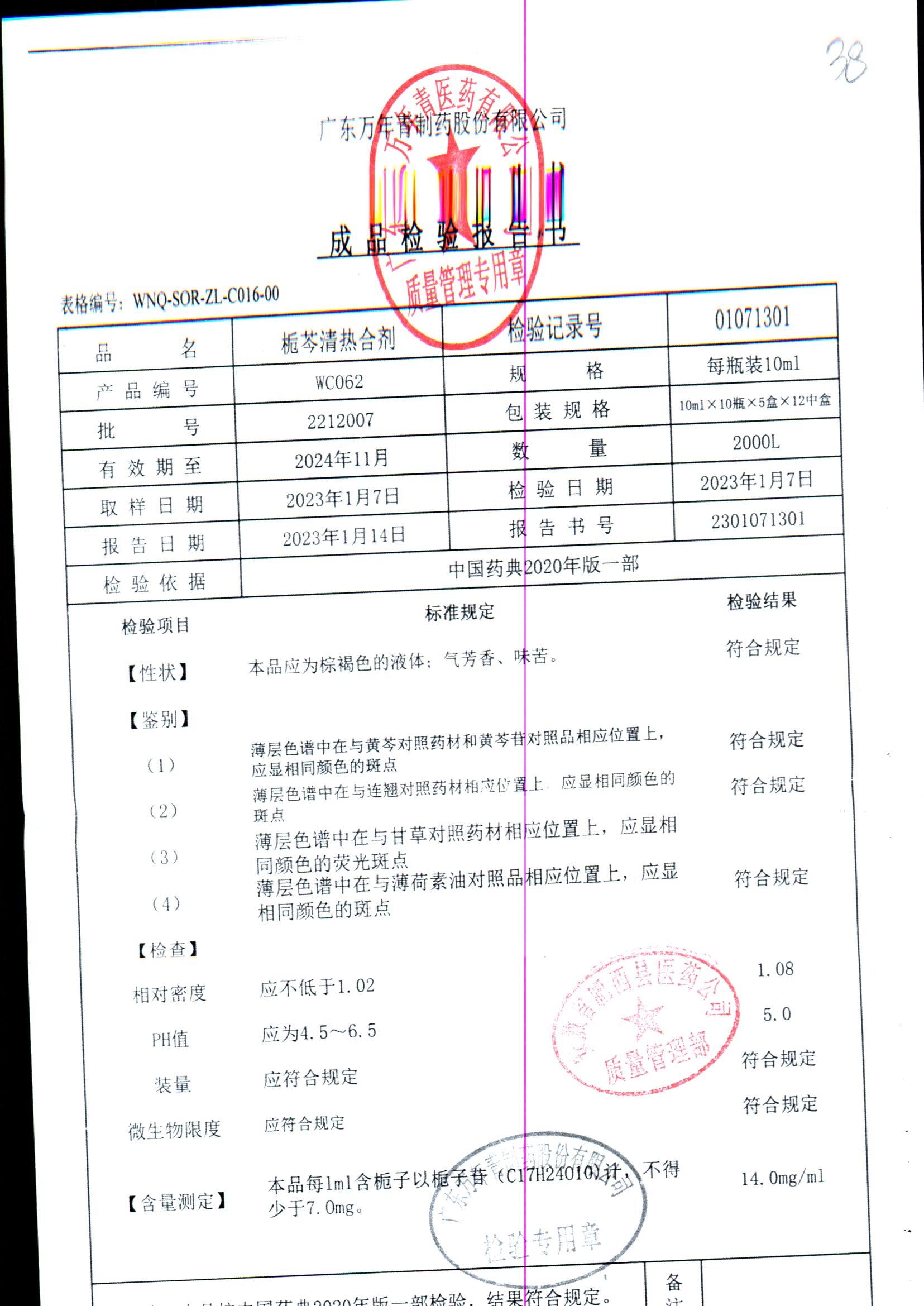 名稱 | 規(guī)格 | 批號(hào) | 藥檢報(bào)告 |