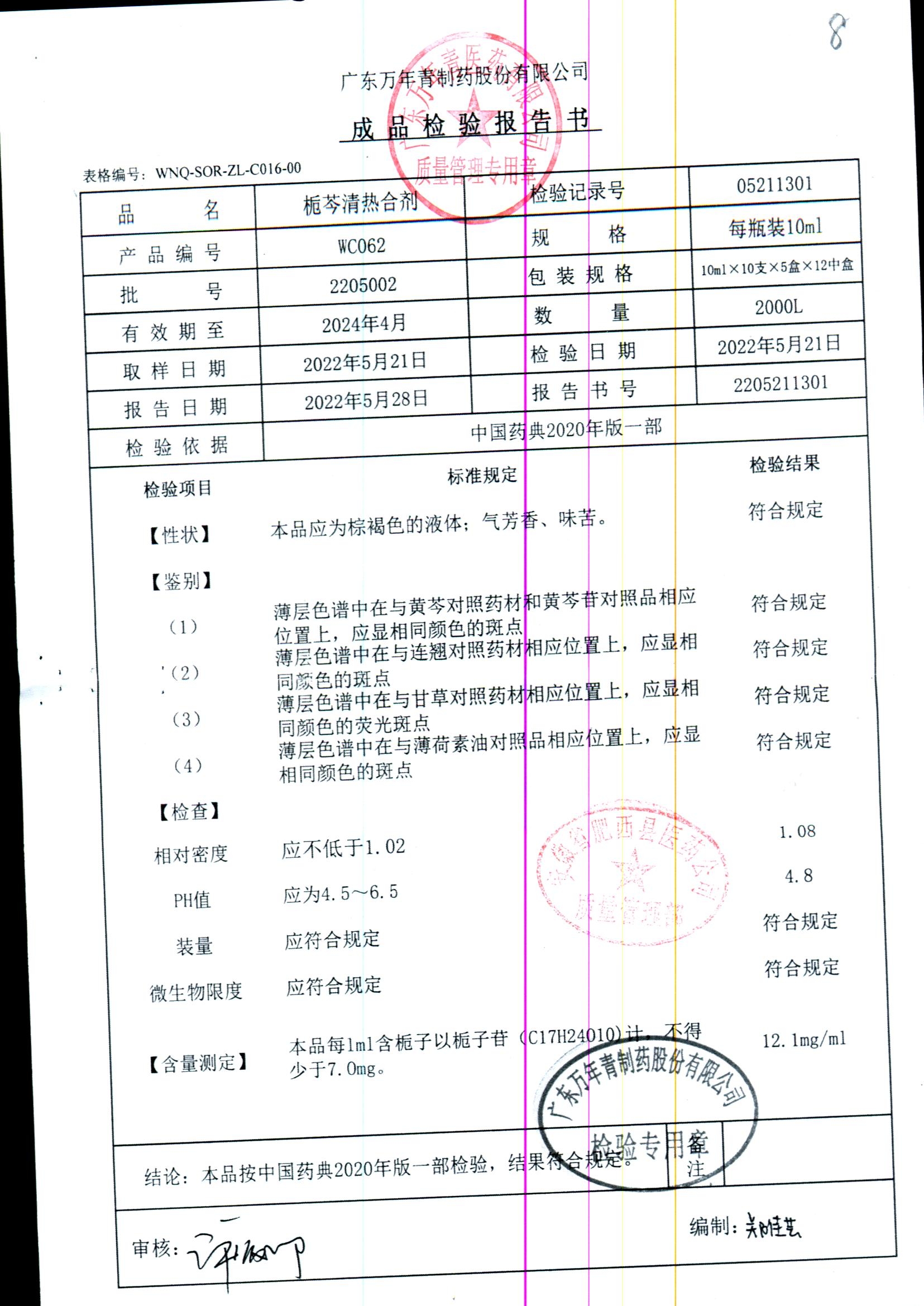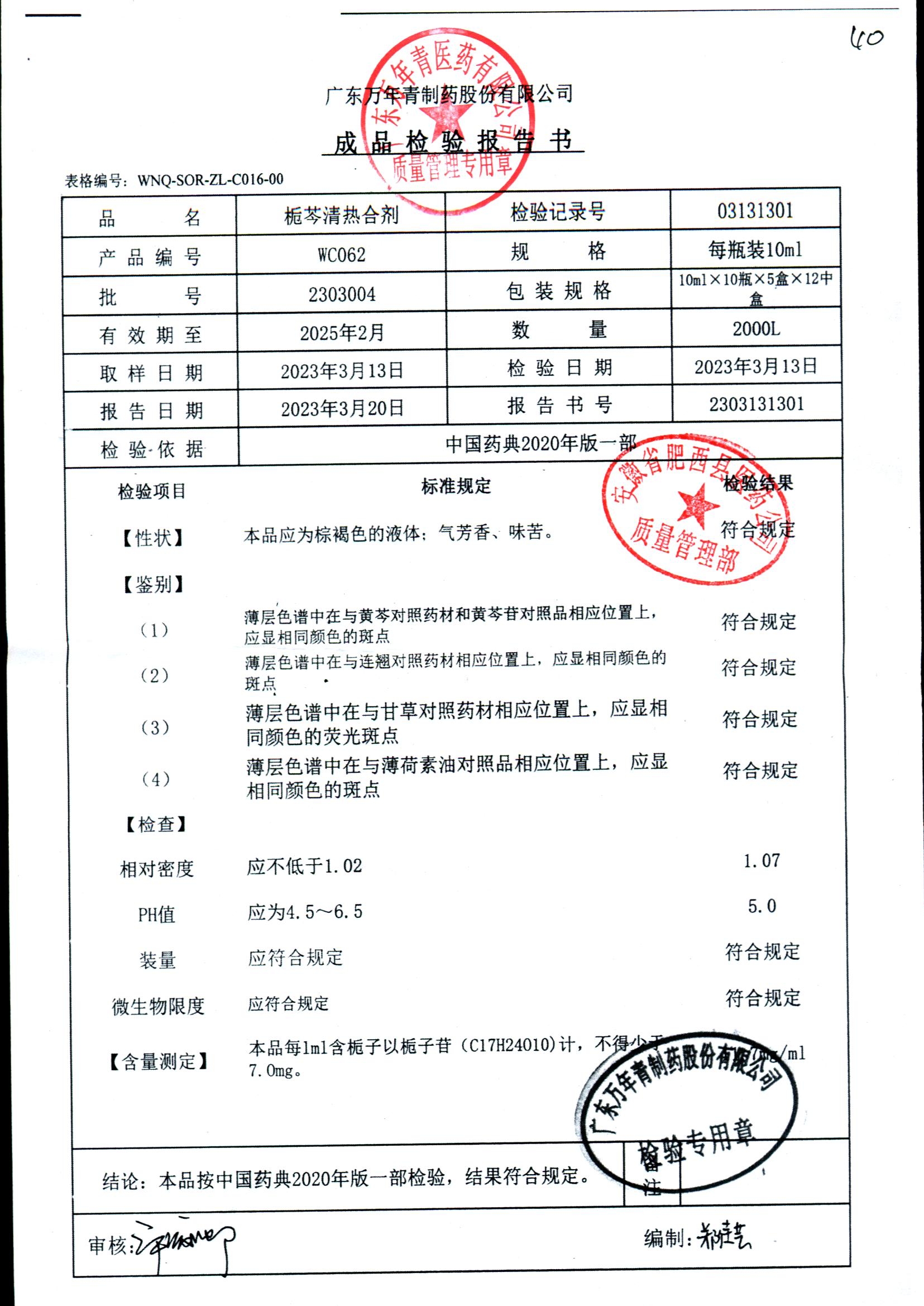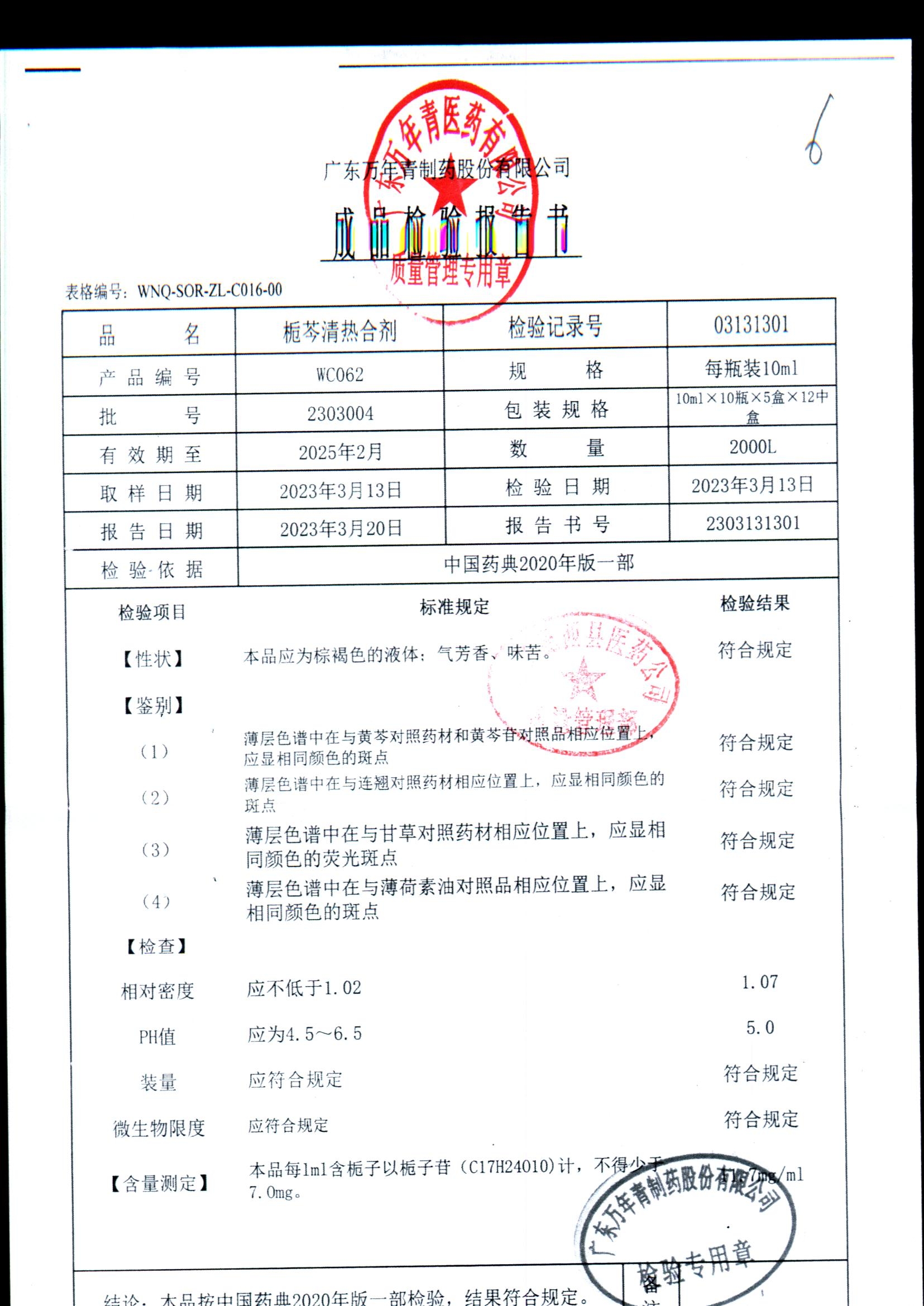 梔芩清熱合劑 | 10ml*10瓶 | 180301 | 查看詳情 |