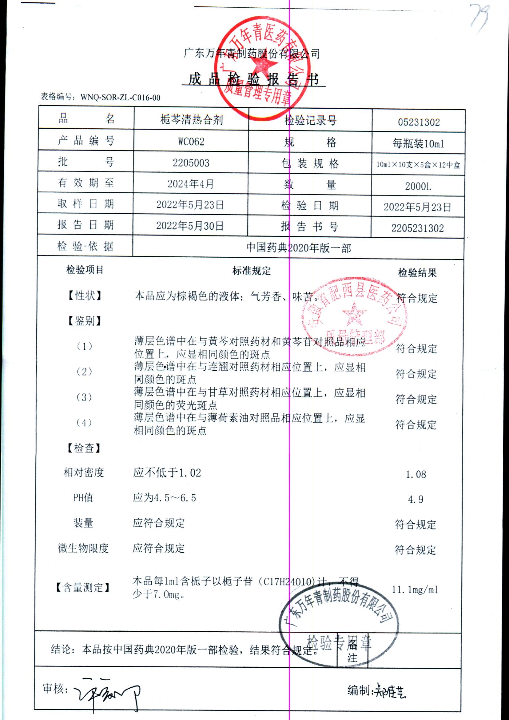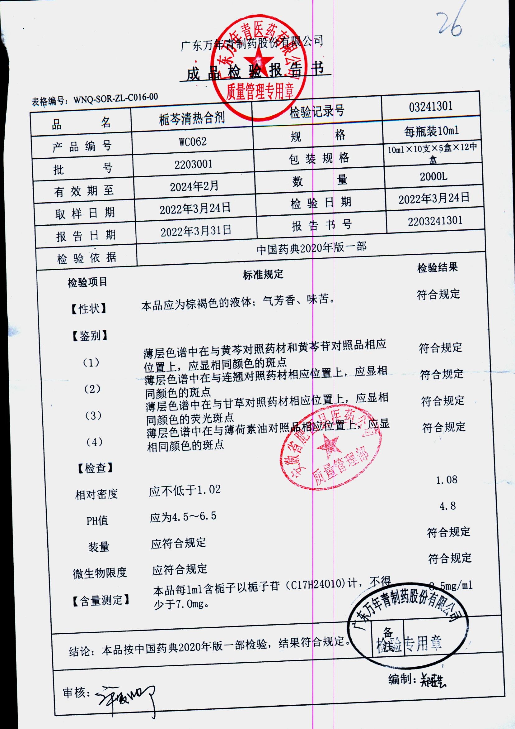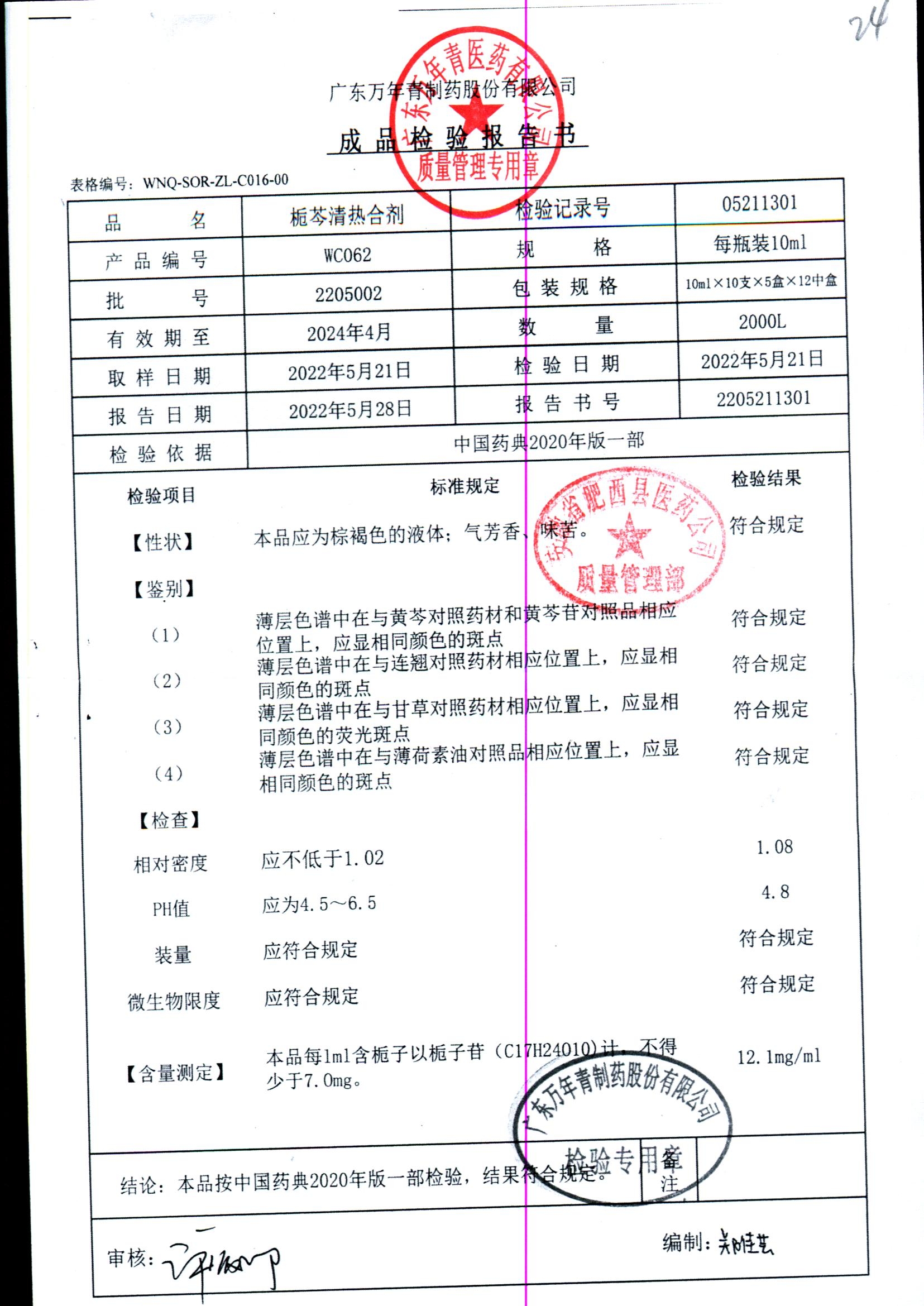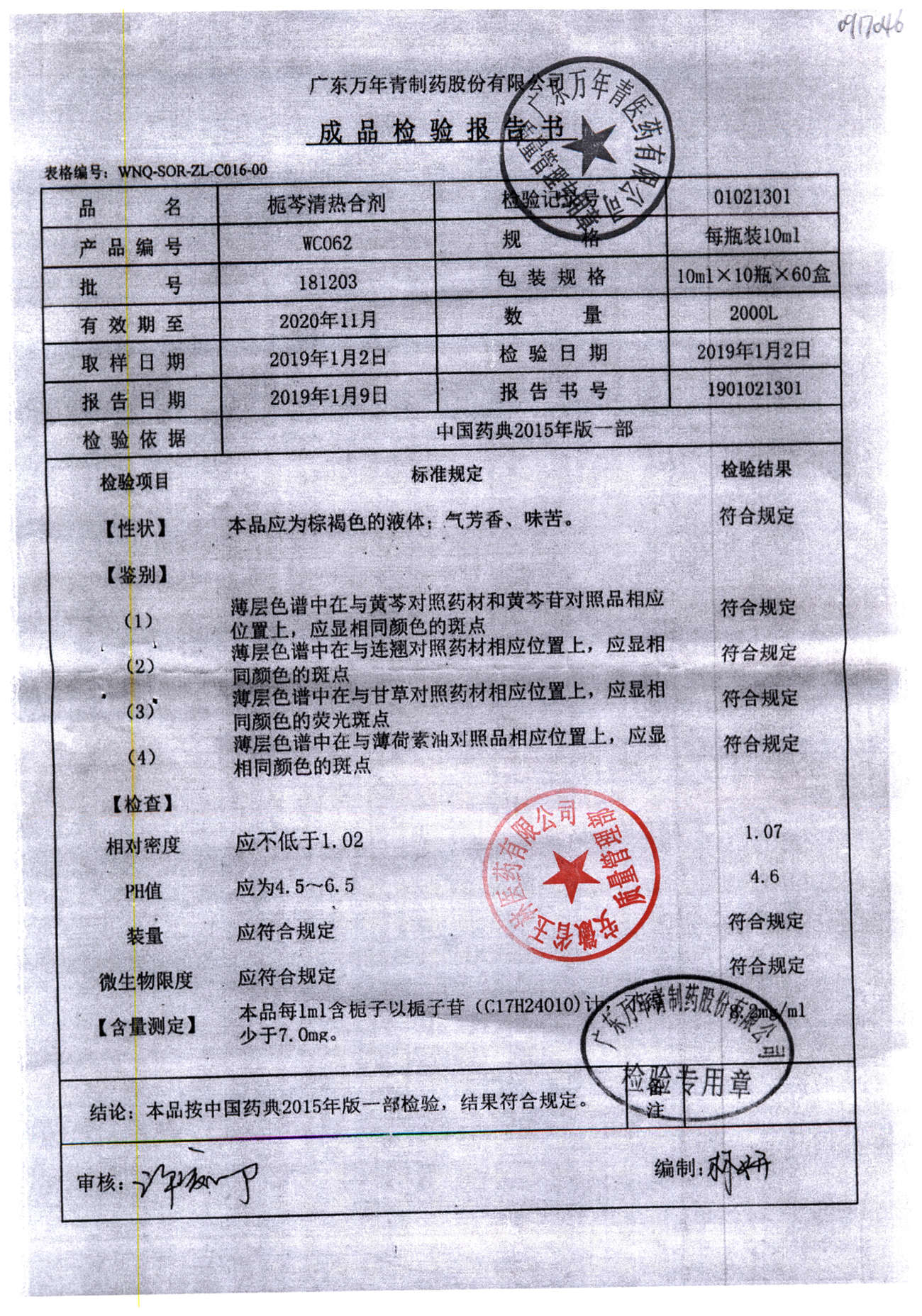 梔芩清熱合劑 | 10ml*10瓶 | 180301 | 查看詳情 |