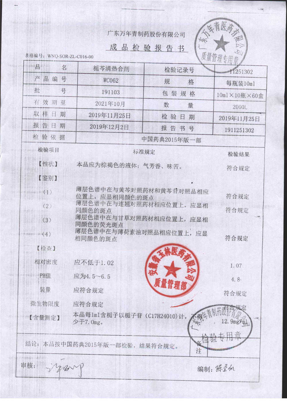 梔芩清熱合劑 | 10ml*10瓶 | 191103 | 查看詳情 |