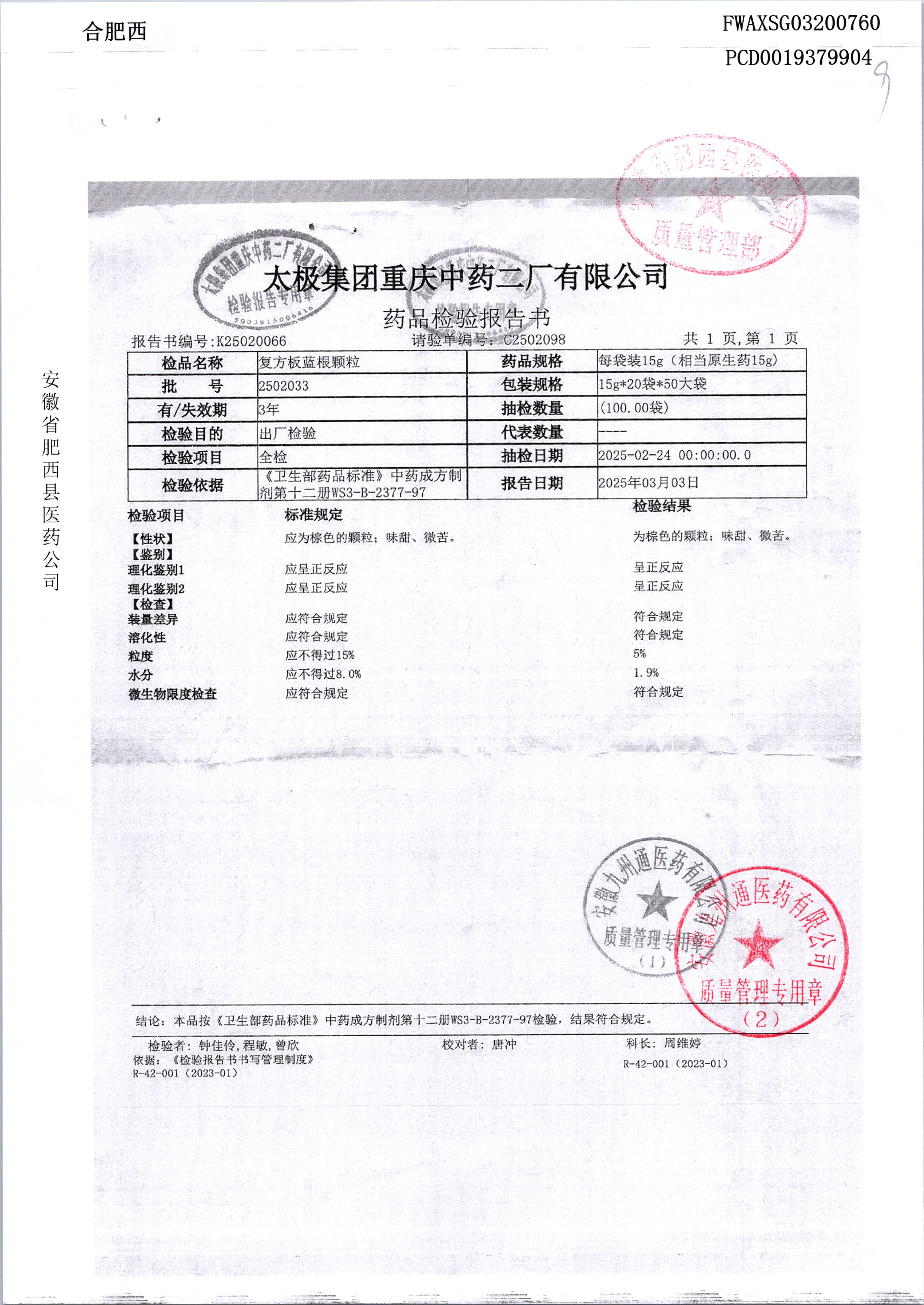 復(fù)方板藍(lán)根顆粒 | 15*20 | 2502033 | 查看詳情 |