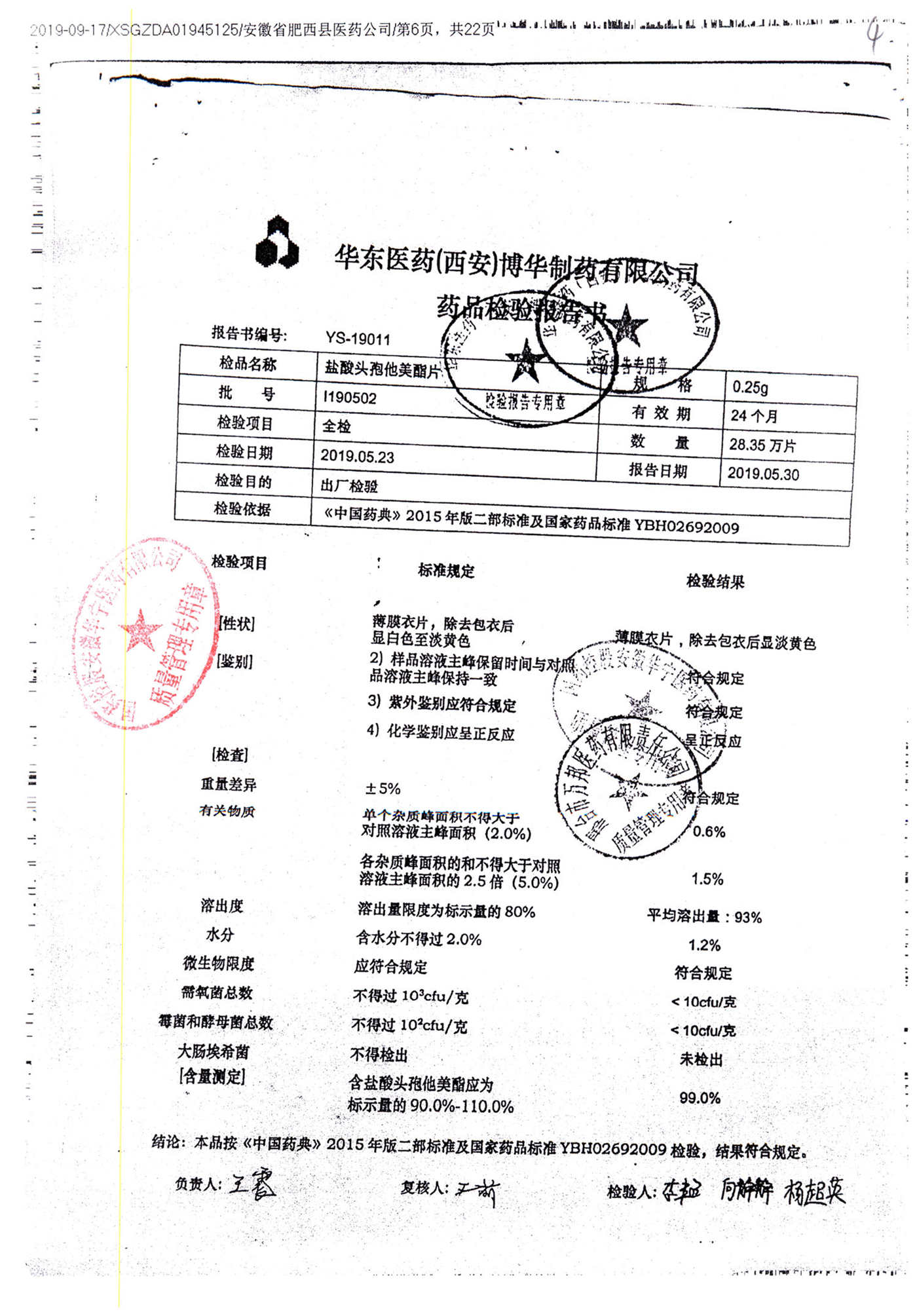 鹽酸頭孢他美酯片 | 0.25g | l190304 | 查看詳情 |