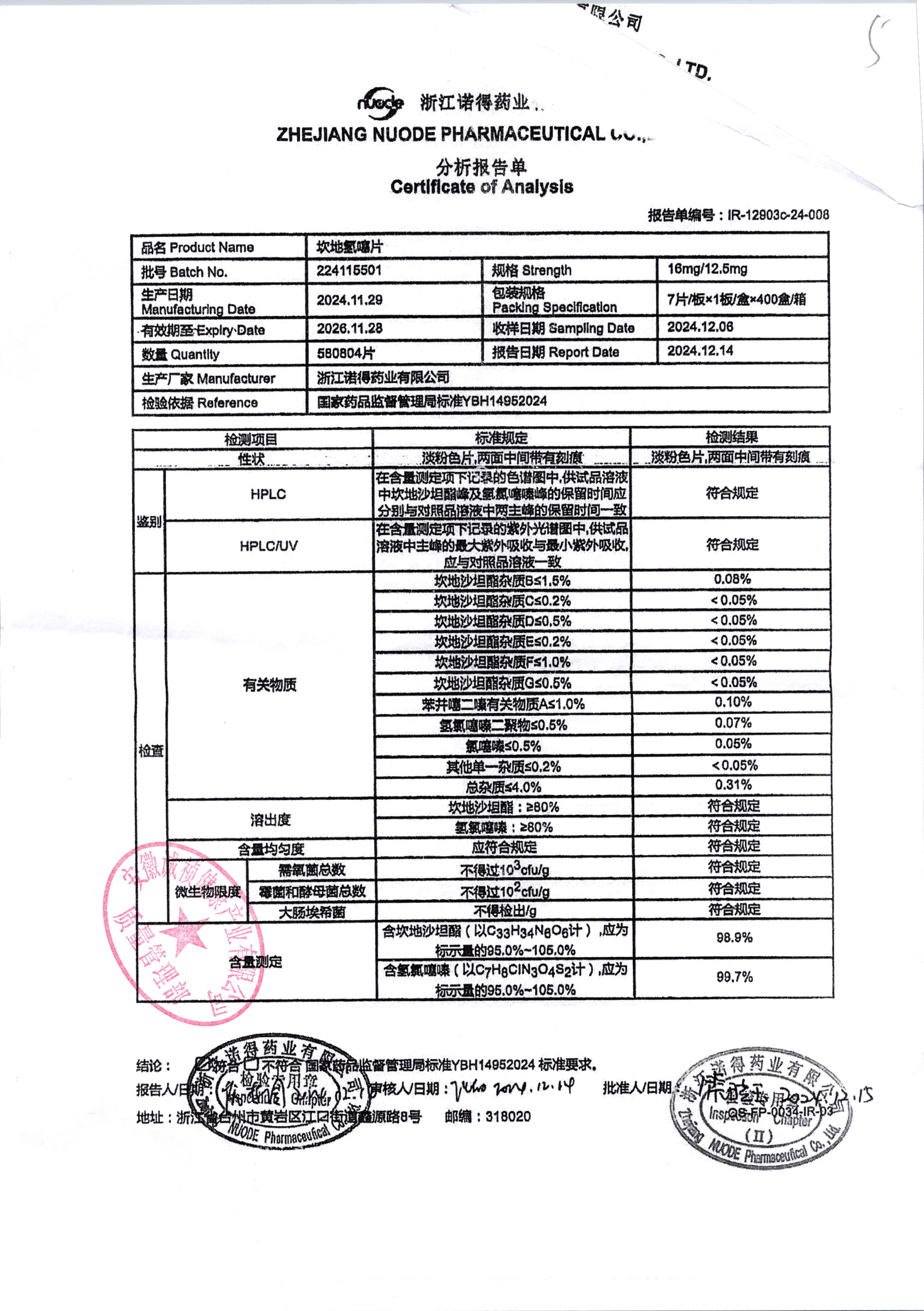 坎地氫噻片 | 16mg*12.5mg | 224115501 | 查看詳情 |
