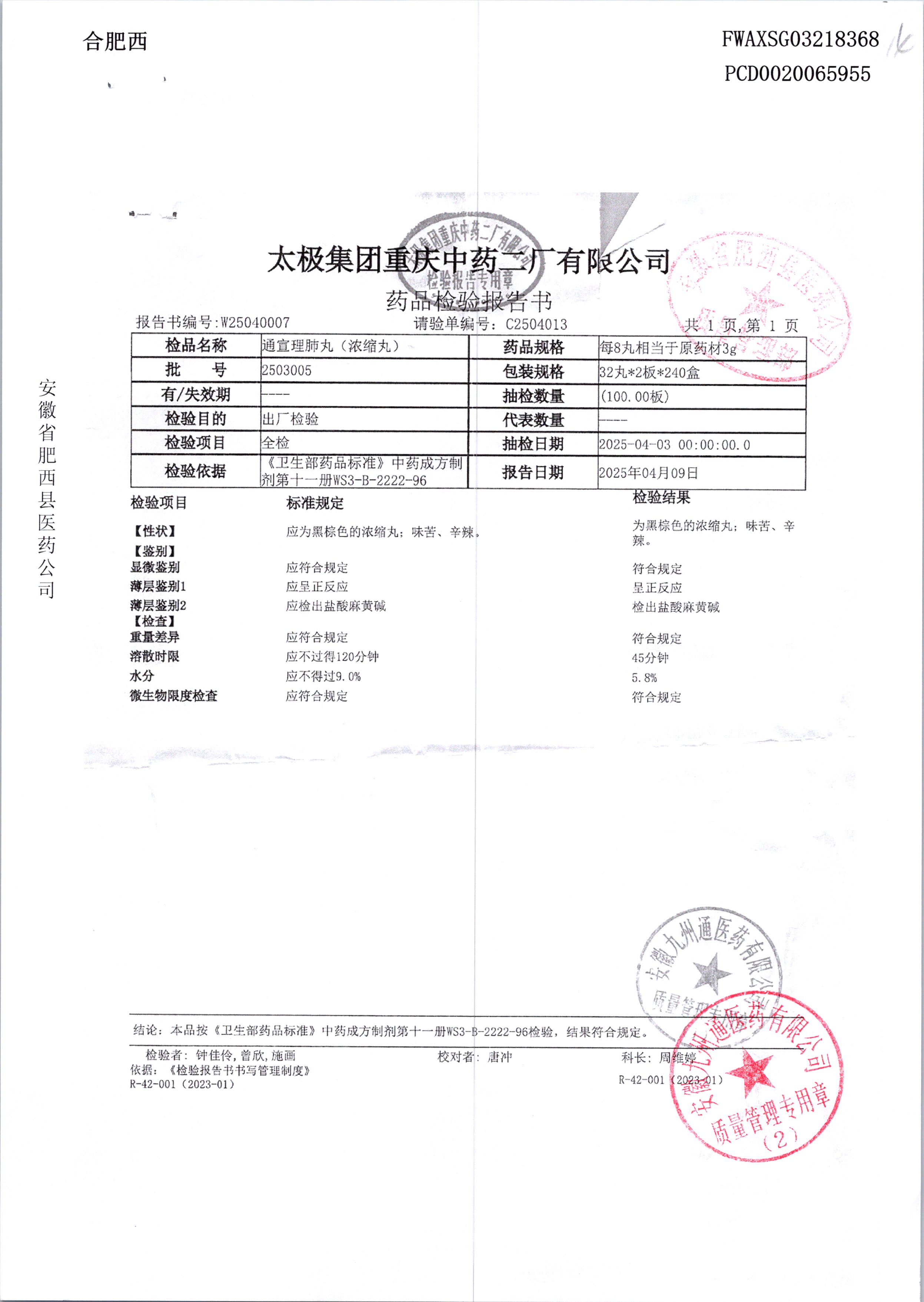 名稱 | 規(guī)格 | 批號 | 藥檢報告 |