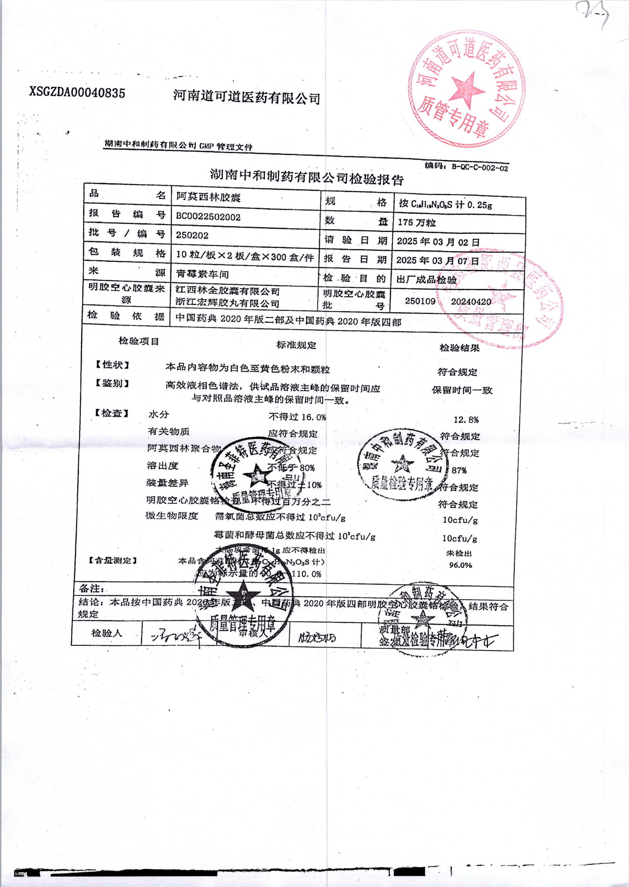 阿莫西林膠囊 | 0.25g*20s | 250202 | 查看詳情 |