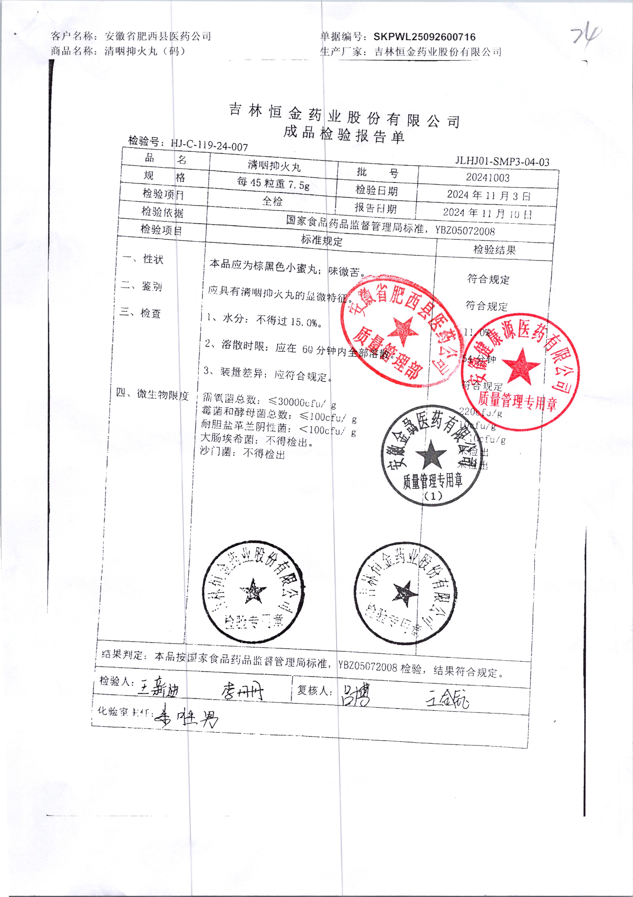 清咽抑火丸 | 45粒 | 20241003 | 查看詳情 |