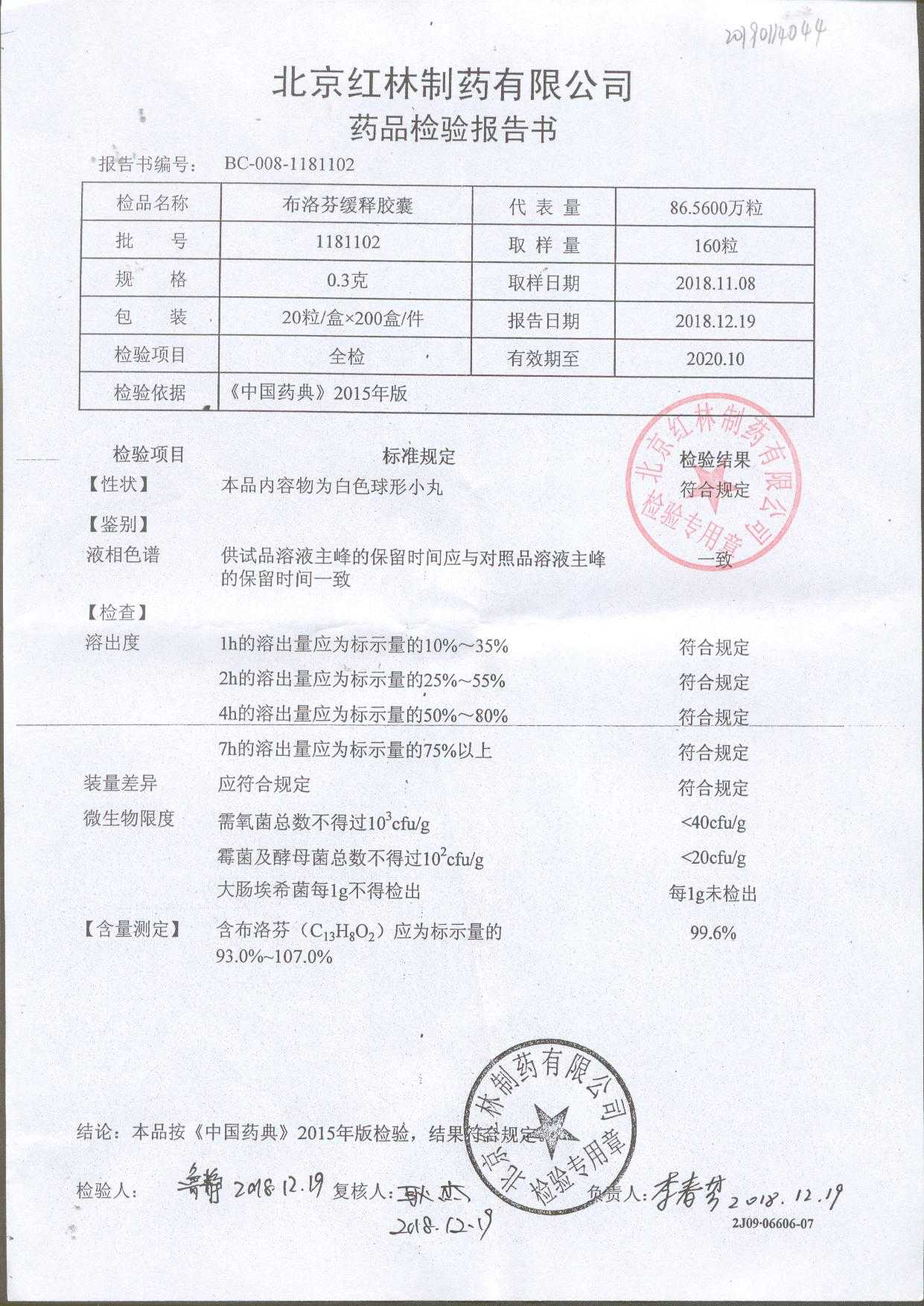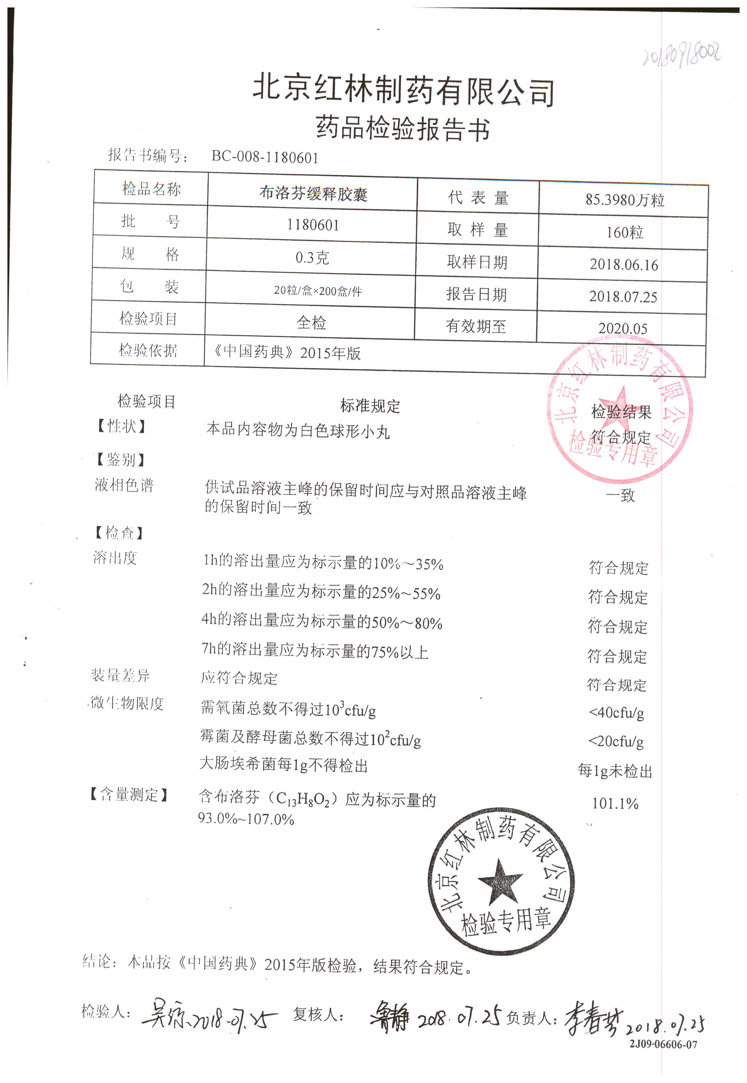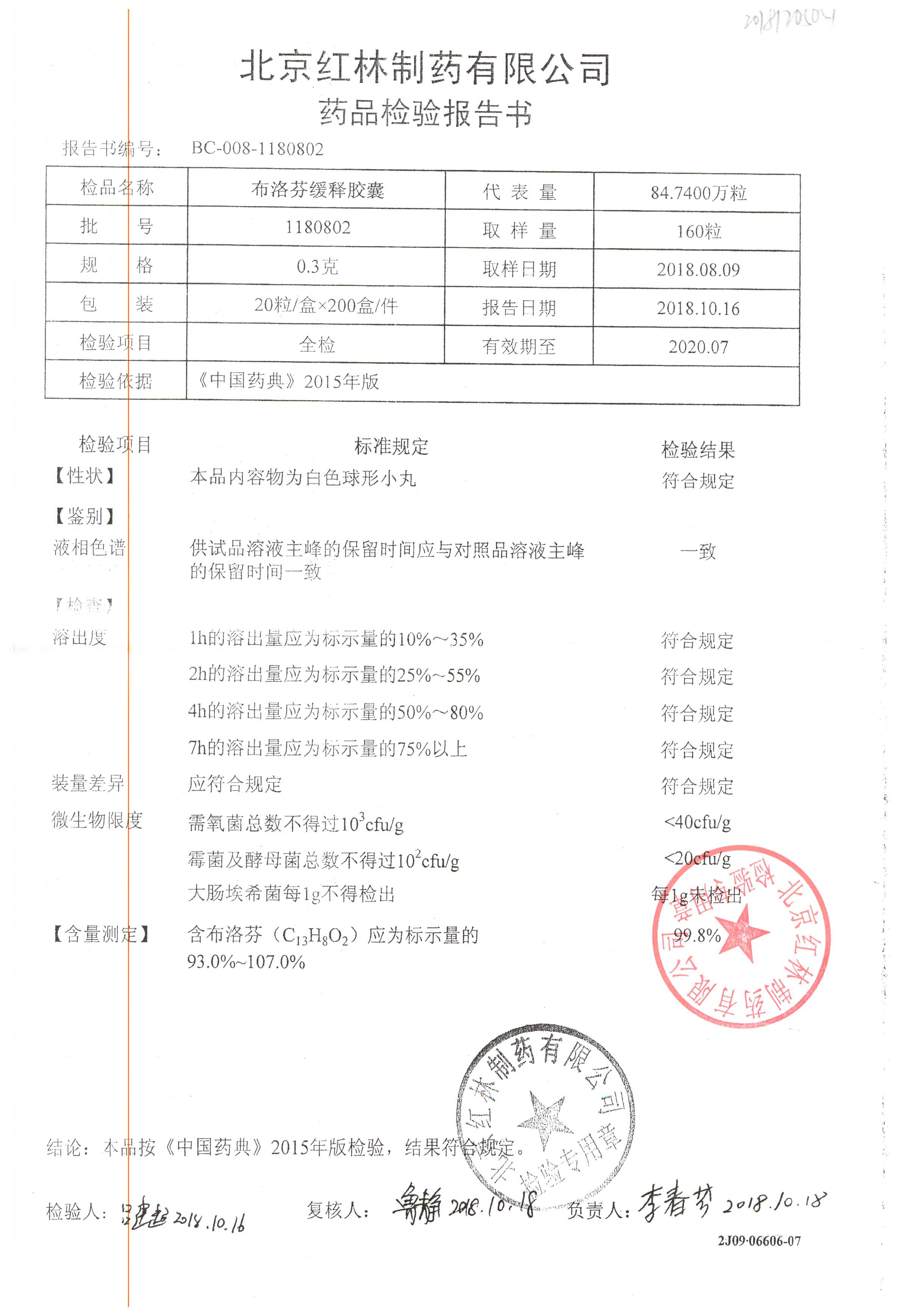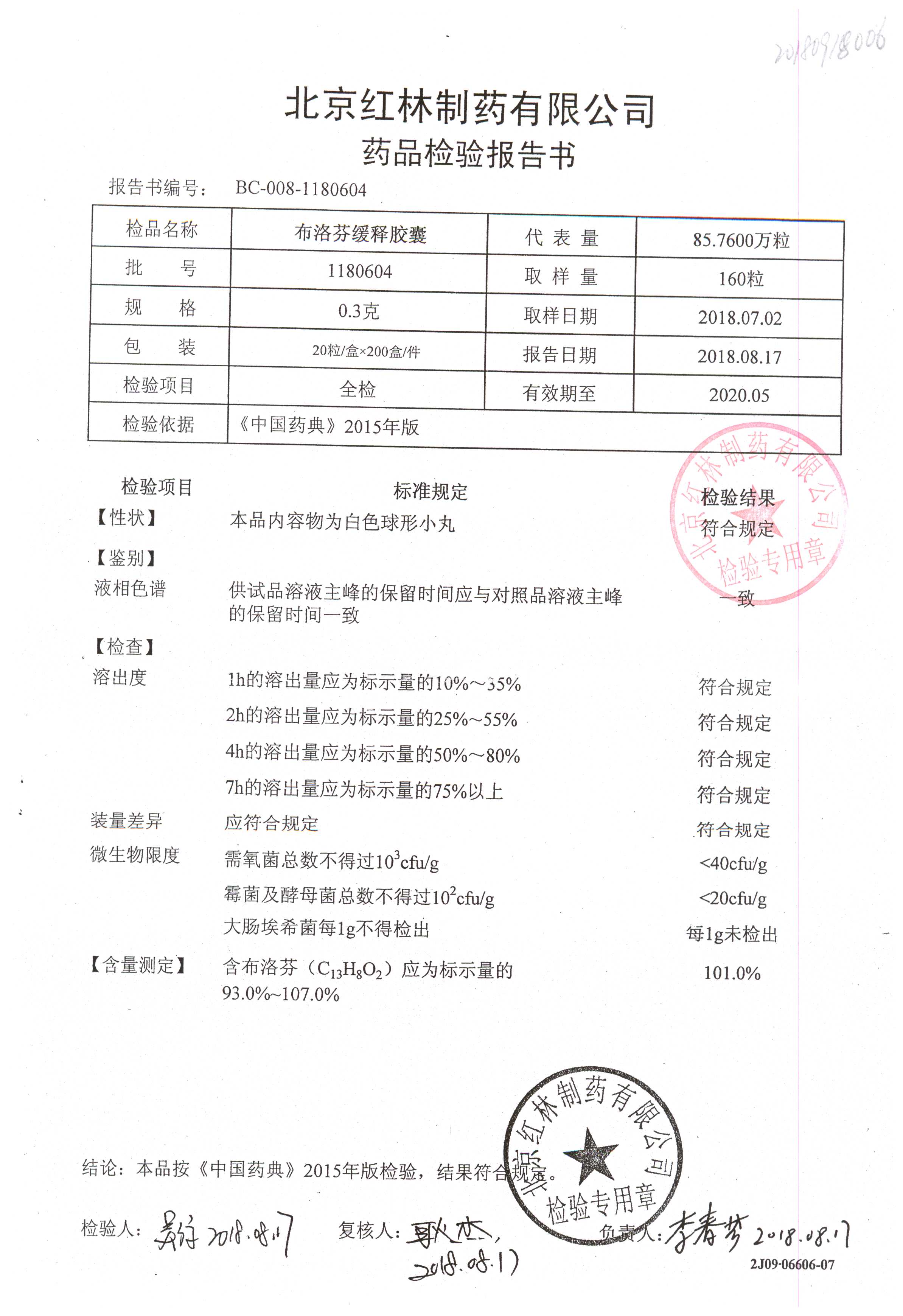 布洛芬緩釋膠囊 | 0.3g*20粒 | 1180601(2/2) | 查看詳情 |