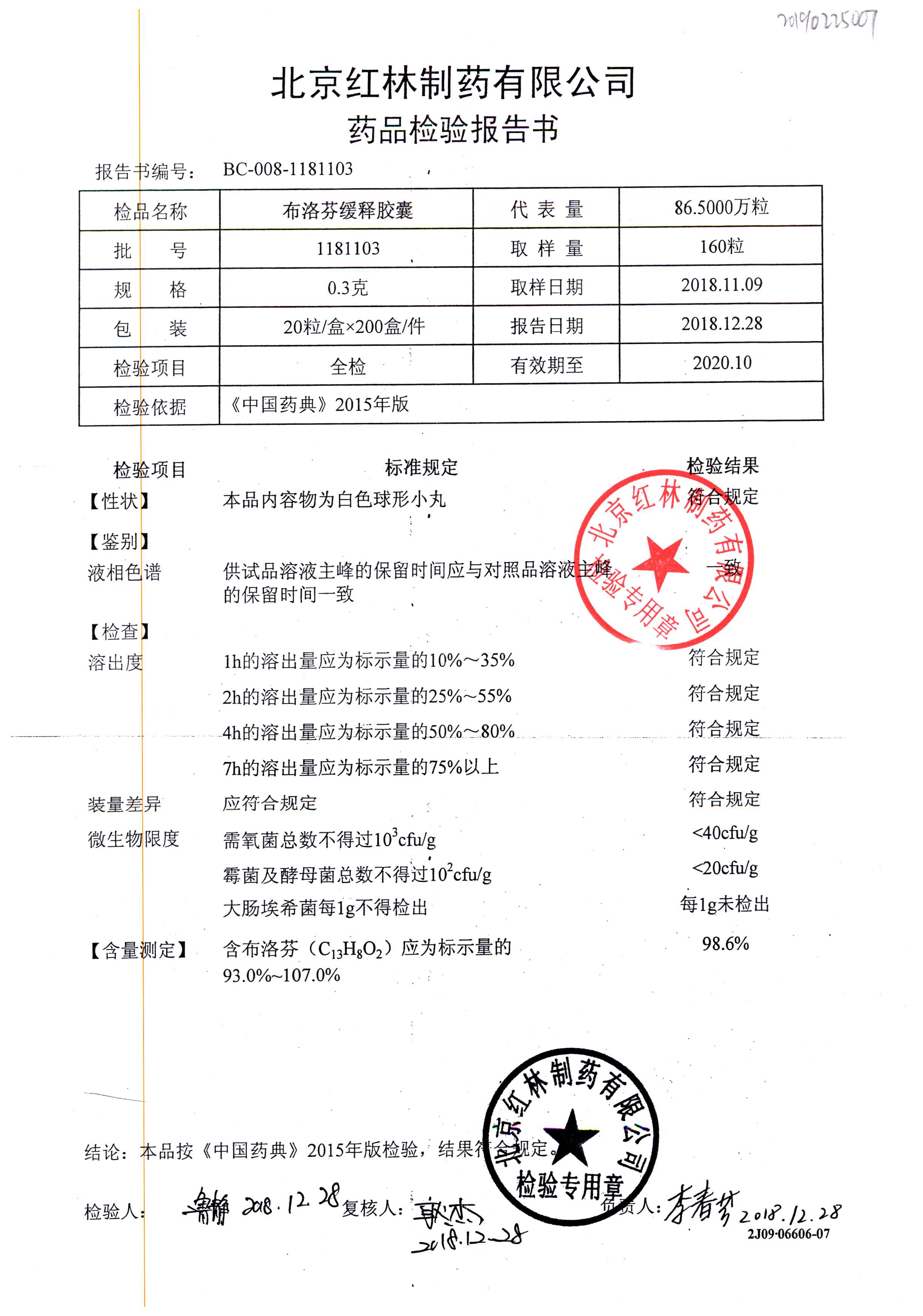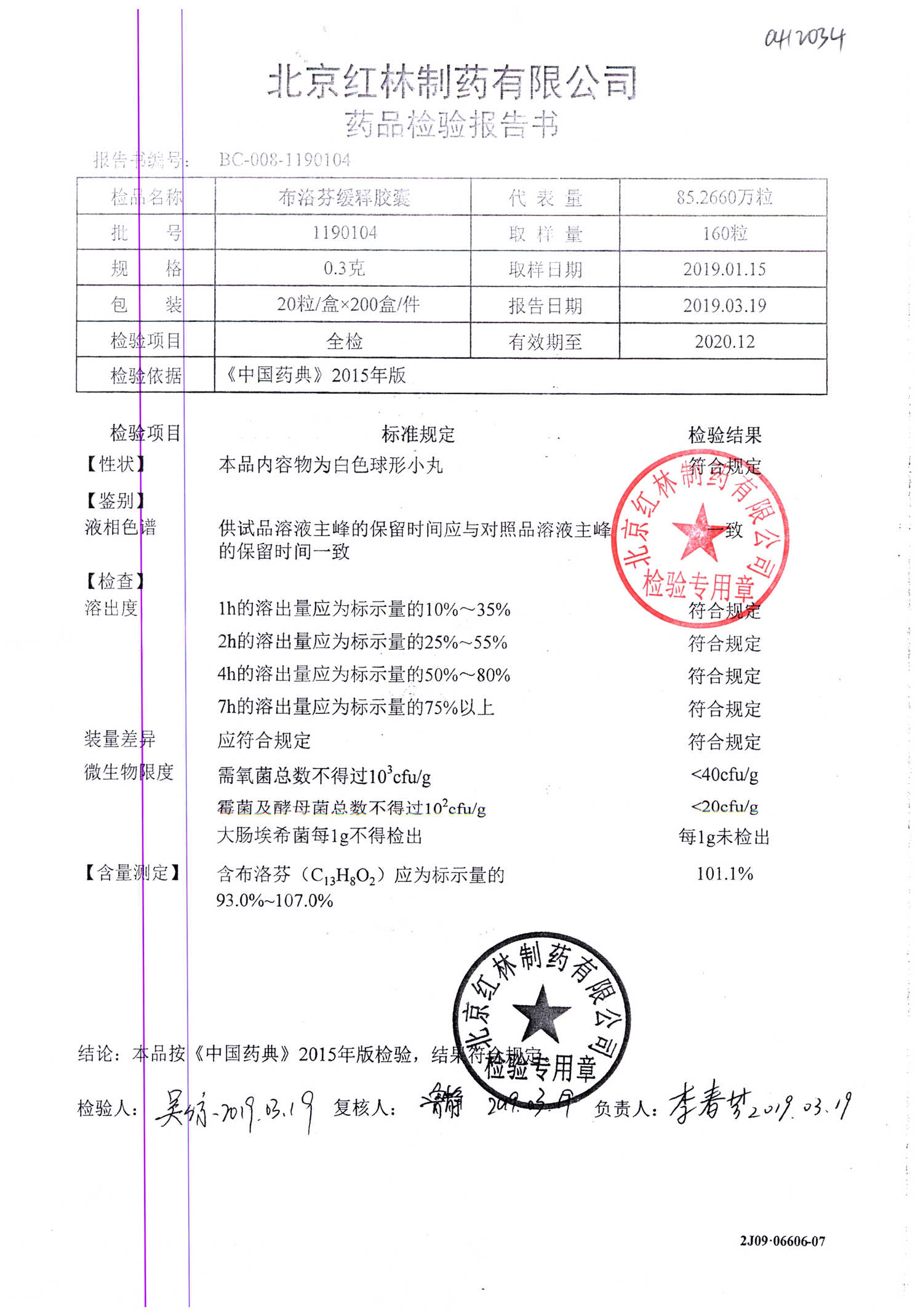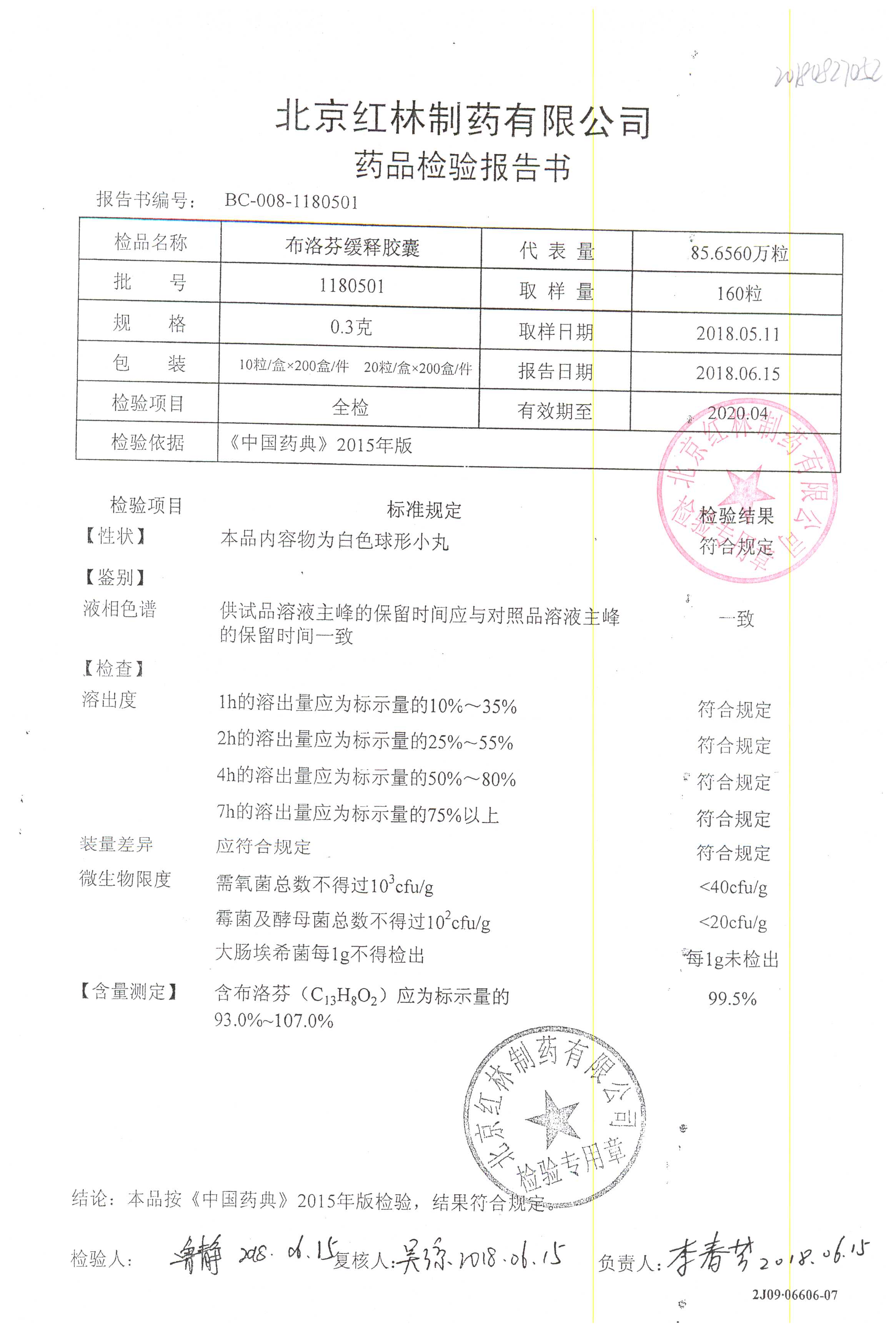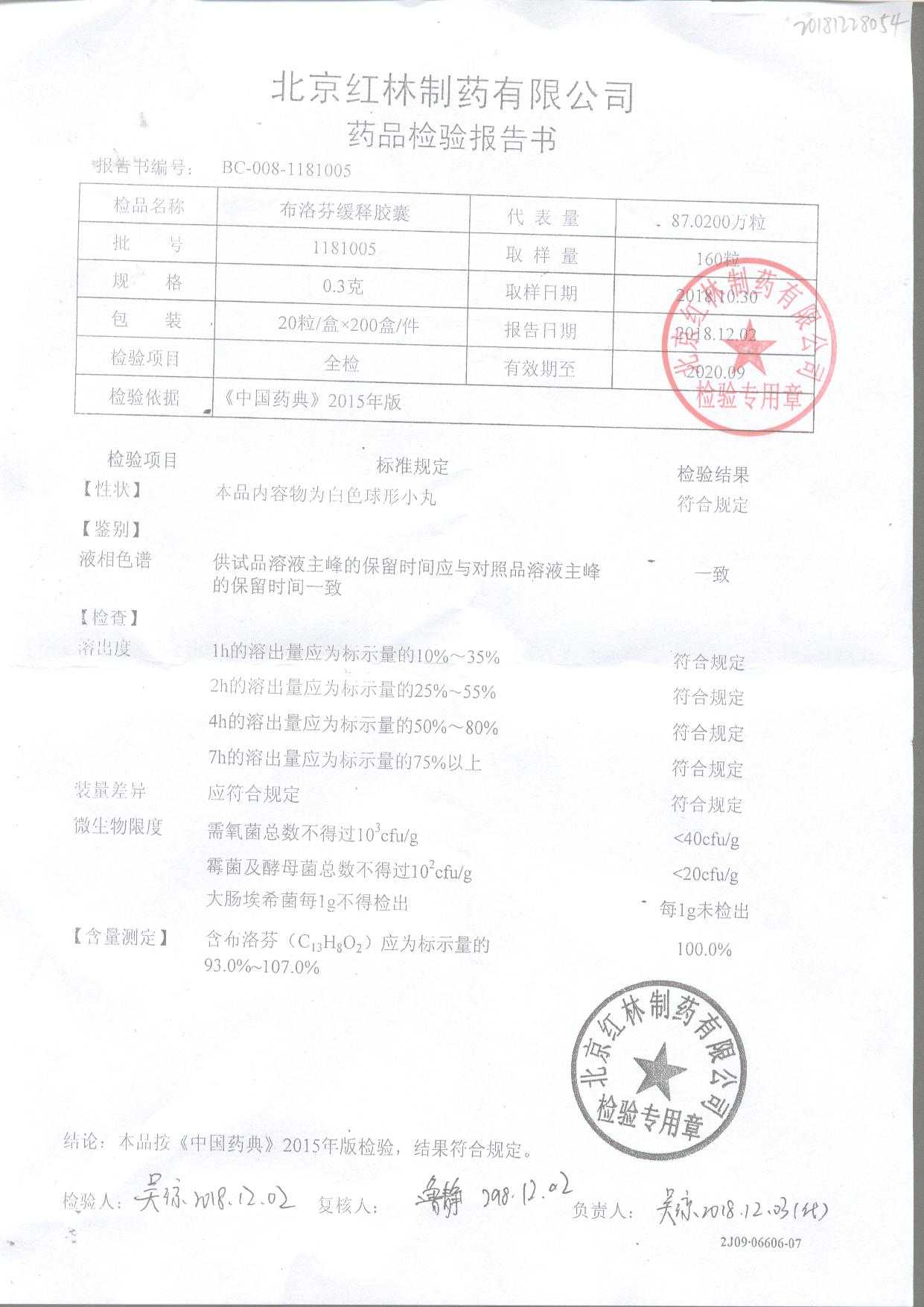 布洛芬緩釋膠囊 | 0.3g*20粒 | 1180601(2/2) | 查看詳情 |