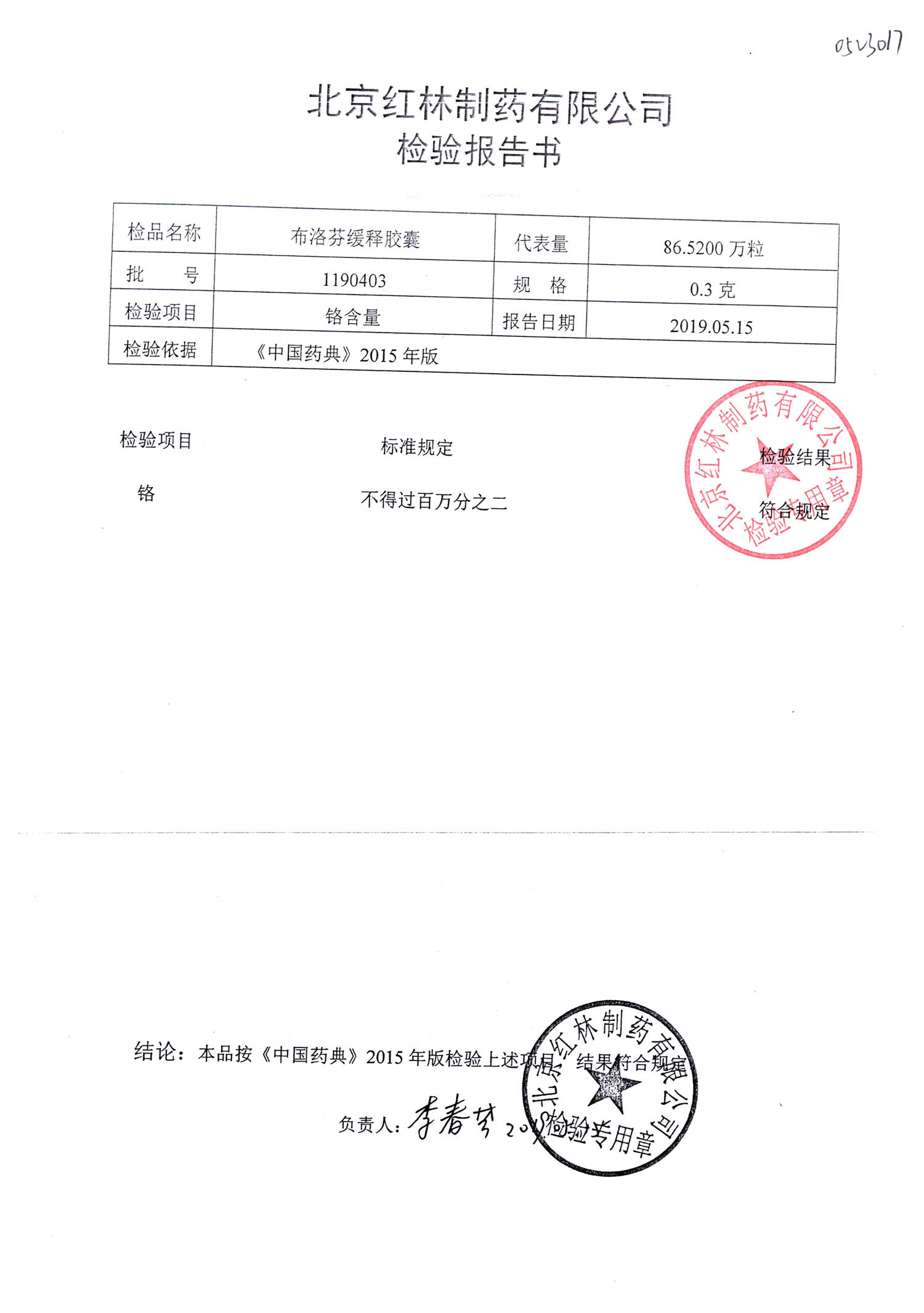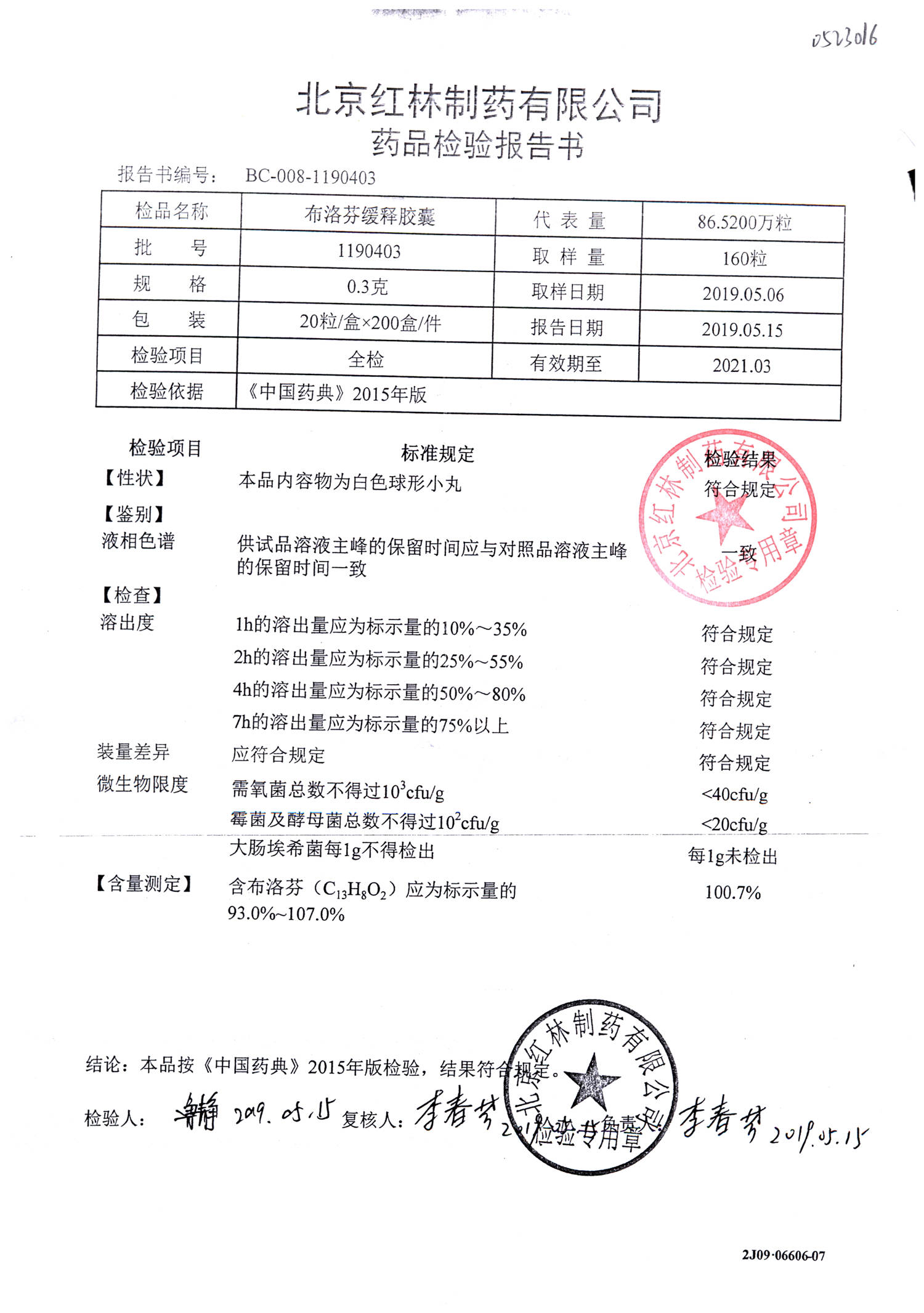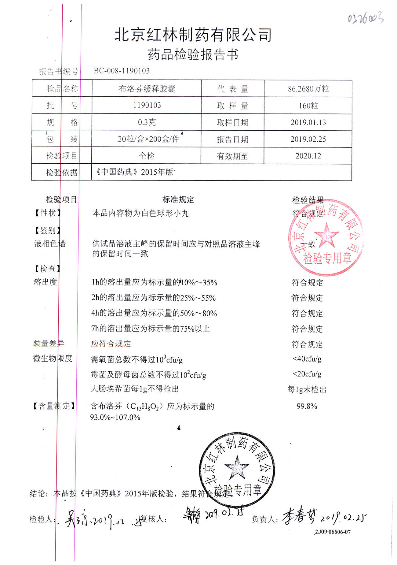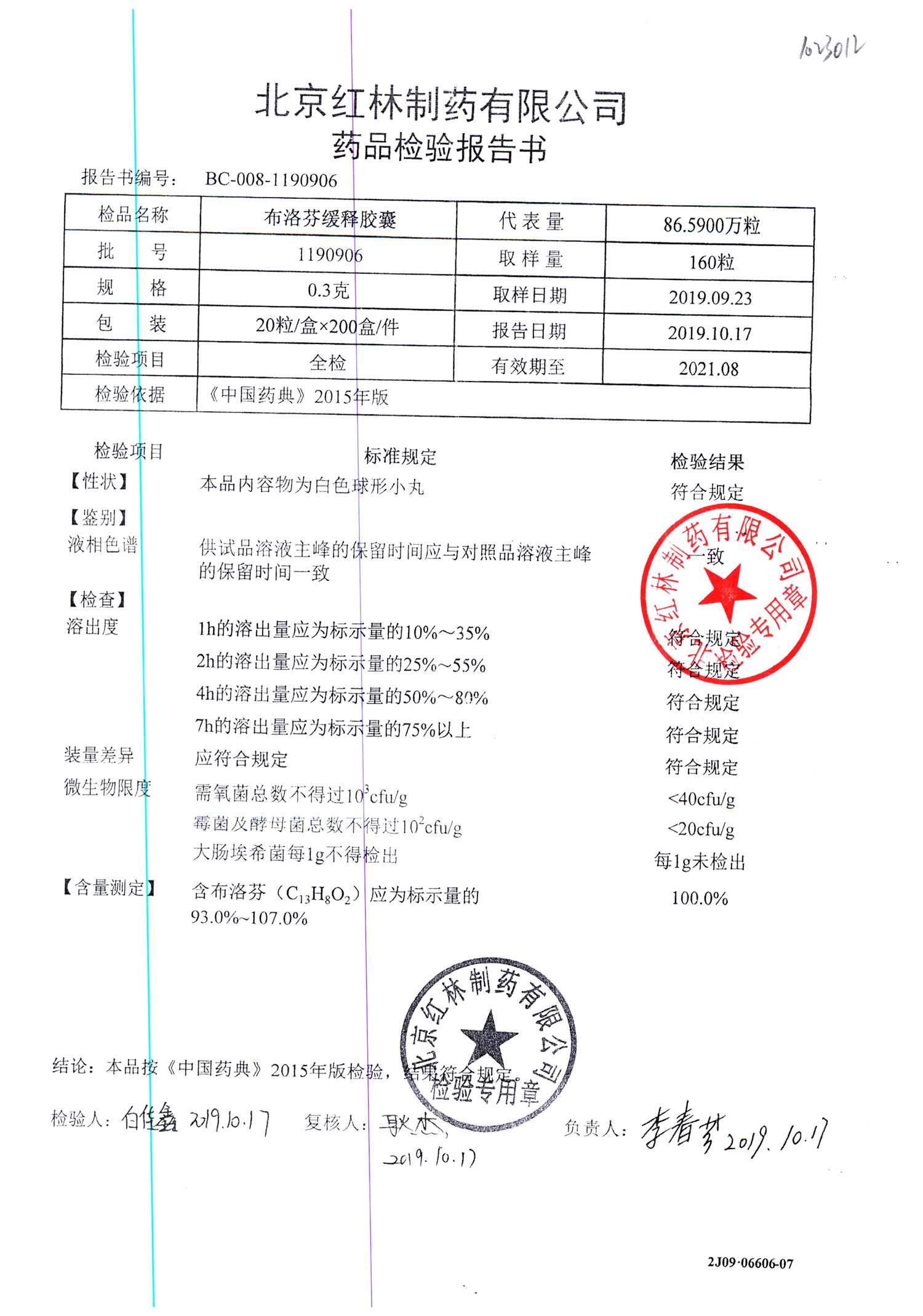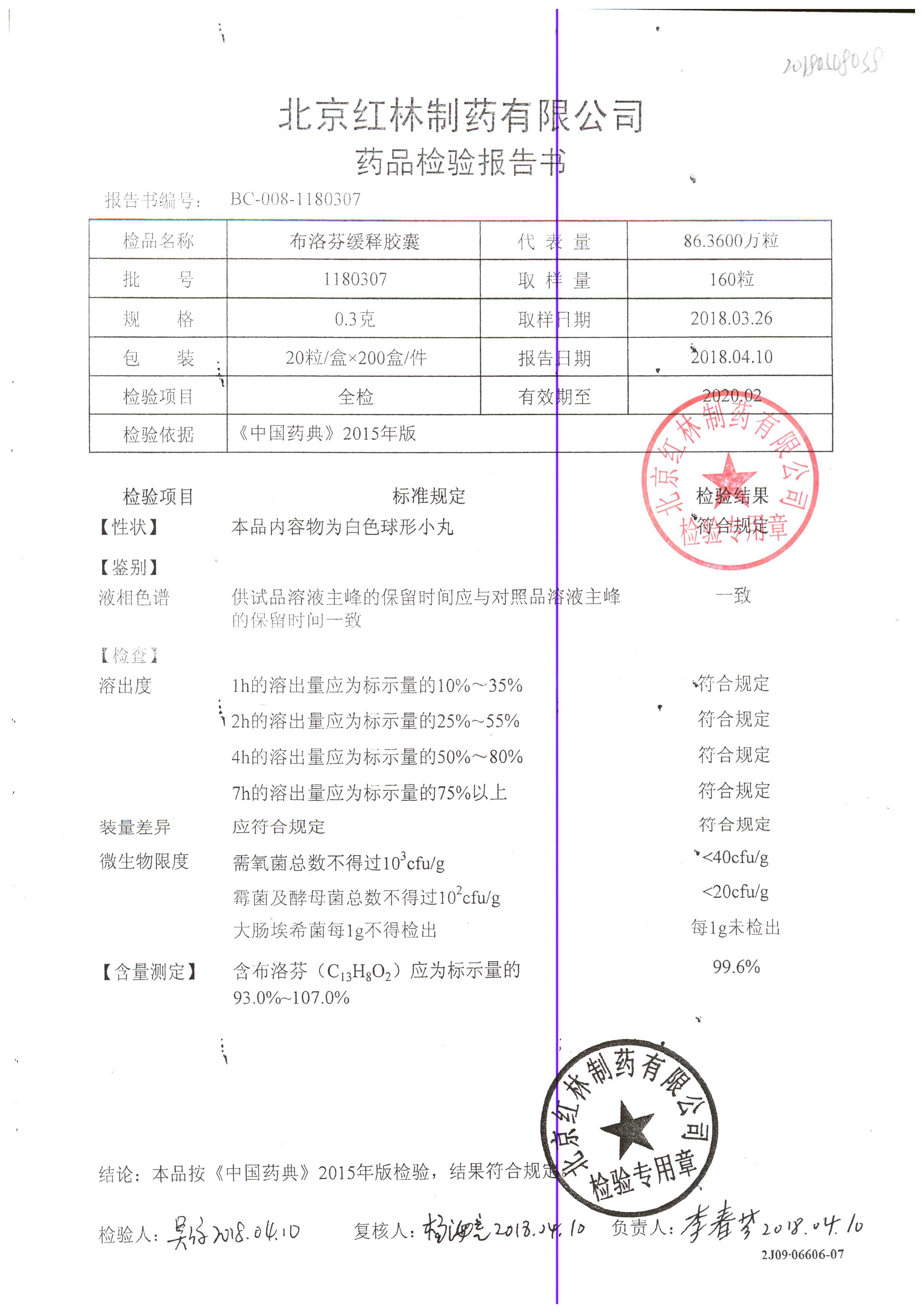 布洛芬緩釋膠囊 | 0.3g*20粒 | 1180601(2/2) | 查看詳情 |