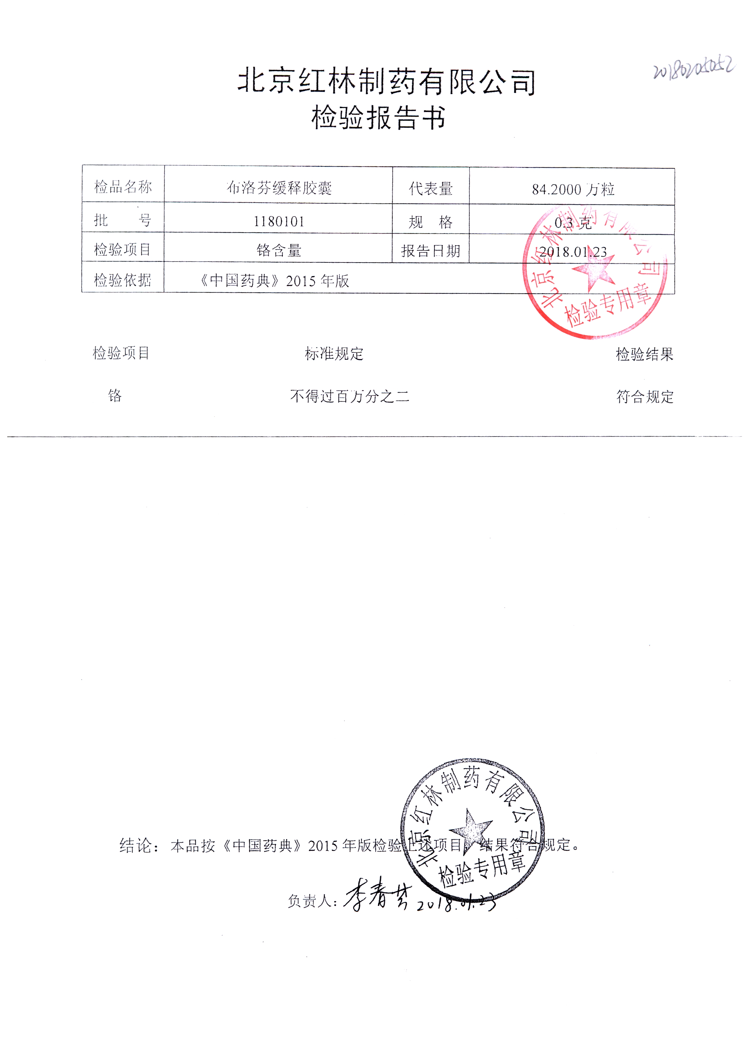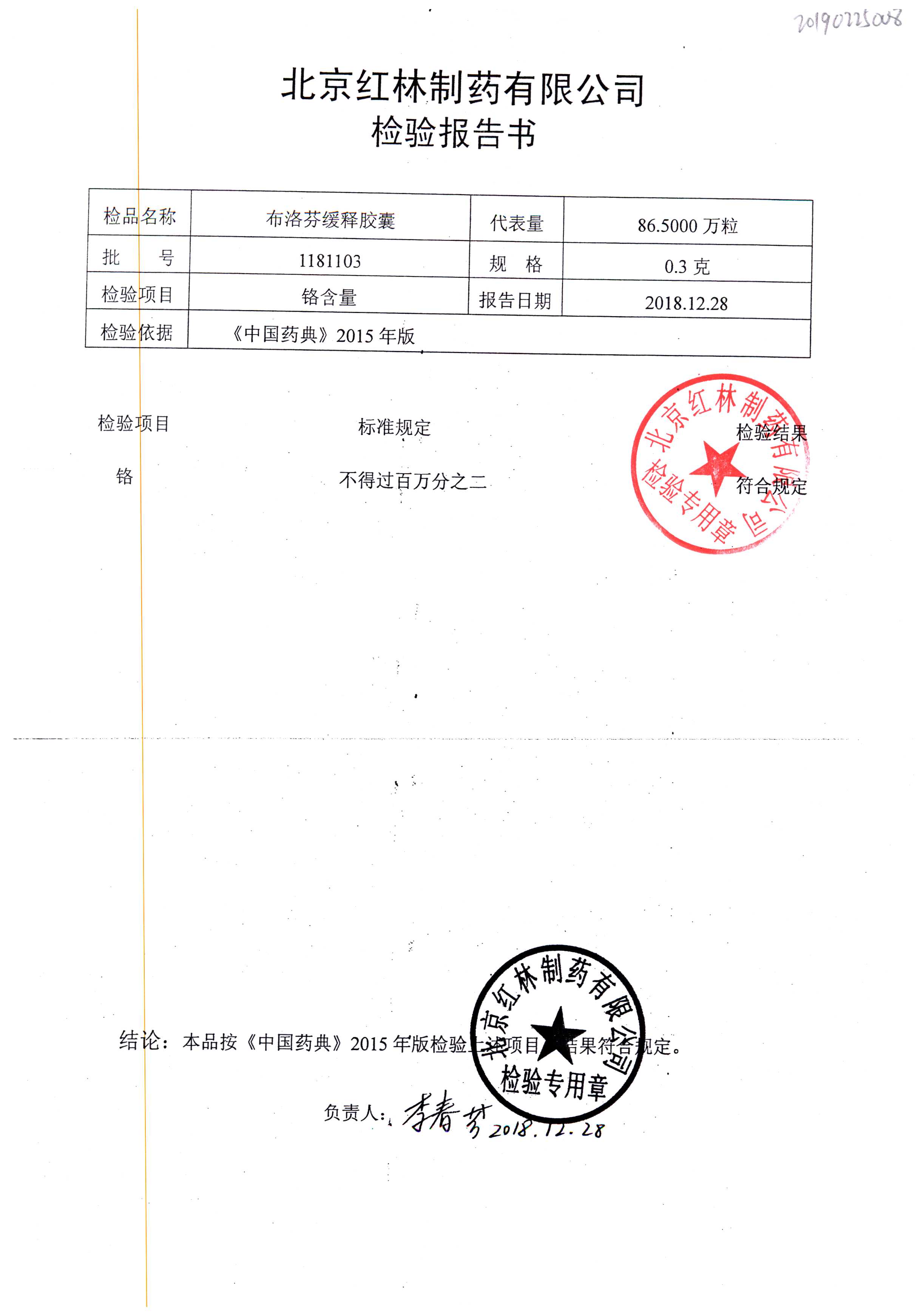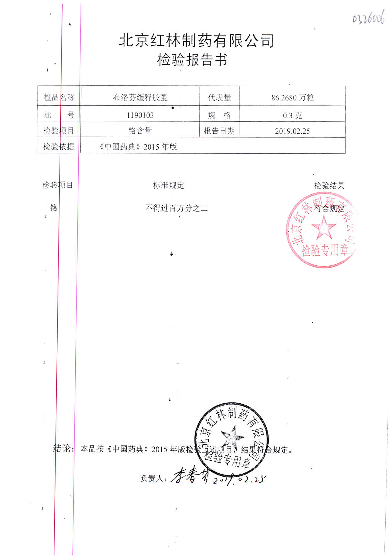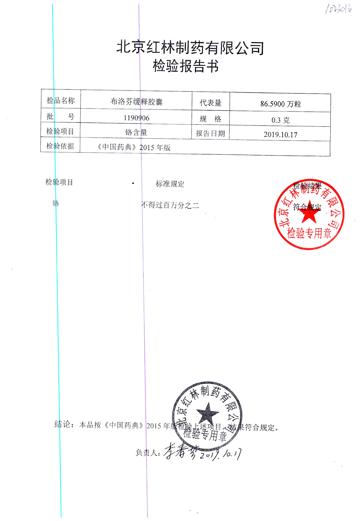 布洛芬緩釋膠囊 | 0.3g*20粒 | 1180601(2/2) | 查看詳情 |