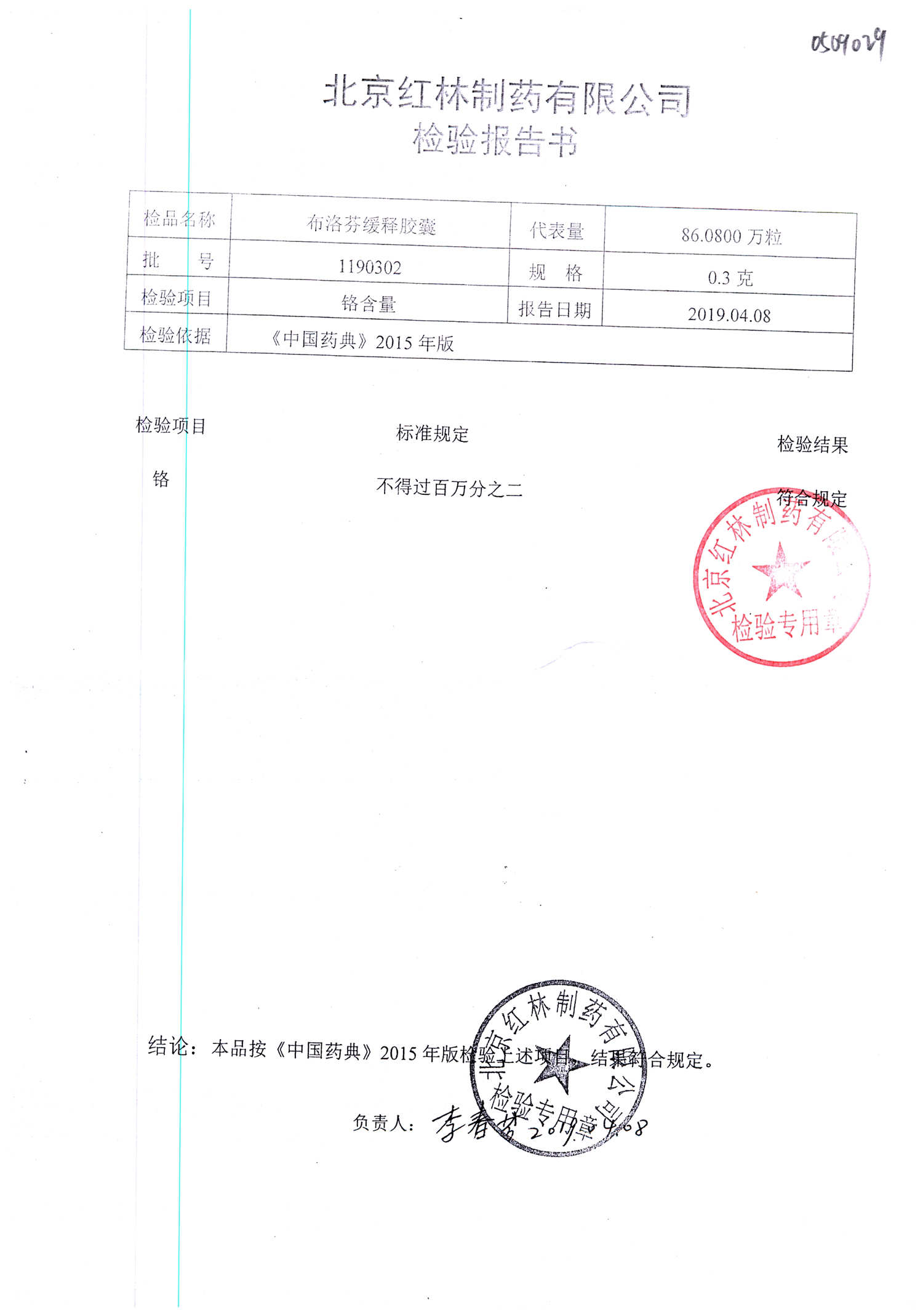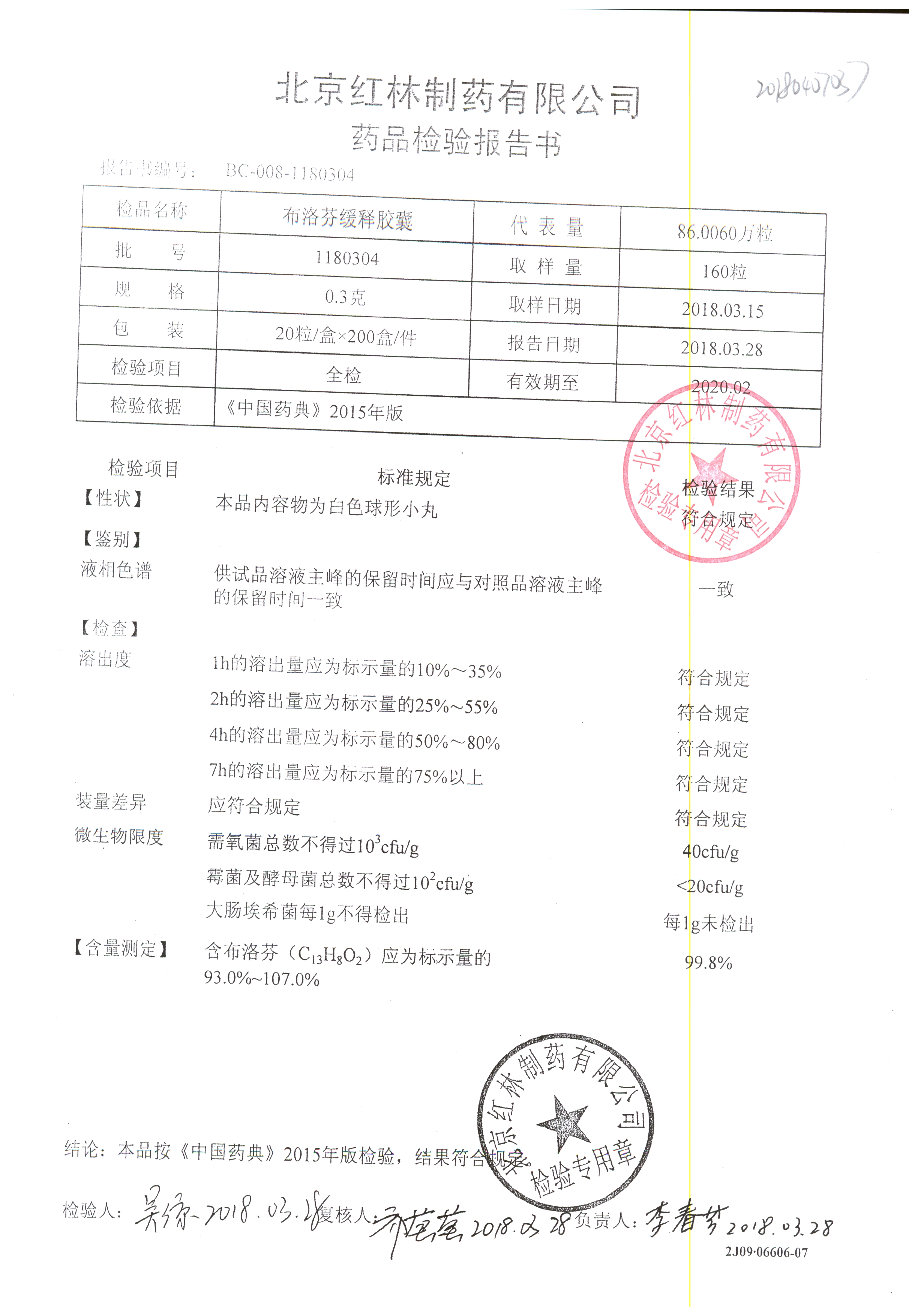 布洛芬緩釋膠囊 | 0.3g*20粒 | 1180604(2/2) | 查看詳情 |