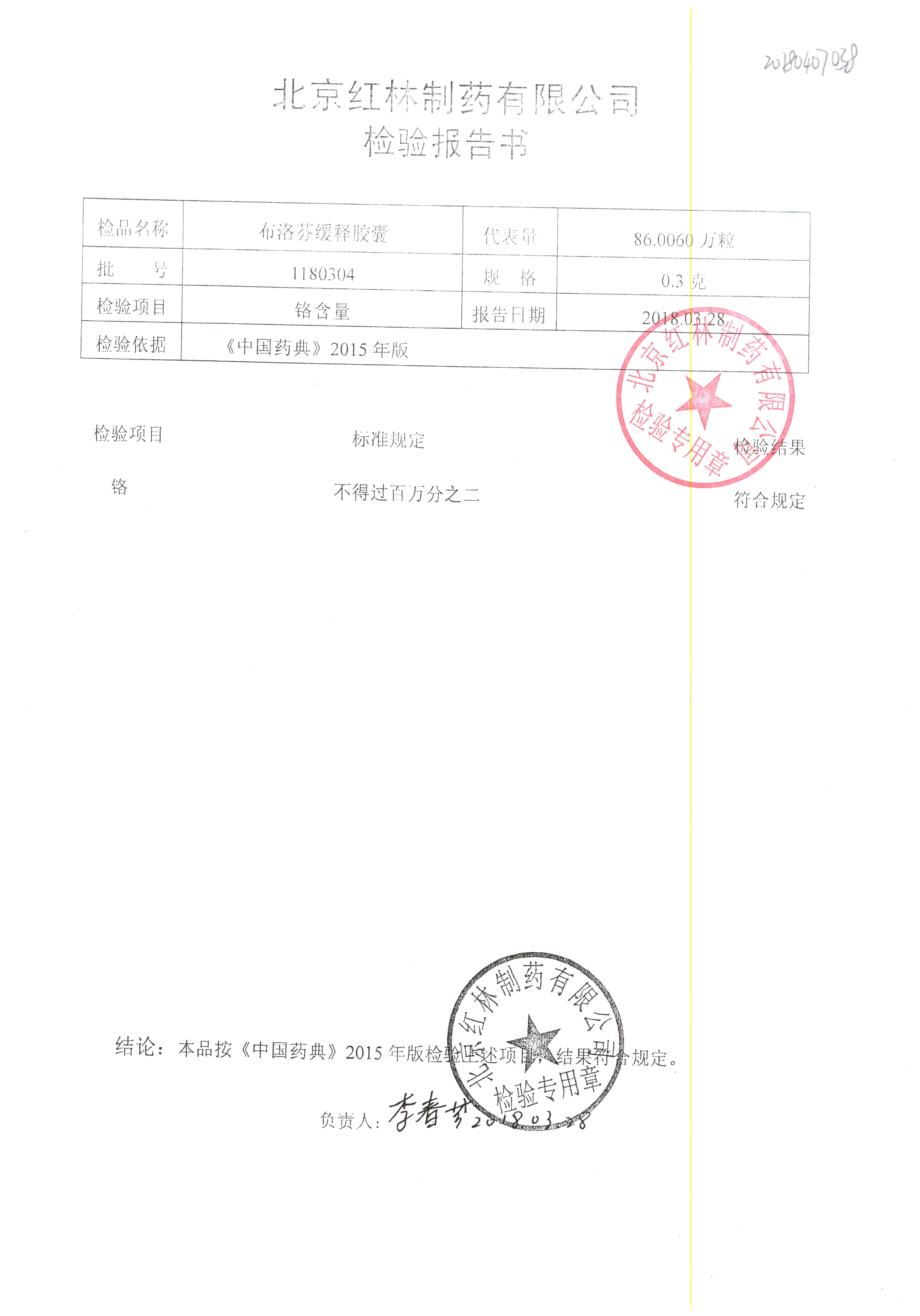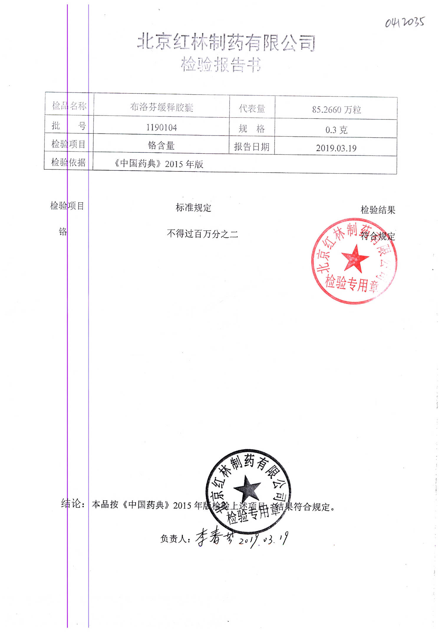 名稱 | 規(guī)格 | 批號 | 藥檢報告 |