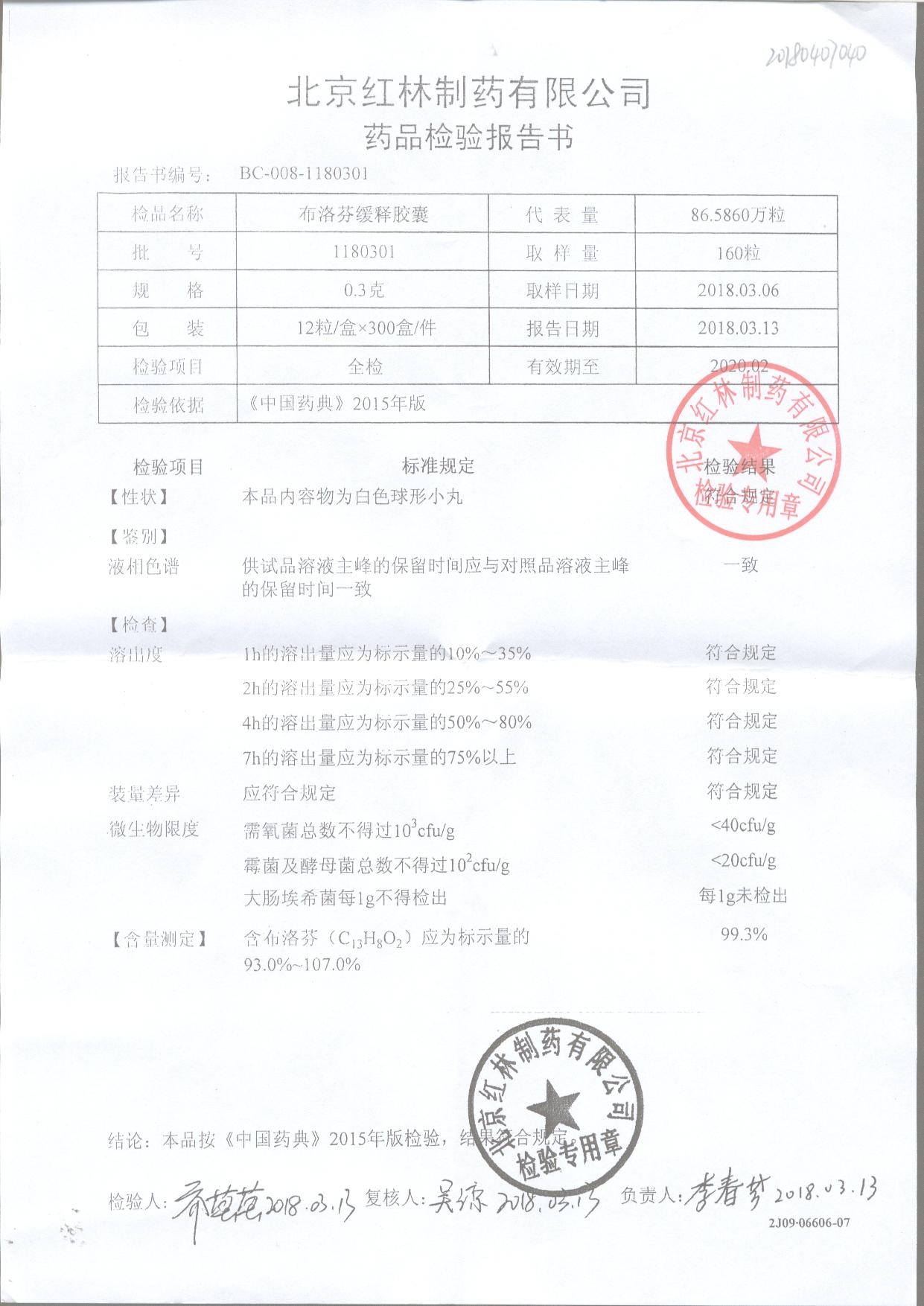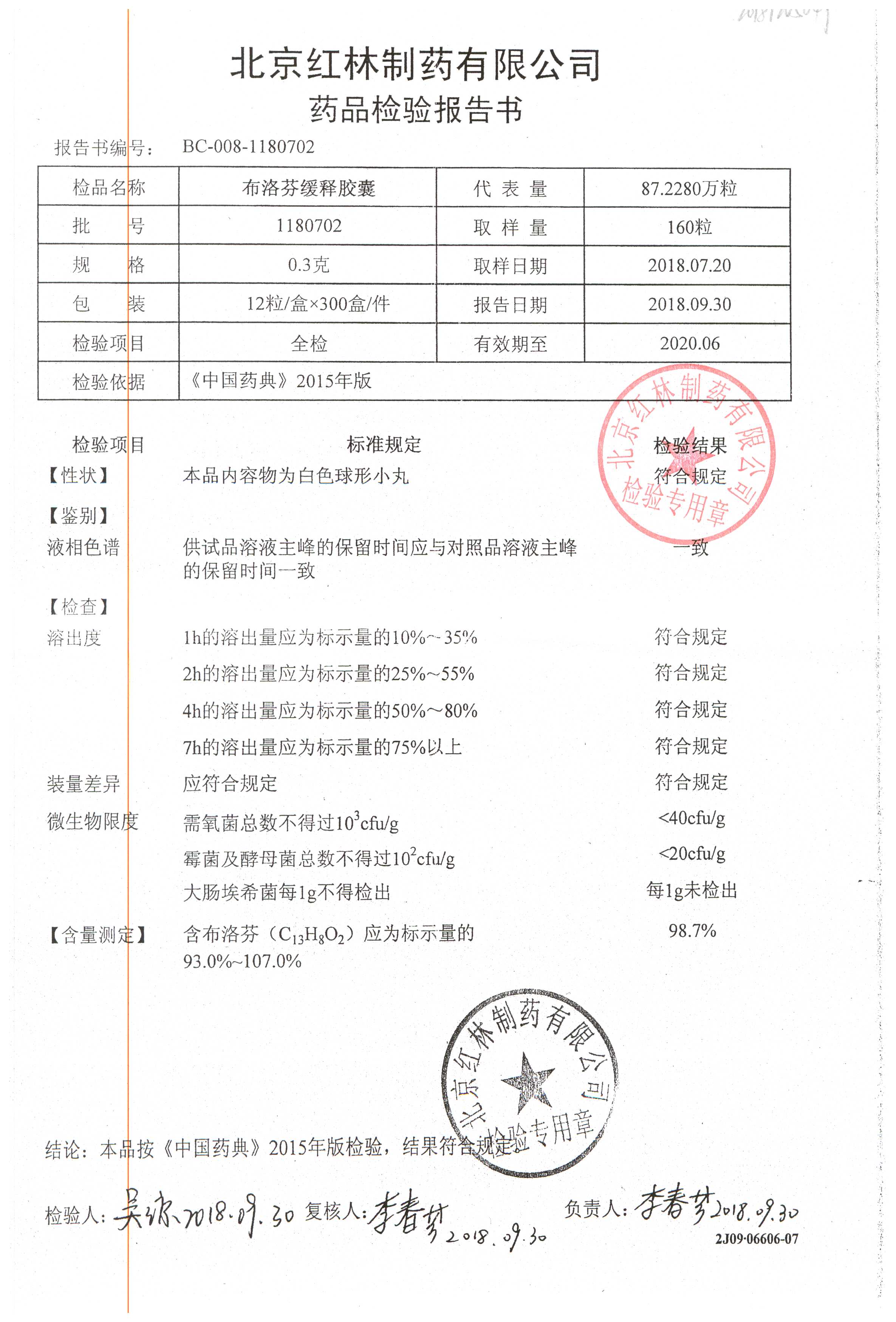 布洛芬緩釋膠囊 | 0.3g*12粒 | 1180403(2/2) | 查看詳情 |