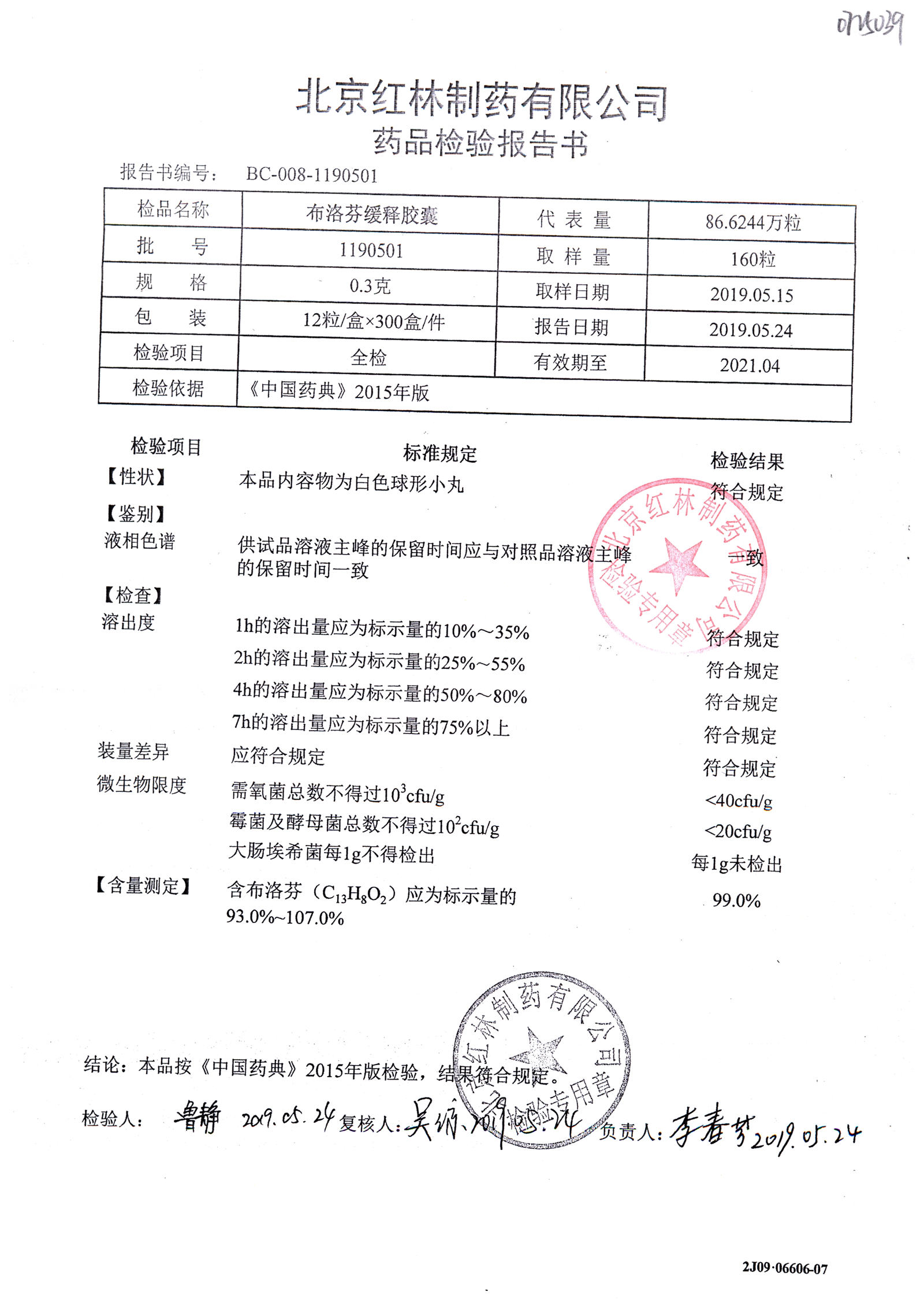 布洛芬緩釋膠囊 | 0.3g*12粒 | 1190501(2/2) | 查看詳情 |