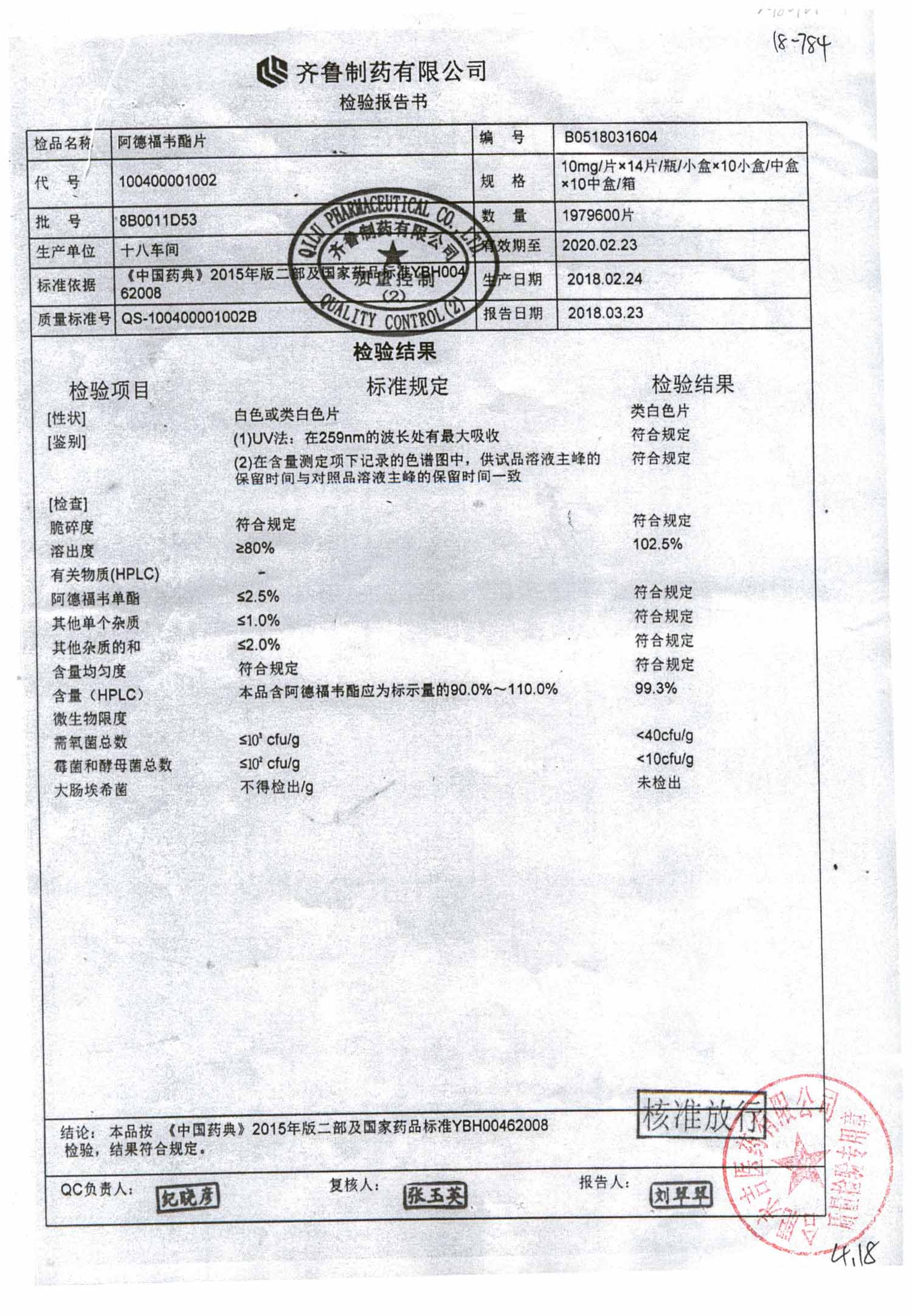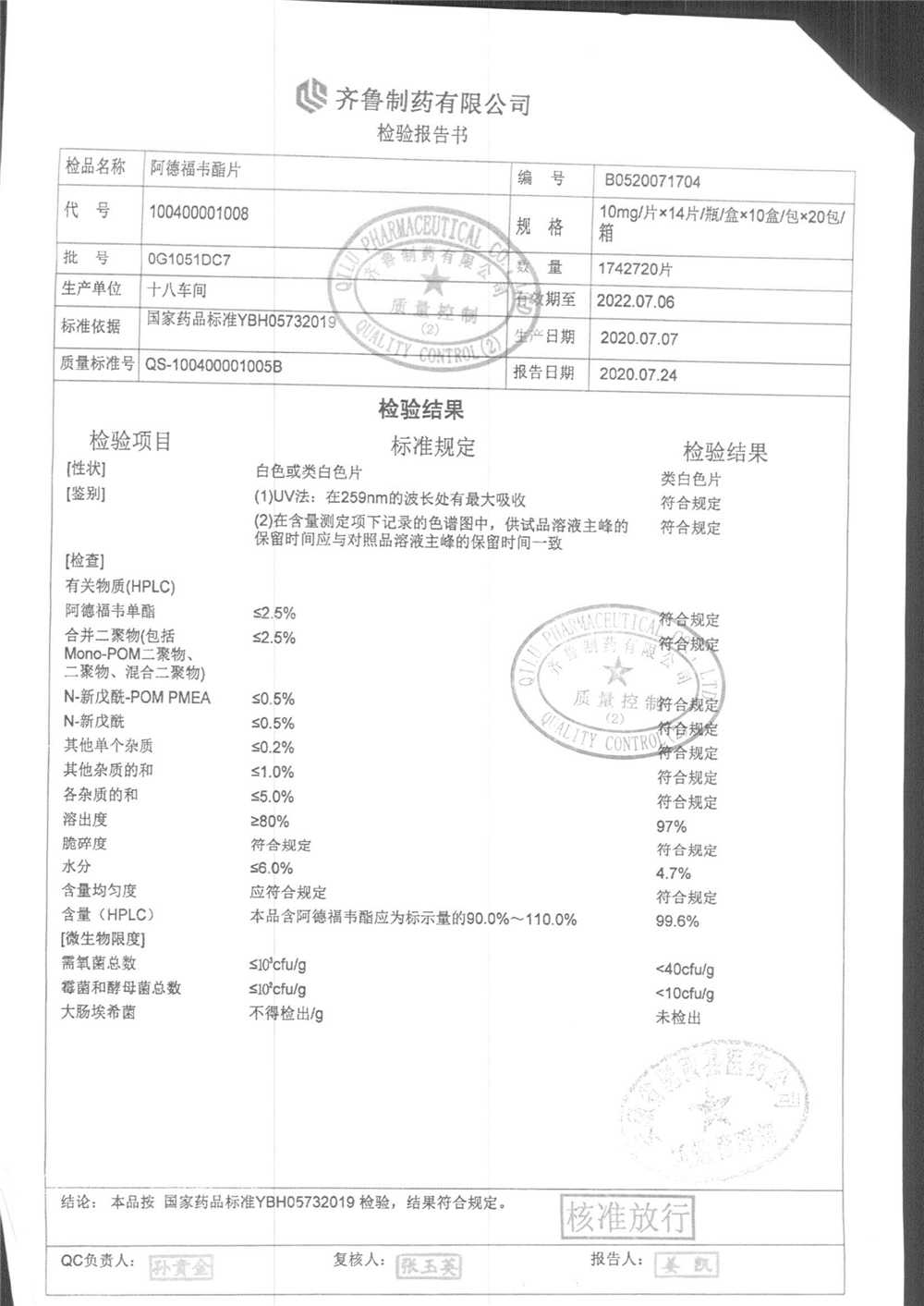阿德福韋酯片 | 10mg*14s | 7L0111D53 | 查看詳情 |
