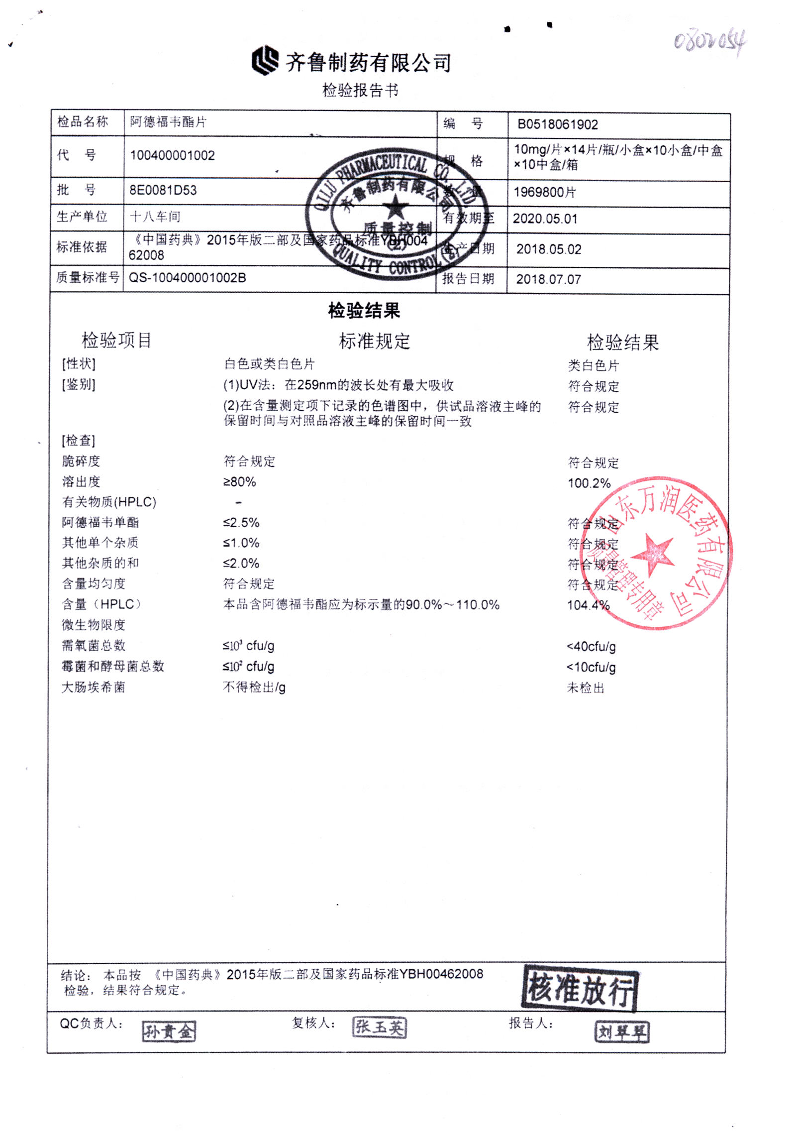 阿德福韋酯片 | 10mg*14s | 7M0141D53 | 查看詳情 |